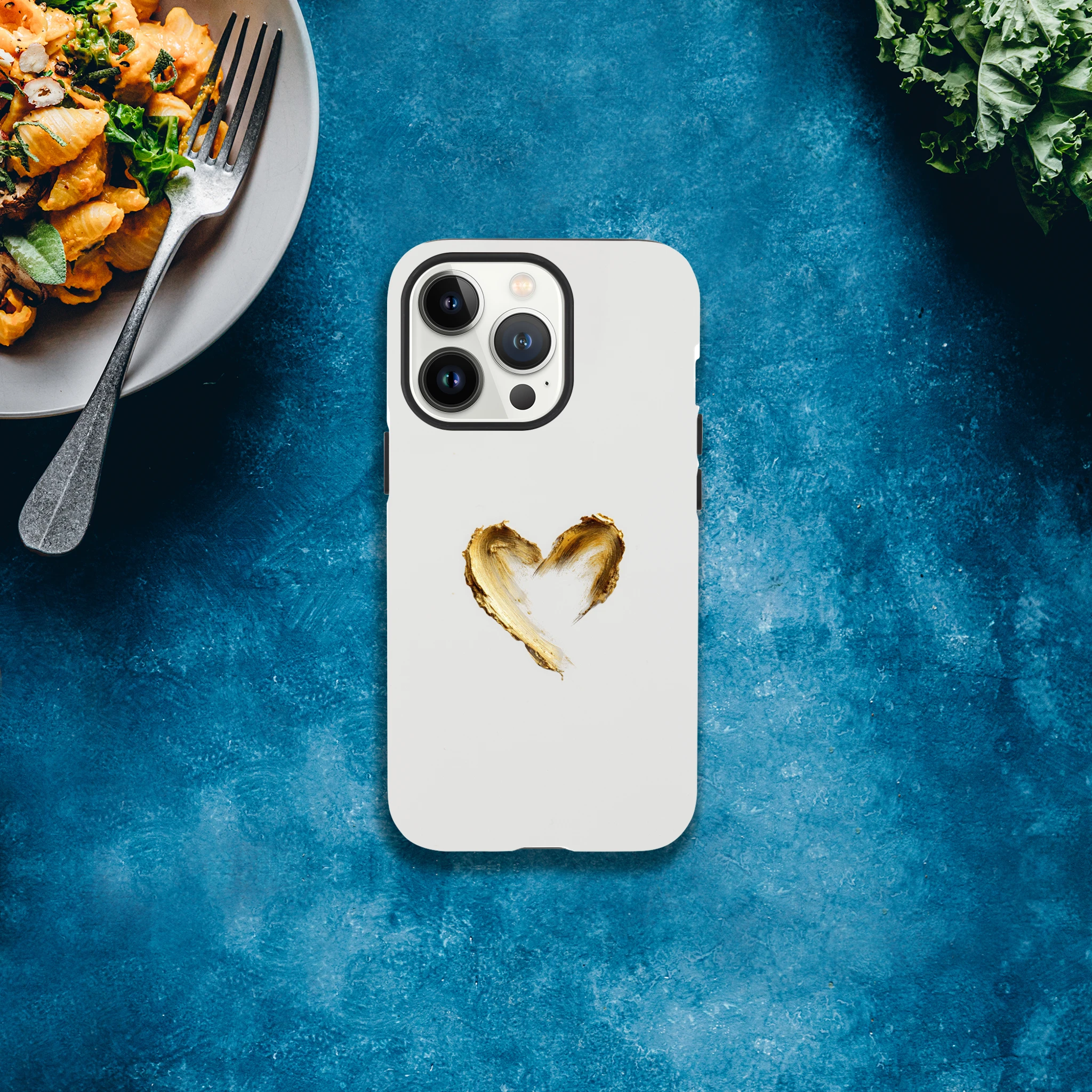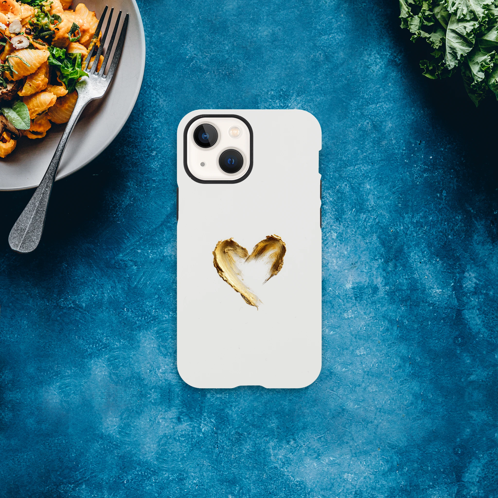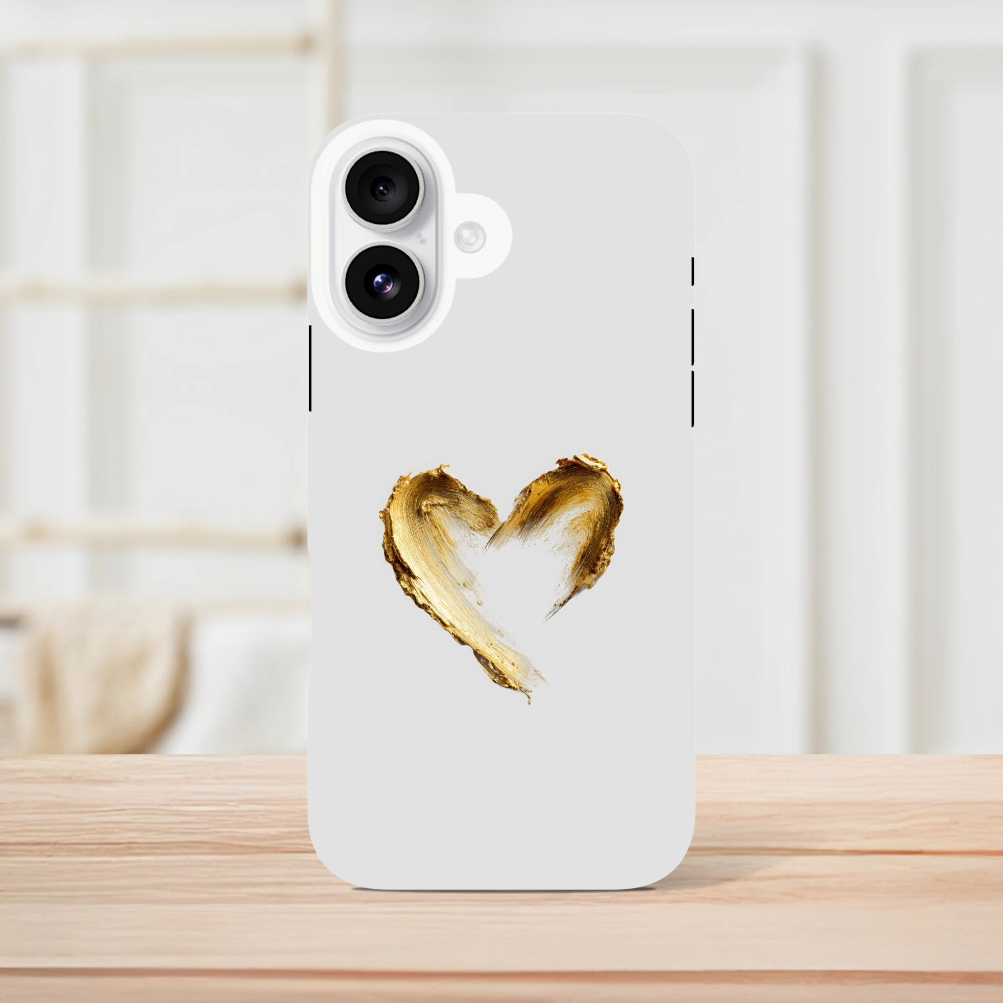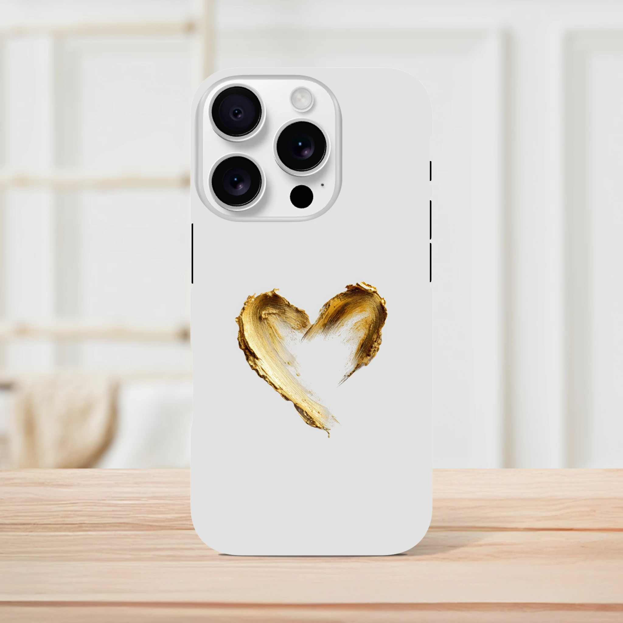 Coque de protection pour iPhone «Cœur dessiné à la peinture d'or»