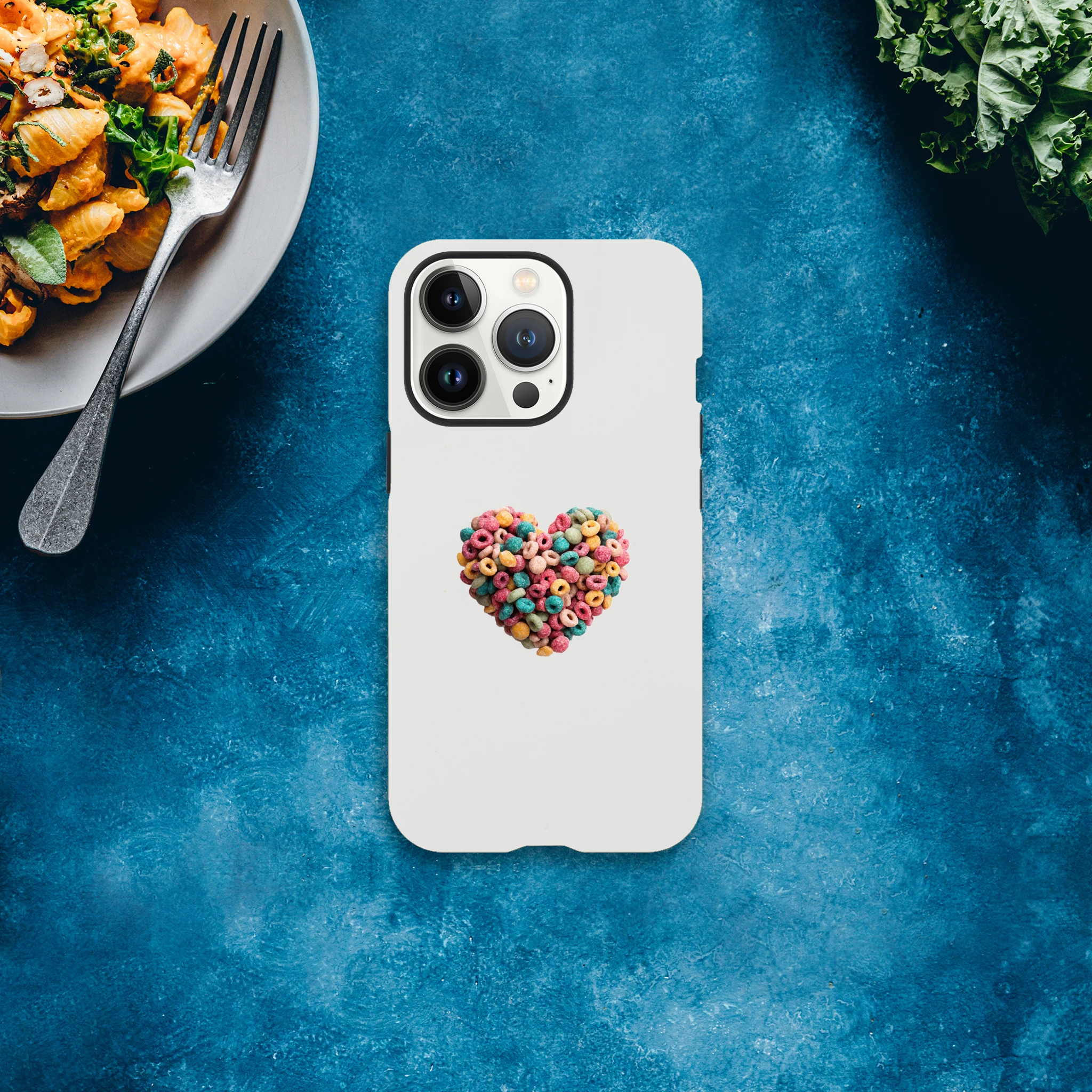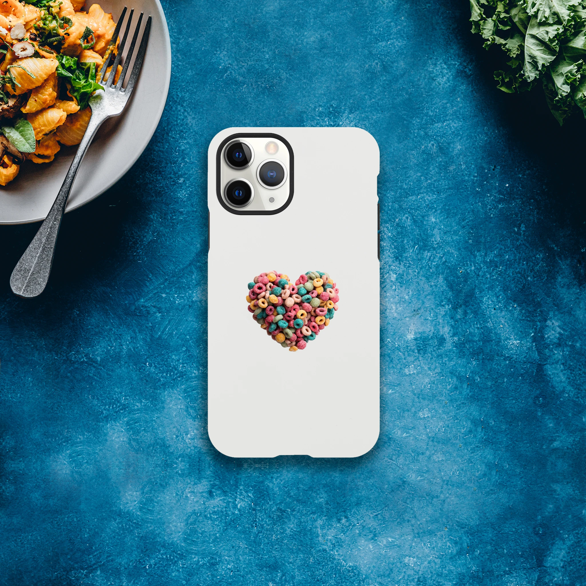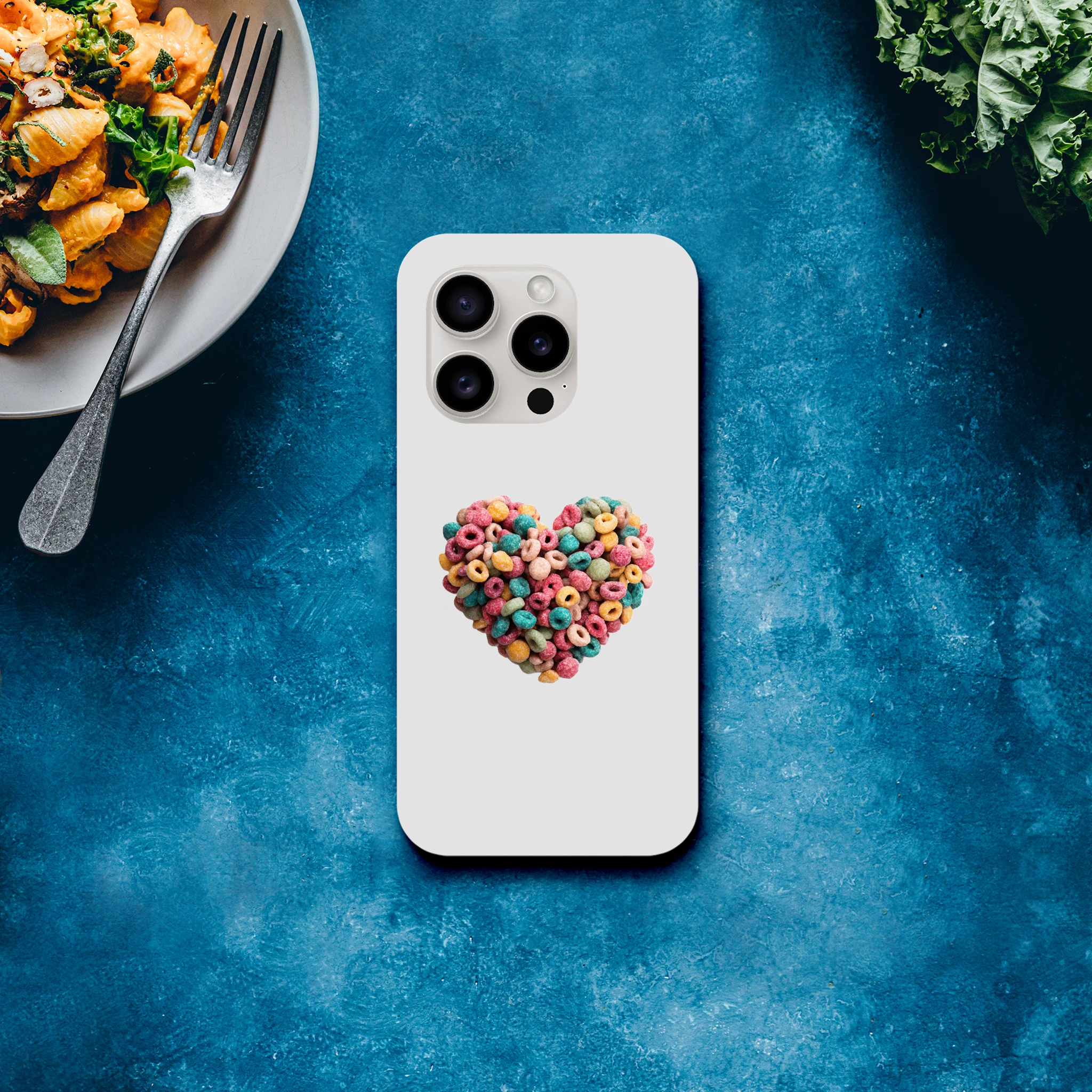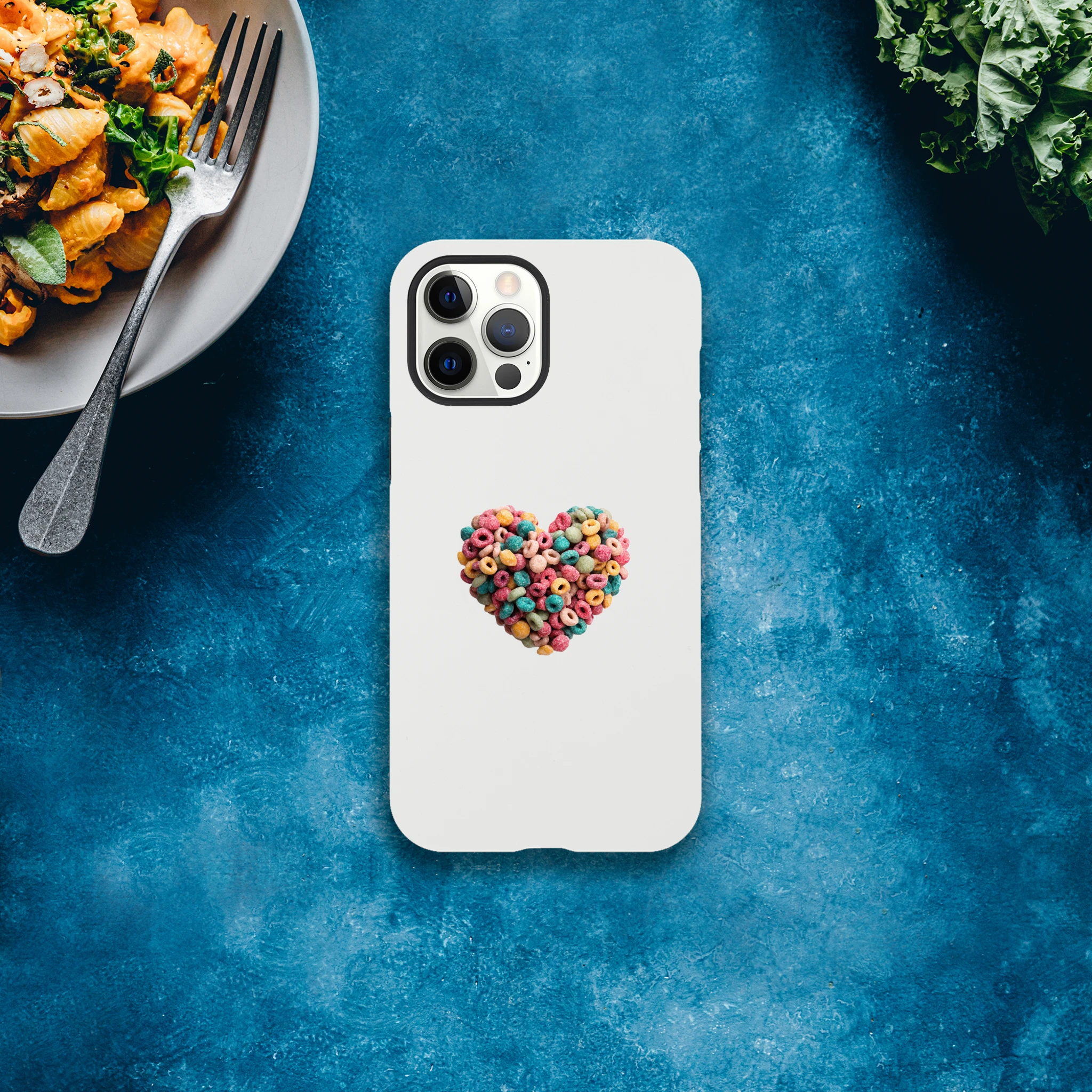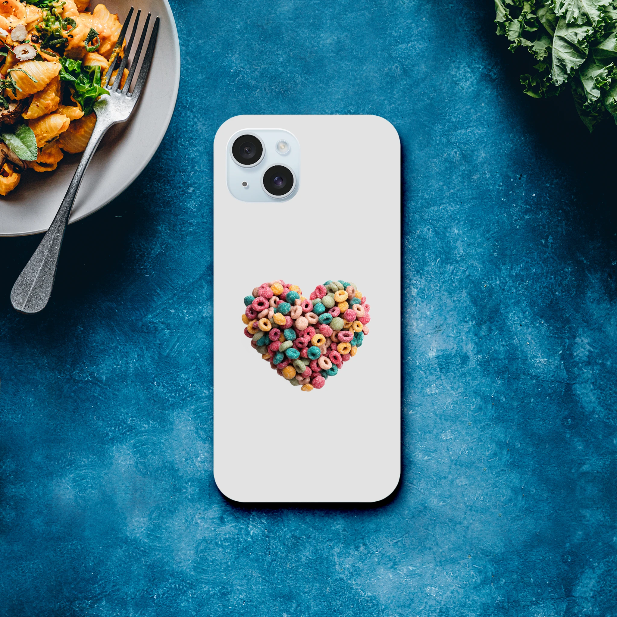 Voici la coque de protection pour iPhone «Cœur en Céréales multicolores», parce que votre téléphone mérite aussi un petit-déj’ ! Transformez chaque appel en pause sucrée et protégez votre précieux téléphone avec amour et croquant. Cette coque aussi appétissante qu’élégante fera saliver vos amis tout en gardant votre écran à l’abri. Attention : bien que séduisante, elle n'est pas comestible ! Parfaite pour les gourmands de style et ceux qui veulent garder une touche d’humour dans leur poche. Faites battre le cœur de vos notifications avec une touche d’éclat multicolore !