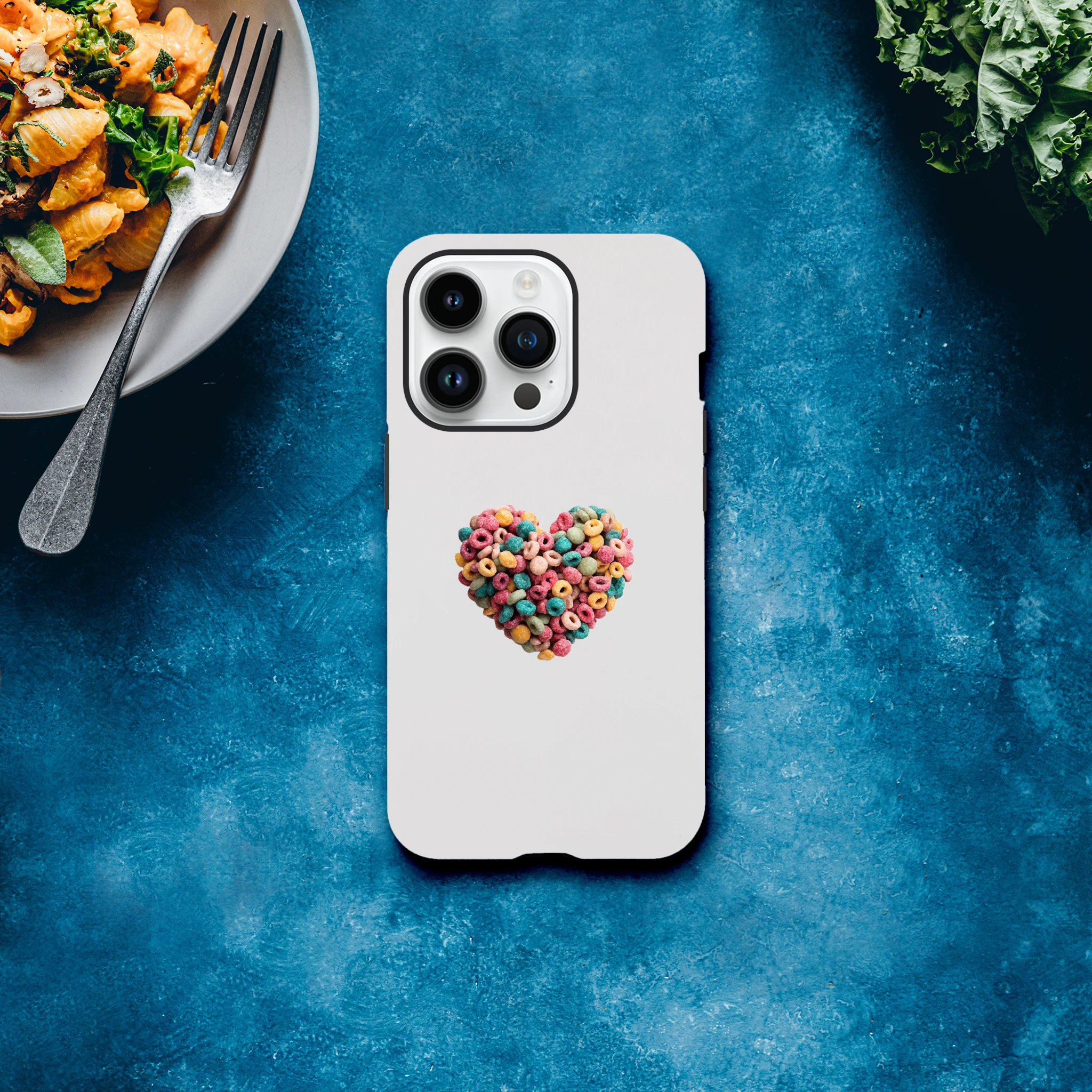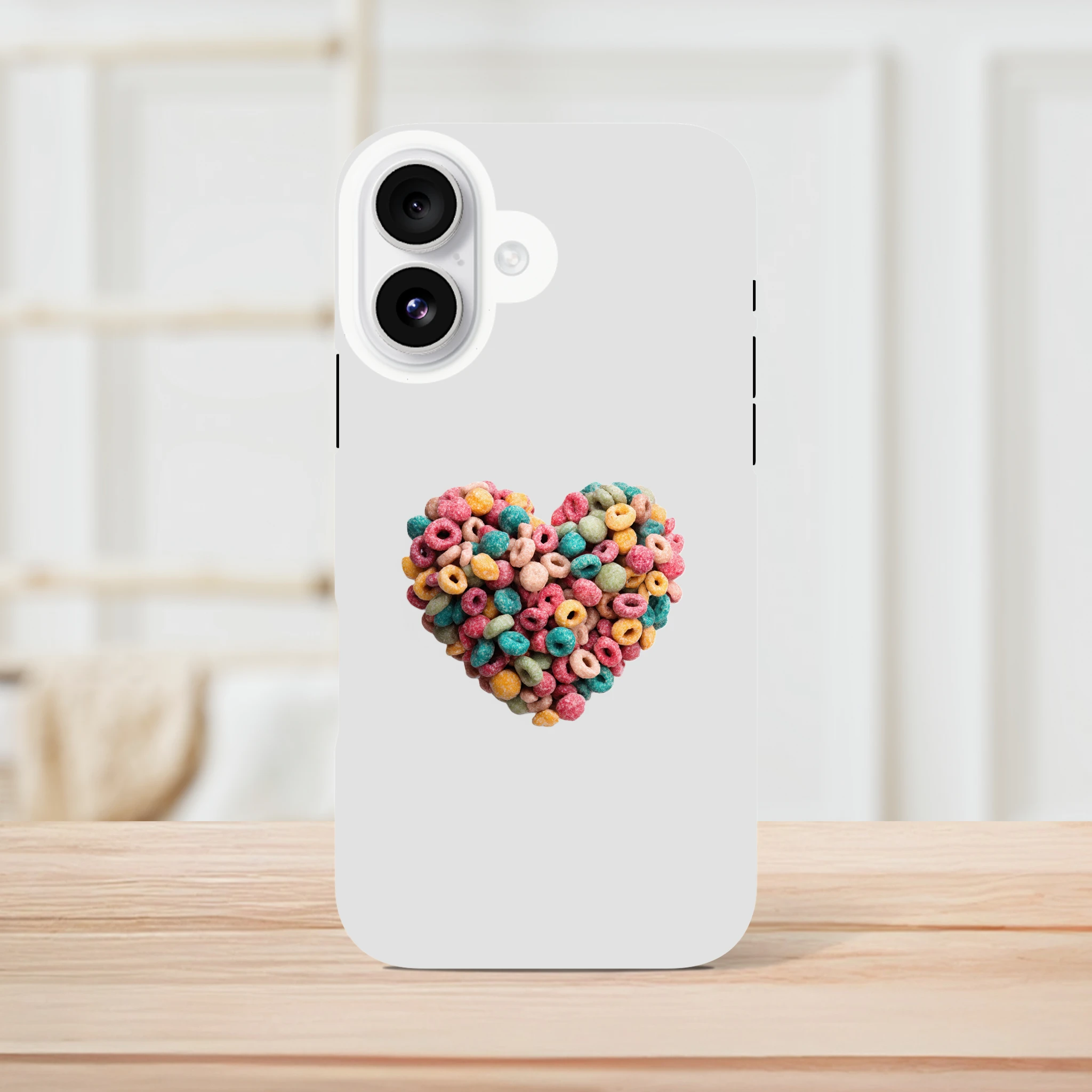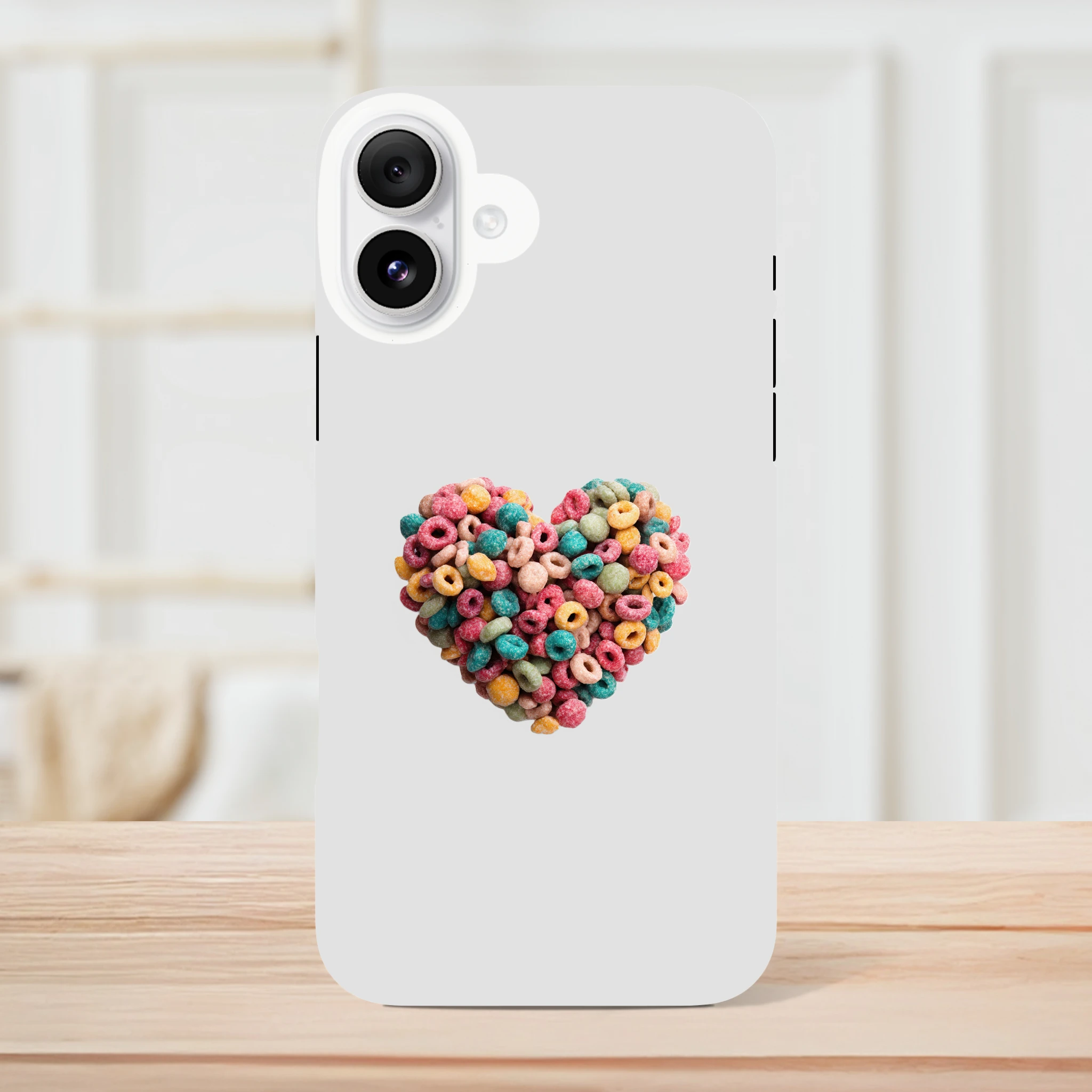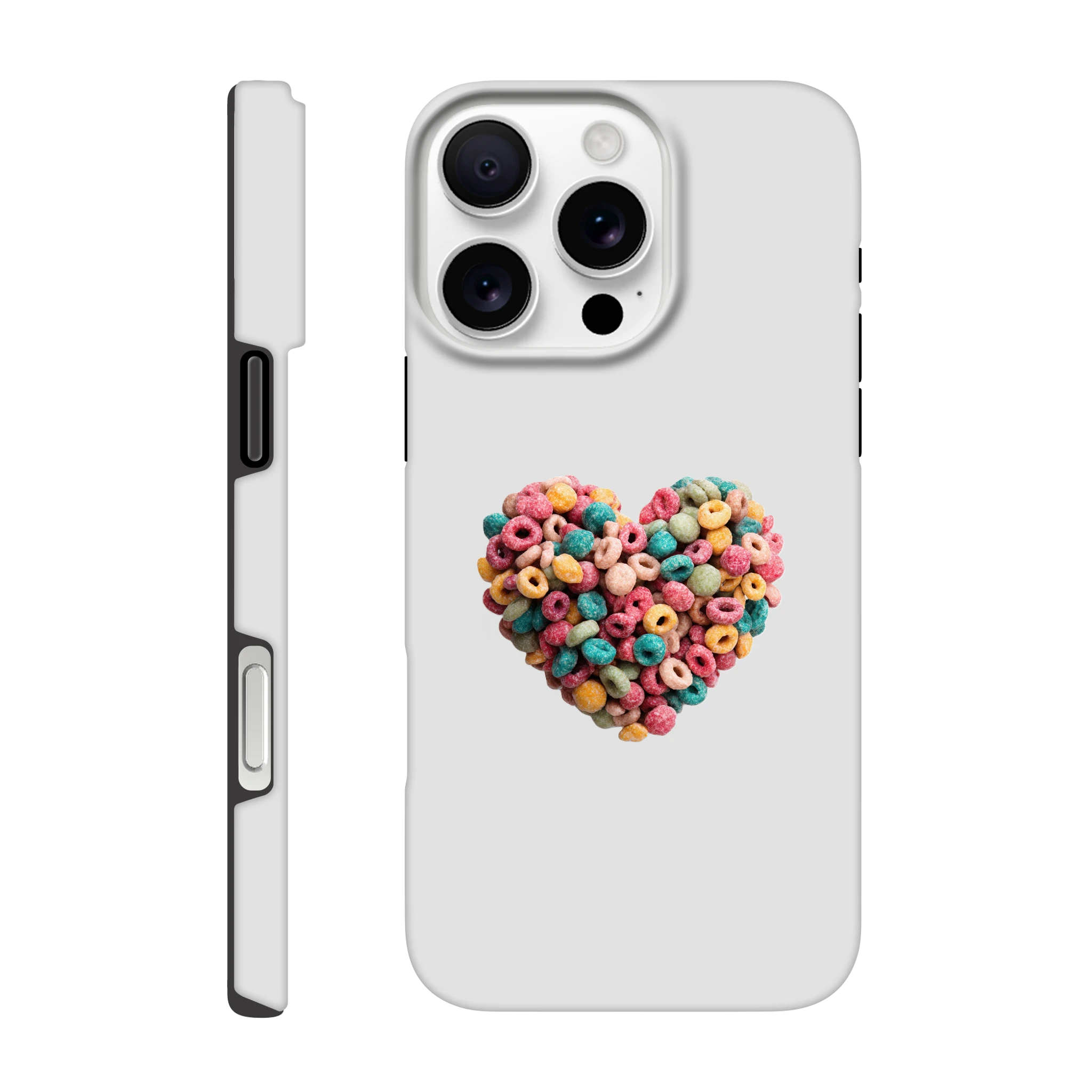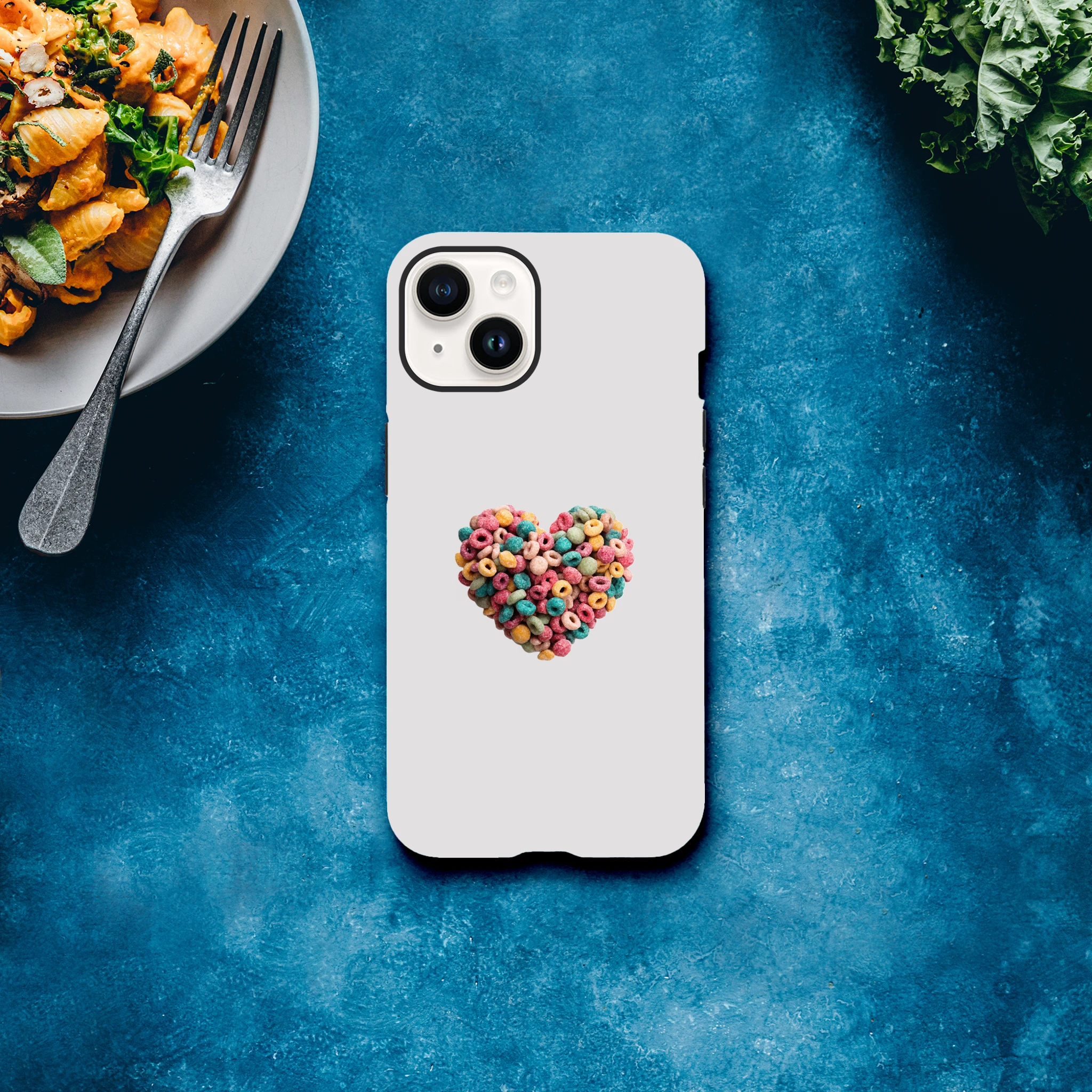 Voici la coque de protection pour iPhone «Cœur en Céréales multicolores», parce que votre téléphone mérite aussi un petit-déj’ ! Transformez chaque appel en pause sucrée et protégez votre précieux téléphone avec amour et croquant. Cette coque aussi appétissante qu’élégante fera saliver vos amis tout en gardant votre écran à l’abri. Attention : bien que séduisante, elle n'est pas comestible ! Parfaite pour les gourmands de style et ceux qui veulent garder une touche d’humour dans leur poche. Faites battre le cœur de vos notifications avec une touche d’éclat multicolore !