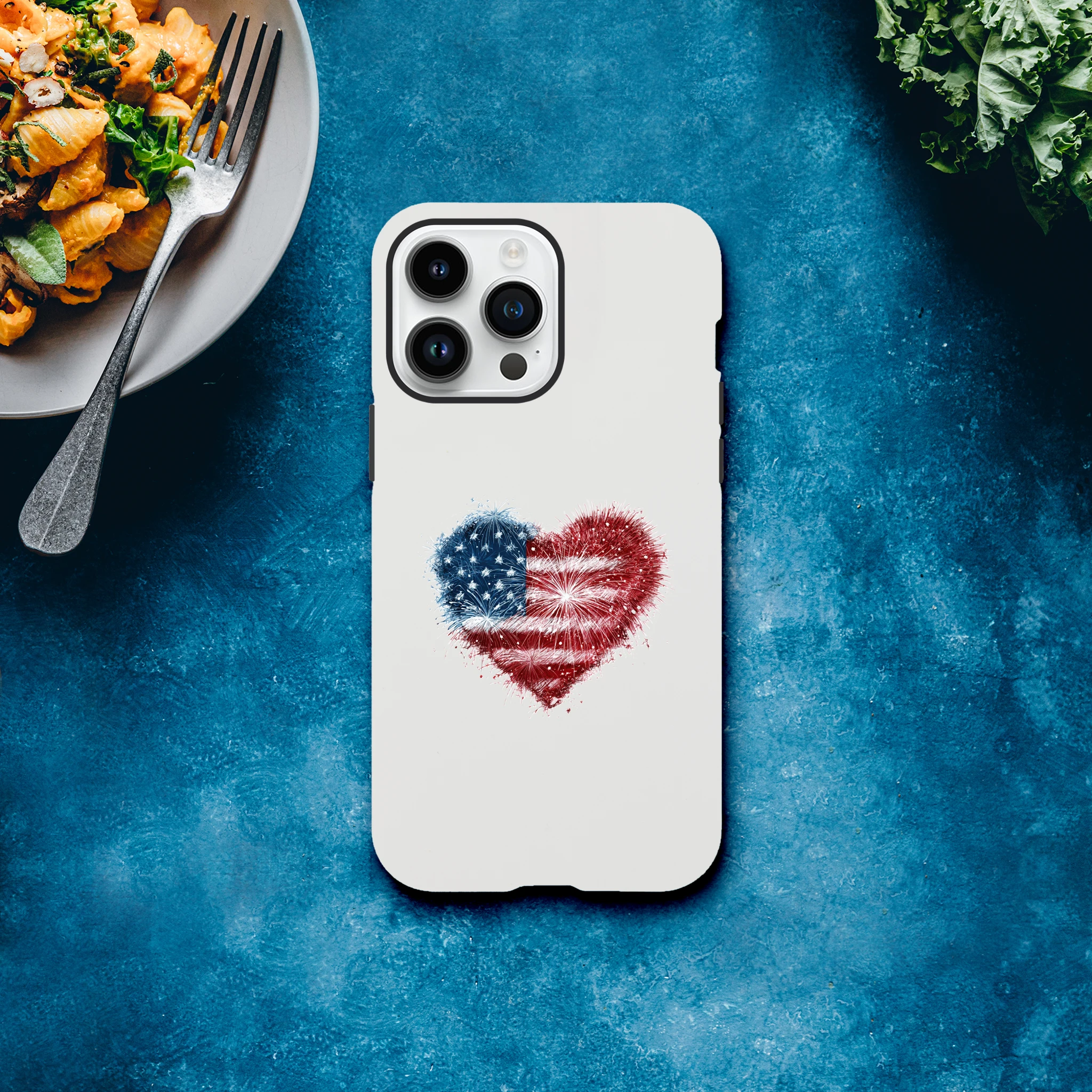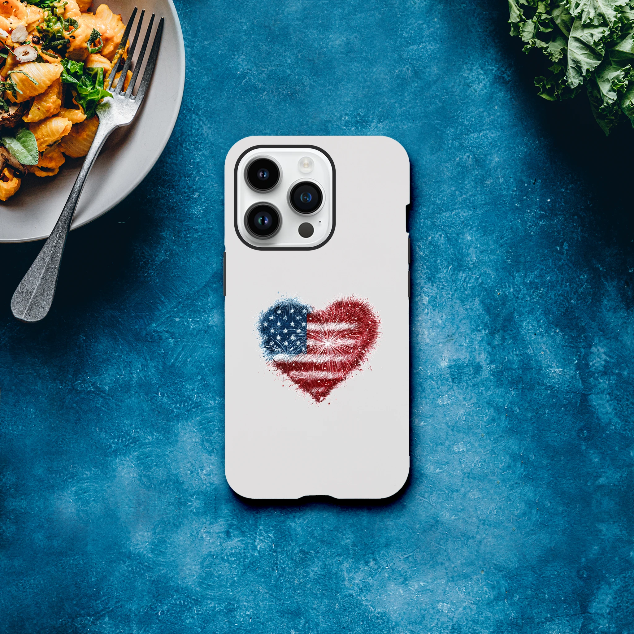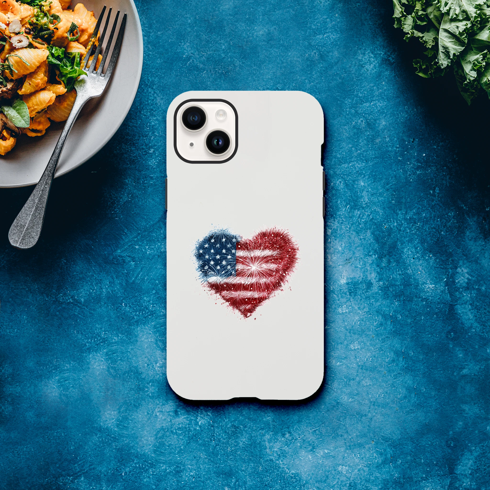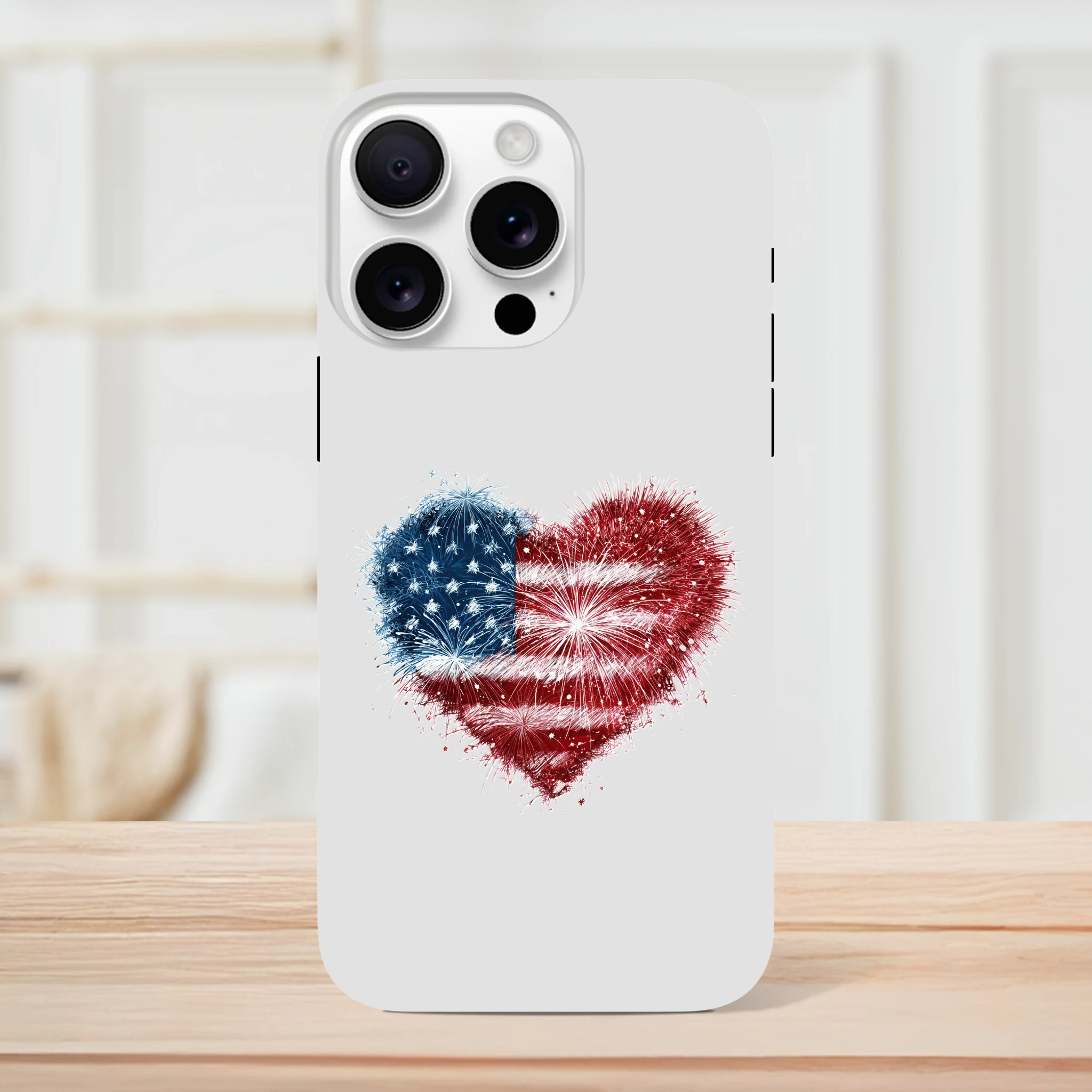 Vous avez toujours rêvé de mettre le feu à vos conversations ? Avec notre coque de protection pour iPhone «Cœur en feu d’artifice et drapeau USA», votre portable sera une vraie star ! Non seulement il sera patriotiquement protégé, mais il ajoutera aussi une dose d’amour explosif à vos journées. Idéale pour allumer des étincelles lors de vos selfies, cette coque est aussi résistante qu’un marshmallow grillé au coin du feu. Embarquez pour une aventure au cœur de l’Amérique avec style et humour… Le rêve américain tient désormais dans la paume de votre main !