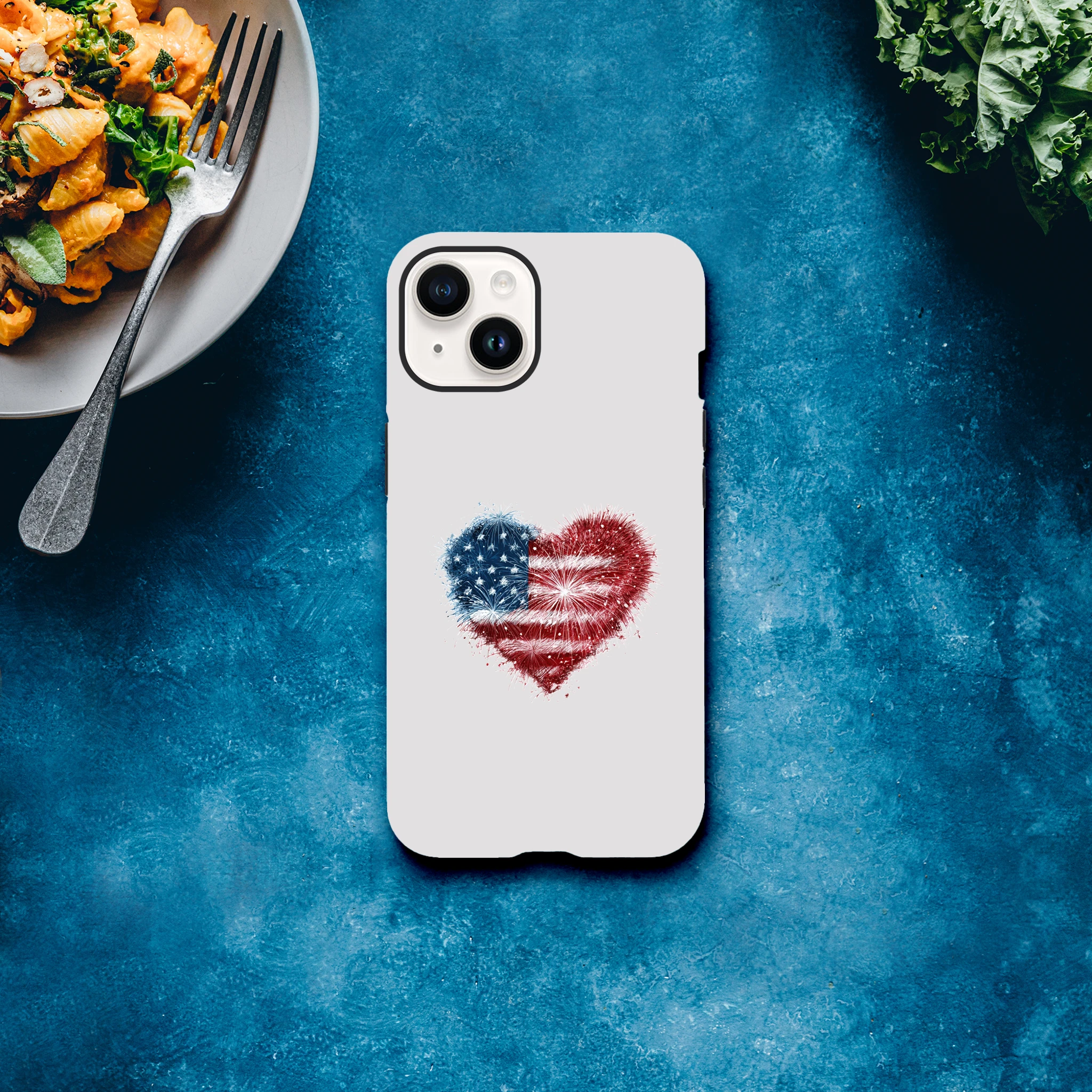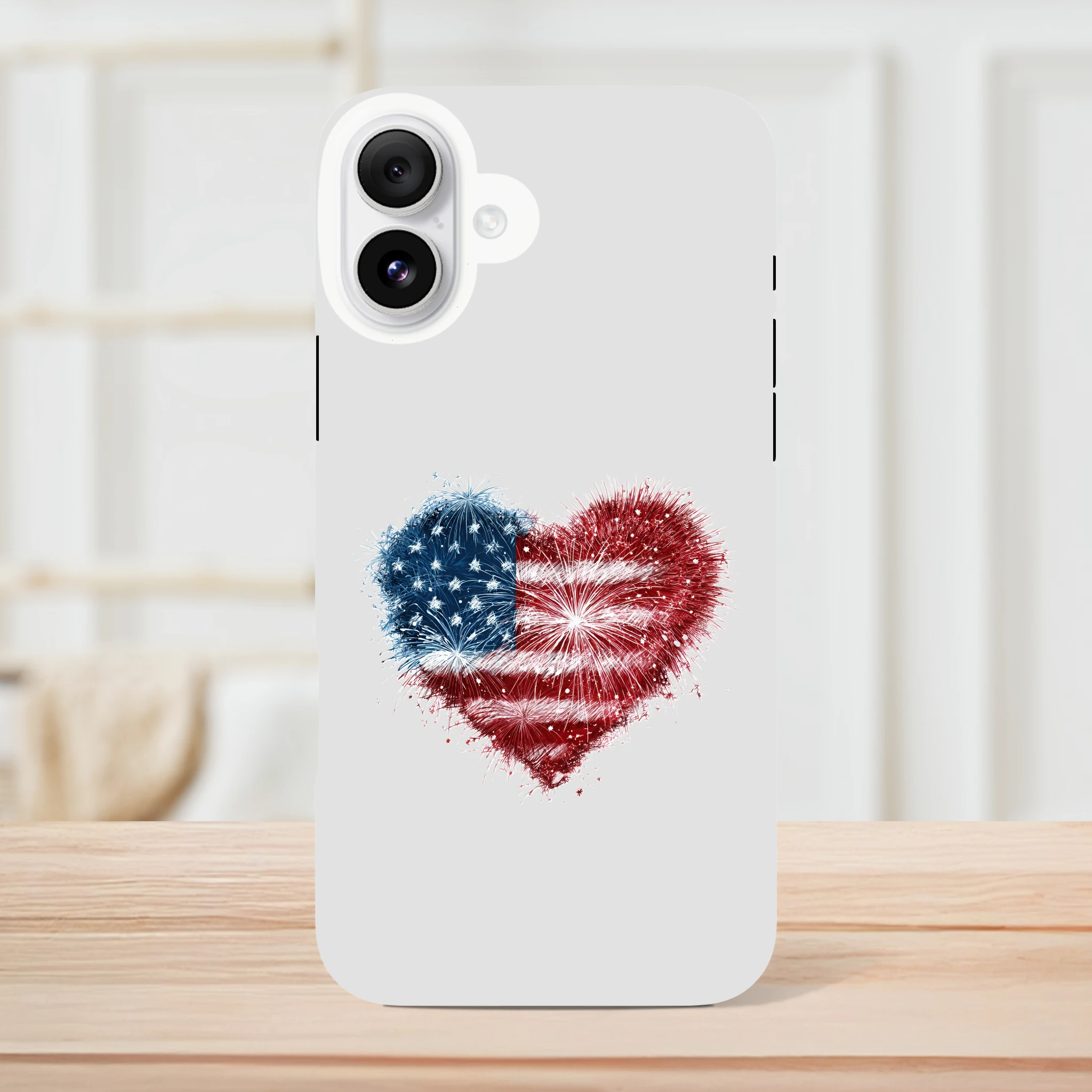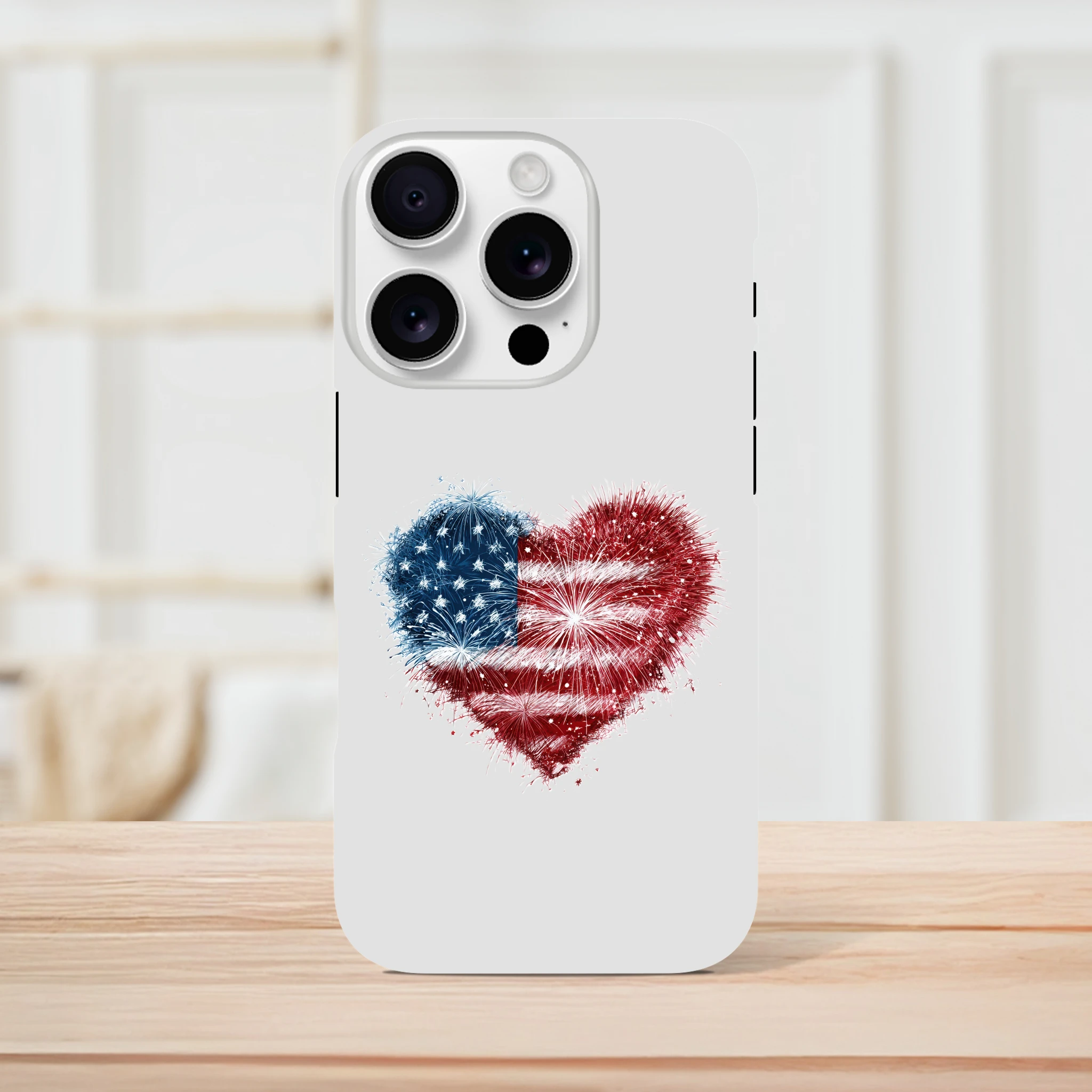 Vous avez toujours rêvé de mettre le feu à vos conversations ? Avec notre coque de protection pour iPhone «Cœur en feu d’artifice et drapeau USA», votre portable sera une vraie star ! Non seulement il sera patriotiquement protégé, mais il ajoutera aussi une dose d’amour explosif à vos journées. Idéale pour allumer des étincelles lors de vos selfies, cette coque est aussi résistante qu’un marshmallow grillé au coin du feu. Embarquez pour une aventure au cœur de l’Amérique avec style et humour… Le rêve américain tient désormais dans la paume de votre main !