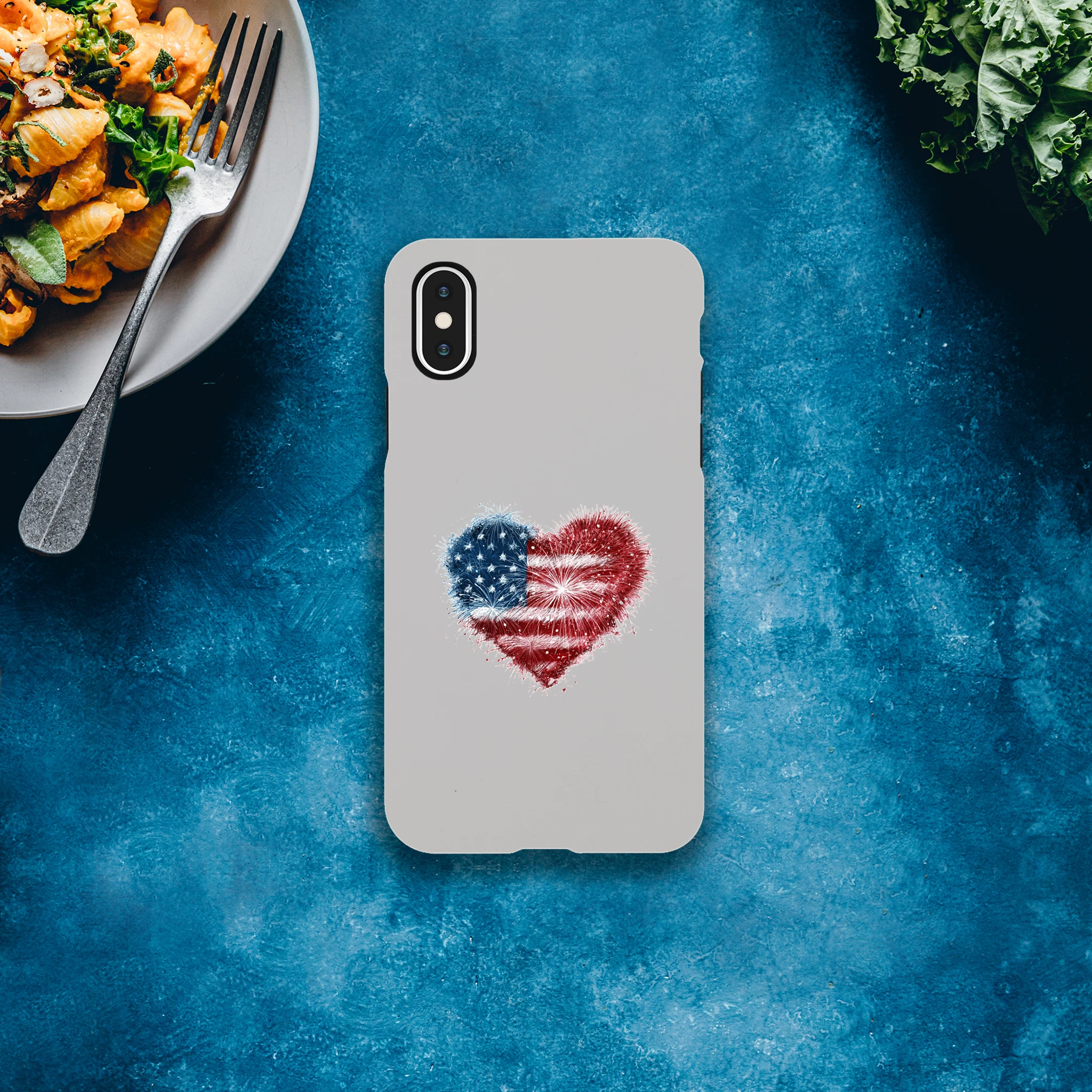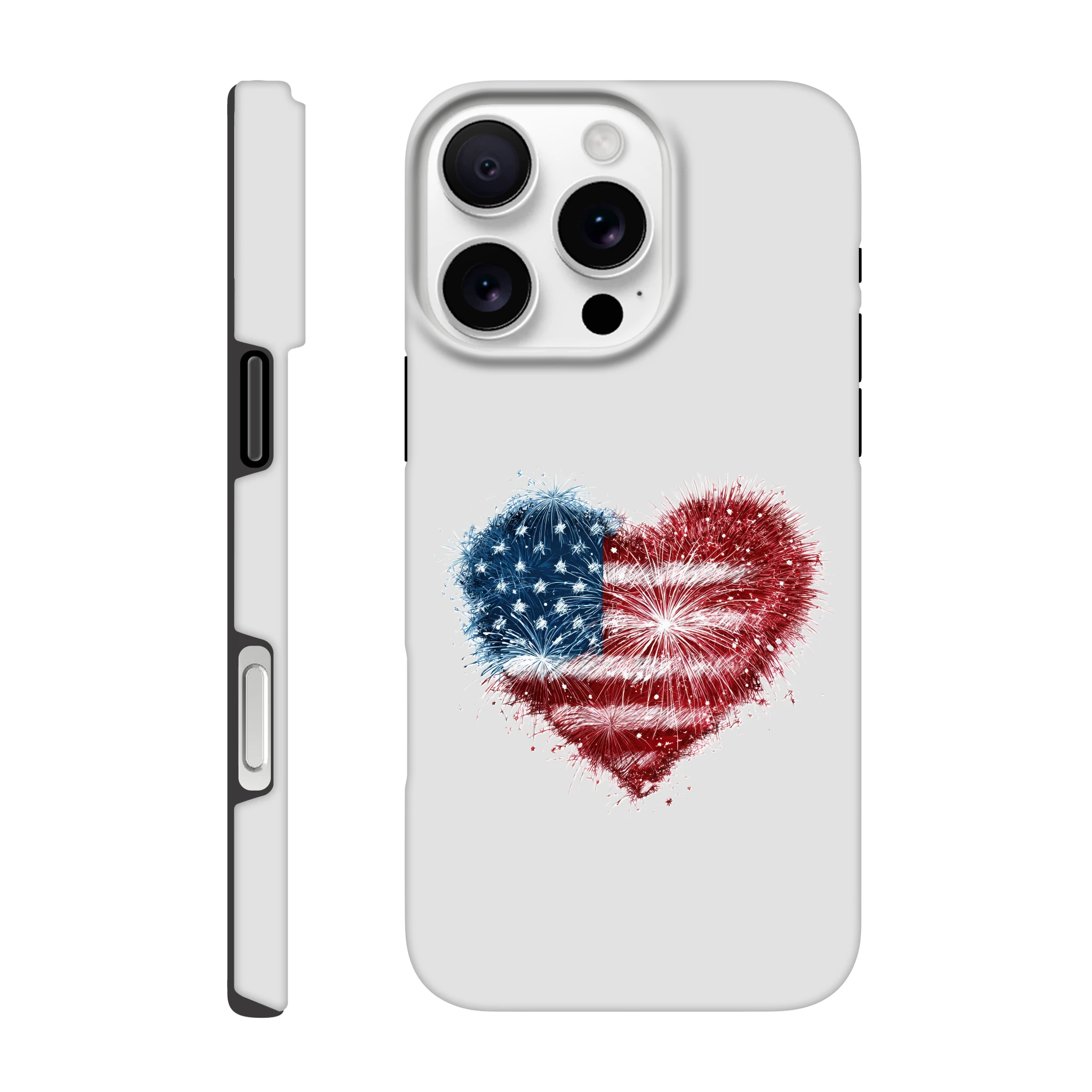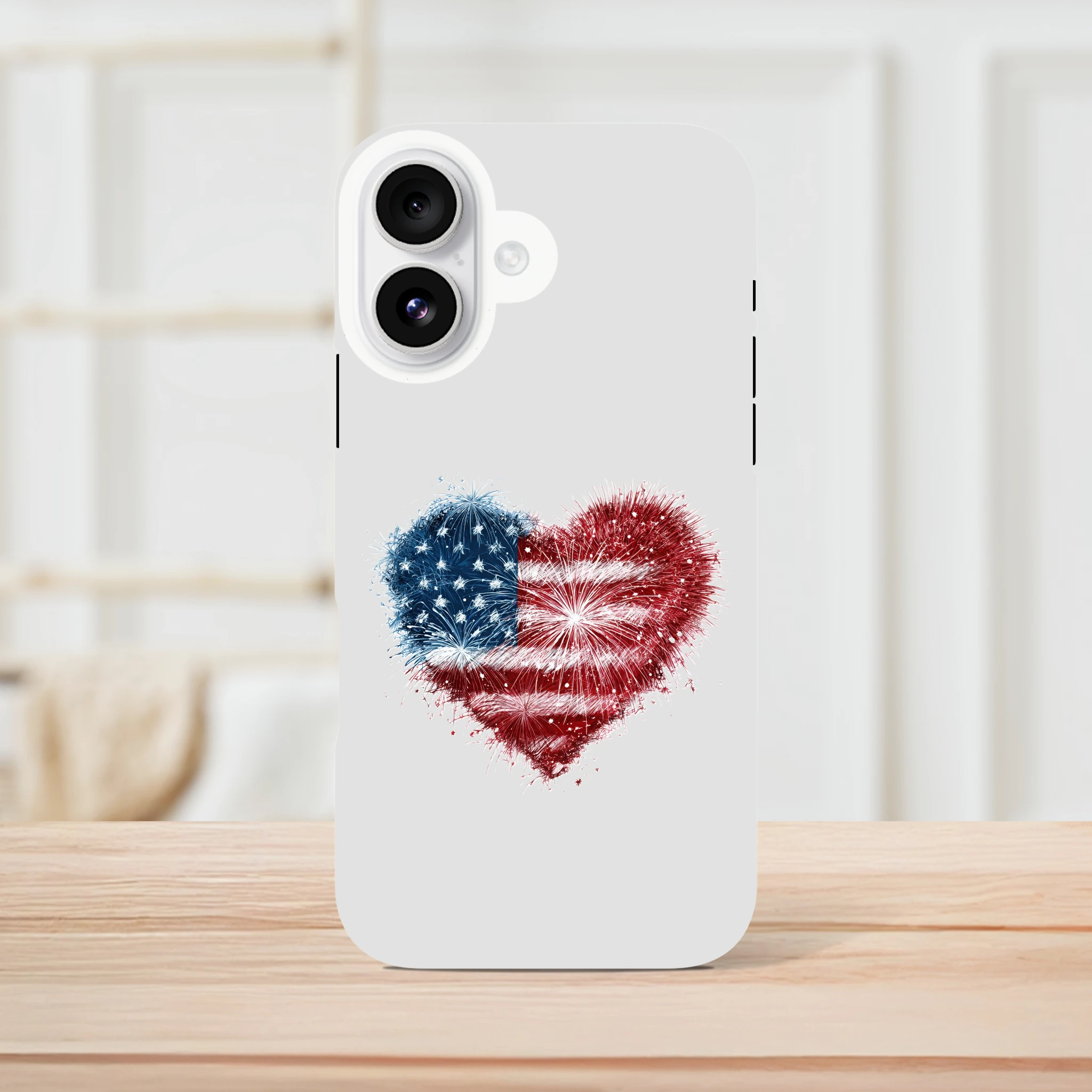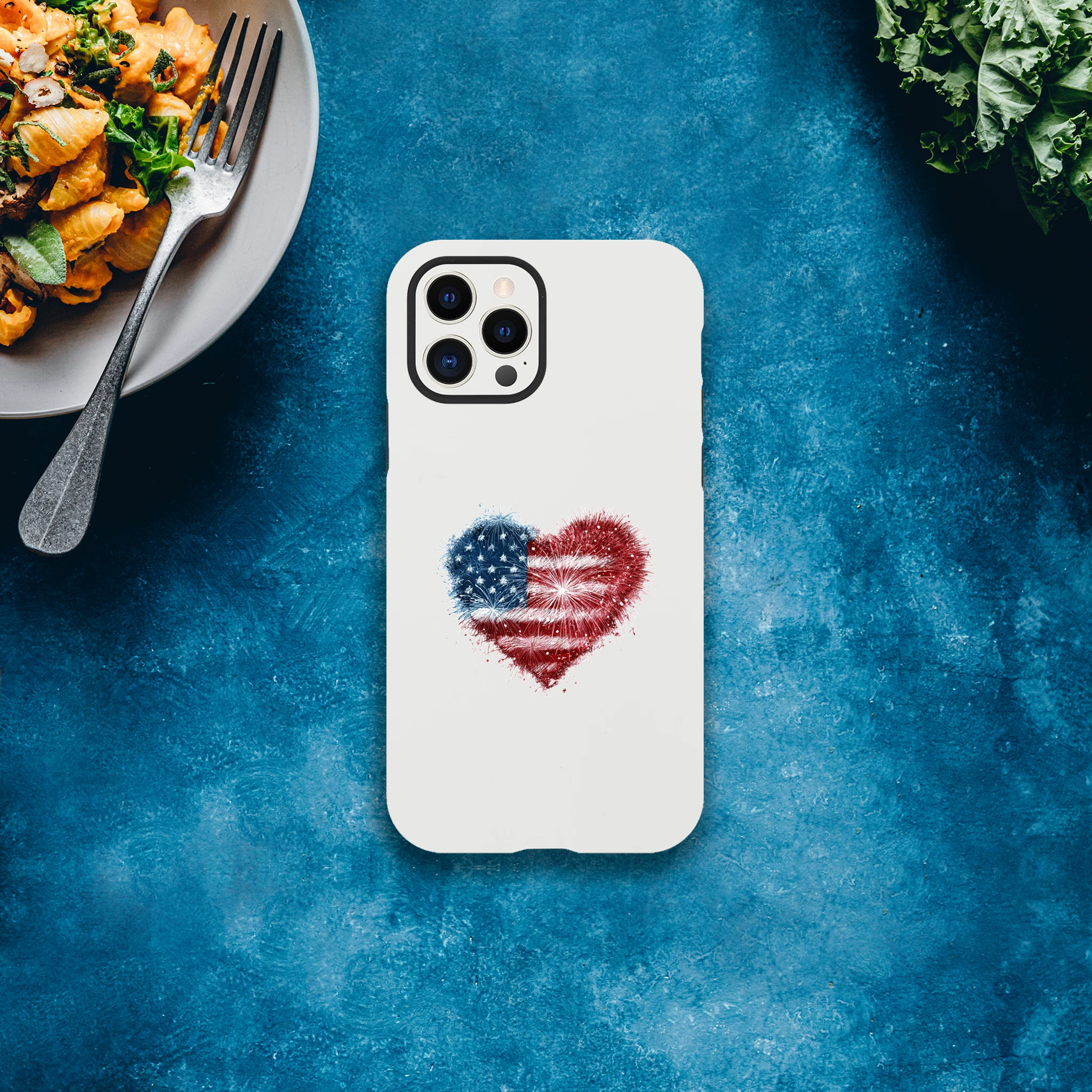 Vous avez toujours rêvé de mettre le feu à vos conversations ? Avec notre coque de protection pour iPhone «Cœur en feu d’artifice et drapeau USA», votre portable sera une vraie star ! Non seulement il sera patriotiquement protégé, mais il ajoutera aussi une dose d’amour explosif à vos journées. Idéale pour allumer des étincelles lors de vos selfies, cette coque est aussi résistante qu’un marshmallow grillé au coin du feu. Embarquez pour une aventure au cœur de l’Amérique avec style et humour… Le rêve américain tient désormais dans la paume de votre main !