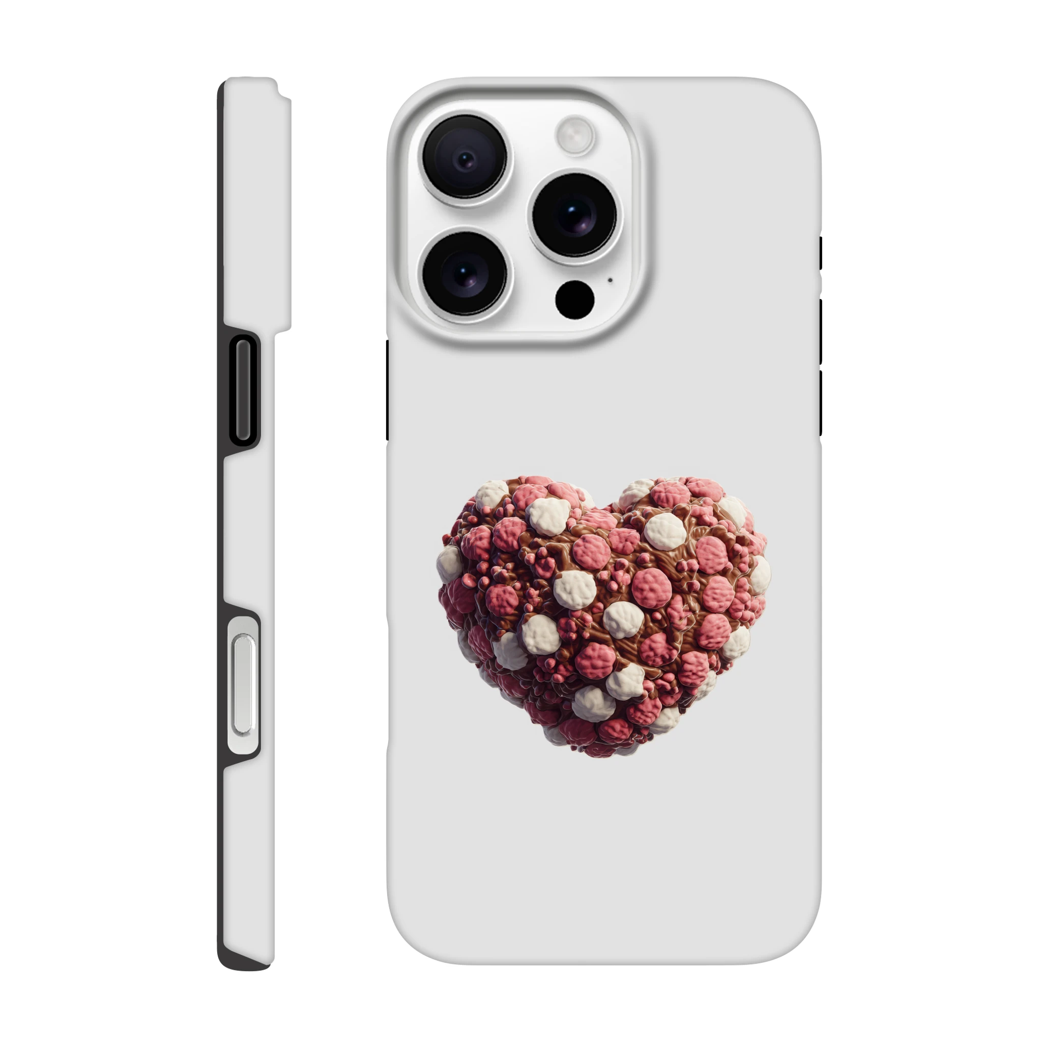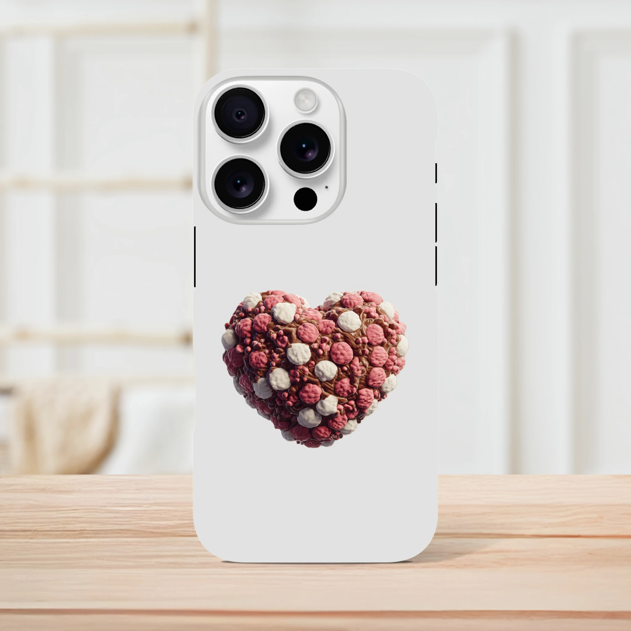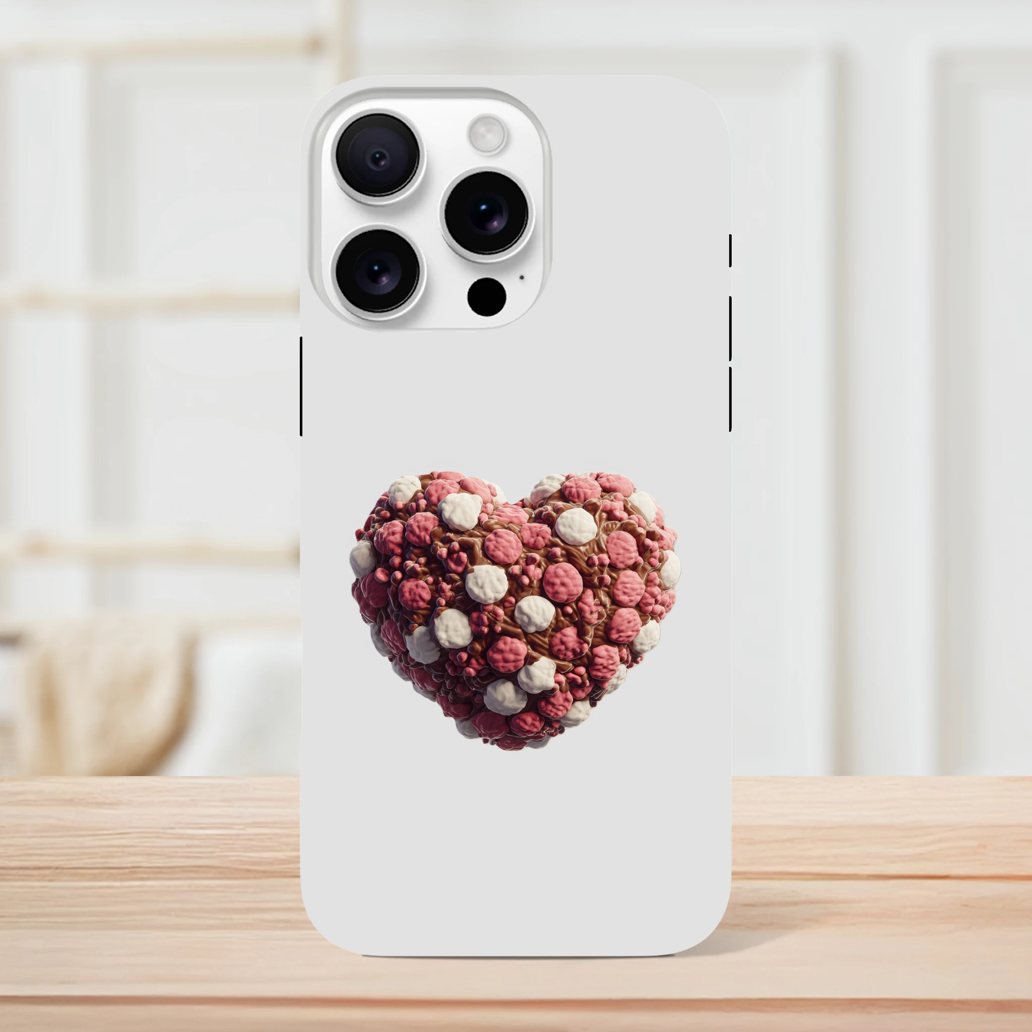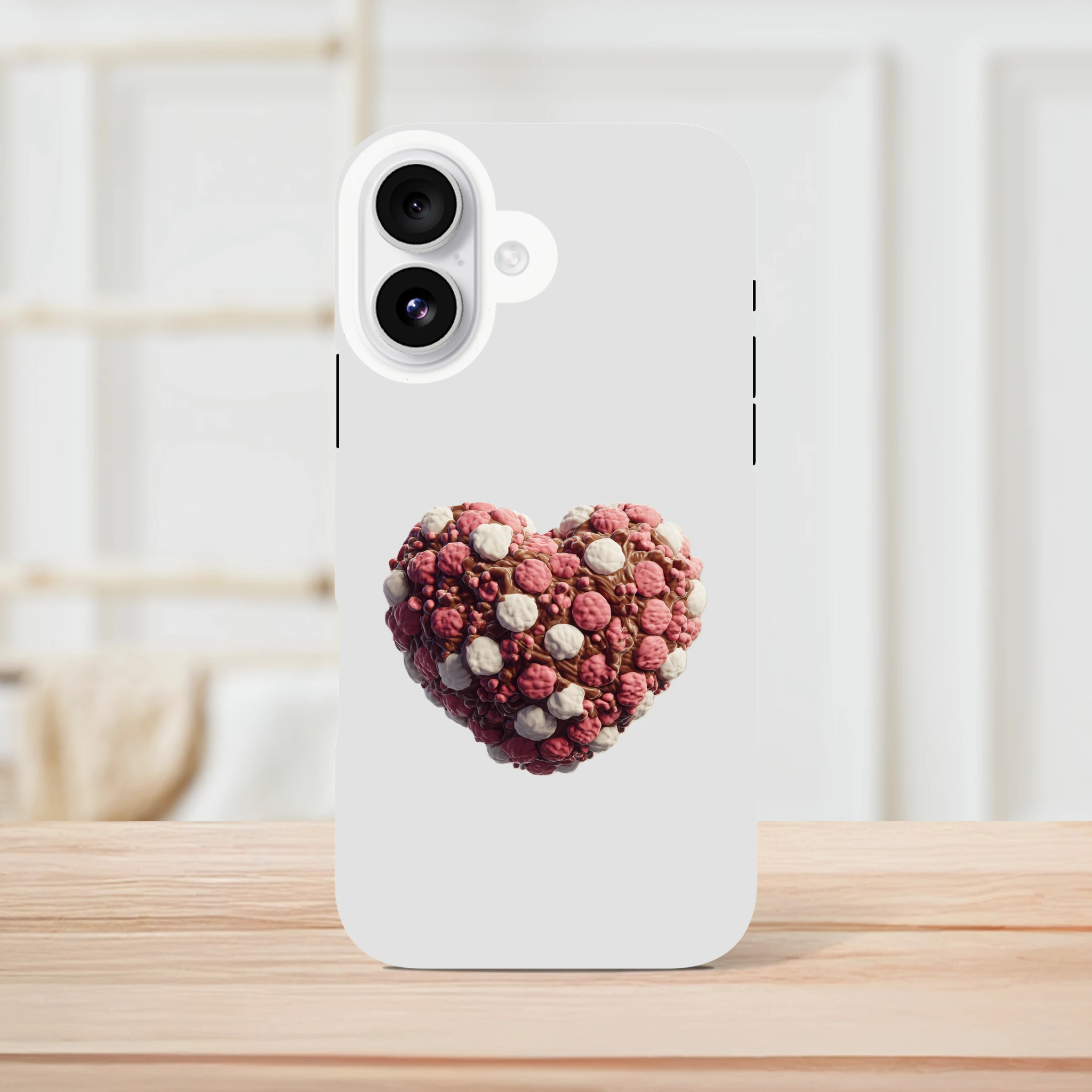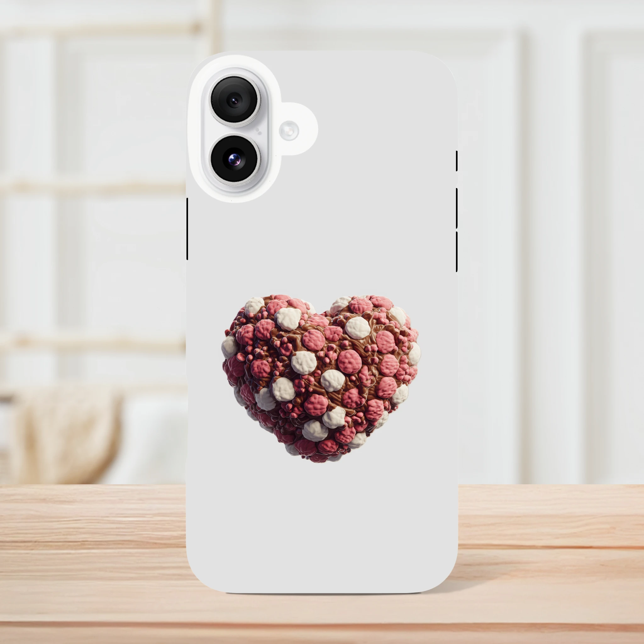 Offrez à votre iPhone une protection gourmande avec notre coque «Cœur en guimauves et chocolat» ! Mélangez l’utile à l’agréable avec ce design appétissant qui fera fondre bien des cœurs… sans calories garanties ! Vos appels auront une touche sucrée et votre téléphone sera à l’abri des chocs, tout comme votre cœur d’attaques de mignonnerie ! N’attendez plus pour craquer pour cet accessoire moelleux, parfait pour les accros des bonnes choses et des belles coques. Protégez votre précieux avec une dose de douceur et une pincée d’humour, car chez Mimizou, c’est le cœur qui prime… littéralement !