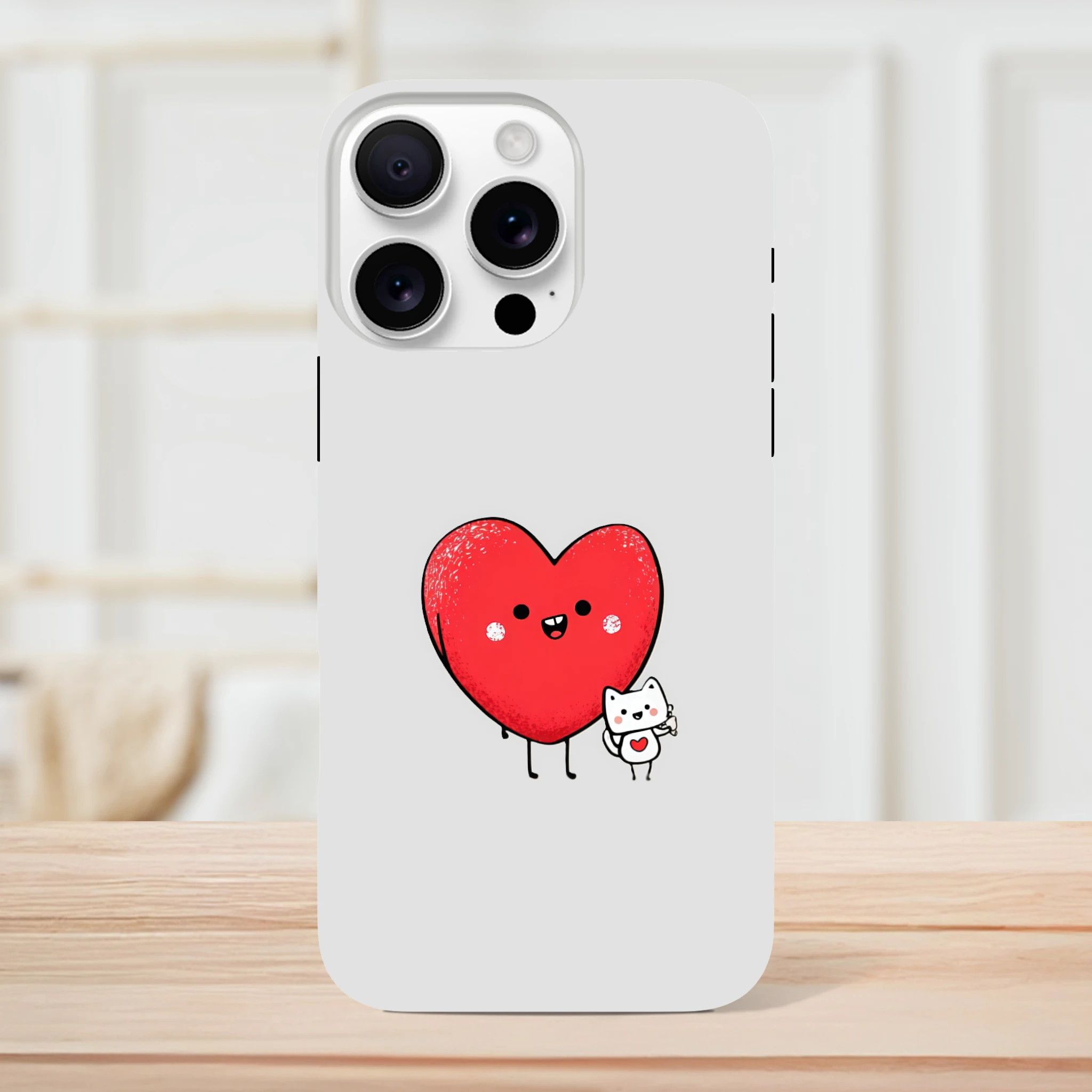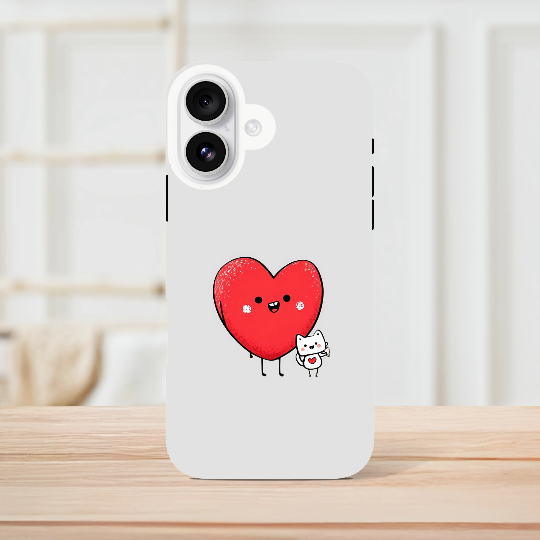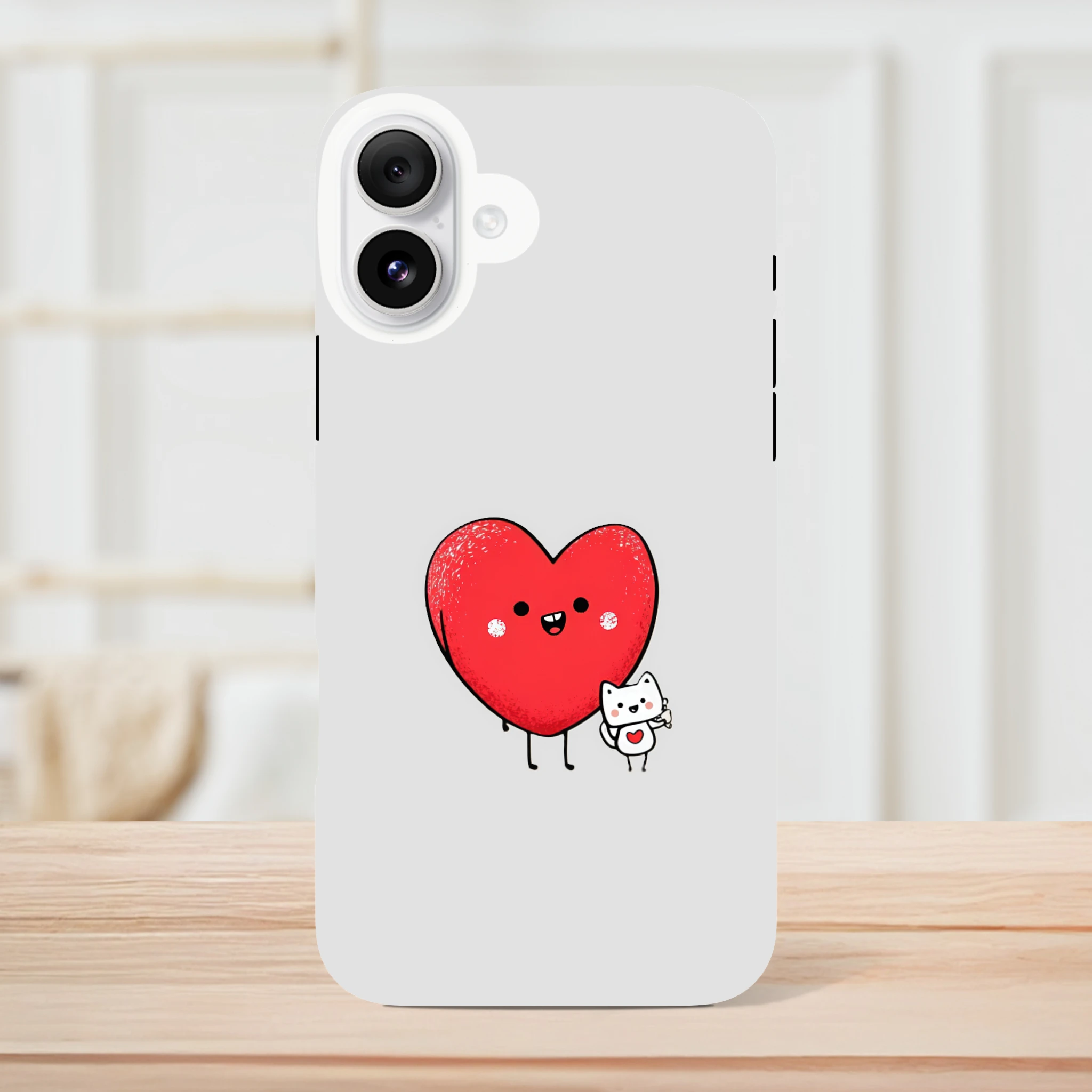 La coque de protection pour iPhone «Cœur et petit chat» est le meilleur allié de votre téléphone. Avec son cœur adorable et son petit félin malicieux, elle vous promet des journées chargées en sourires. Elle murmure à votre portable : « Ne t’inquiète pas, j’ai un chat-chœur et j'assure tes arrières ! » Parfaite pour protéger des coups de griffe de la vie quotidienne, elle rendra fou de jalousie votre vieux film de protection. Adoptez-la et laissez l'amour ronronner dans vos poches !