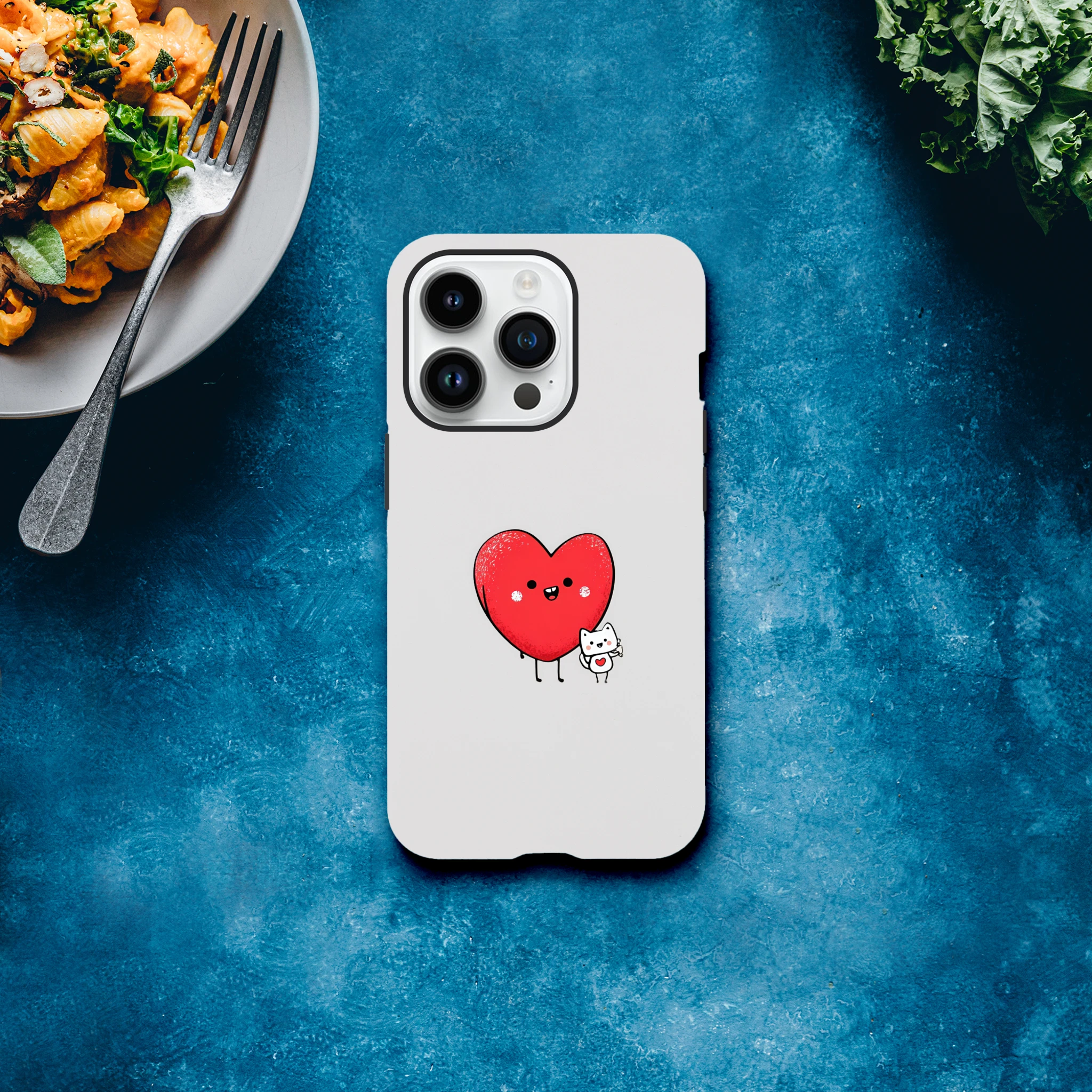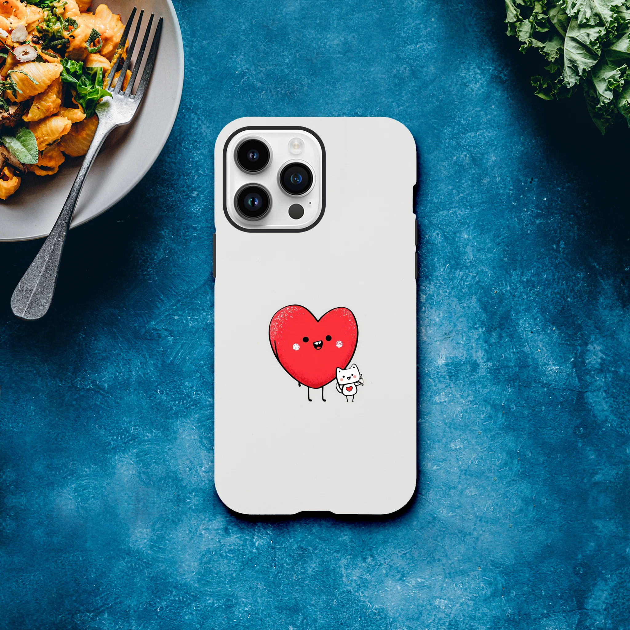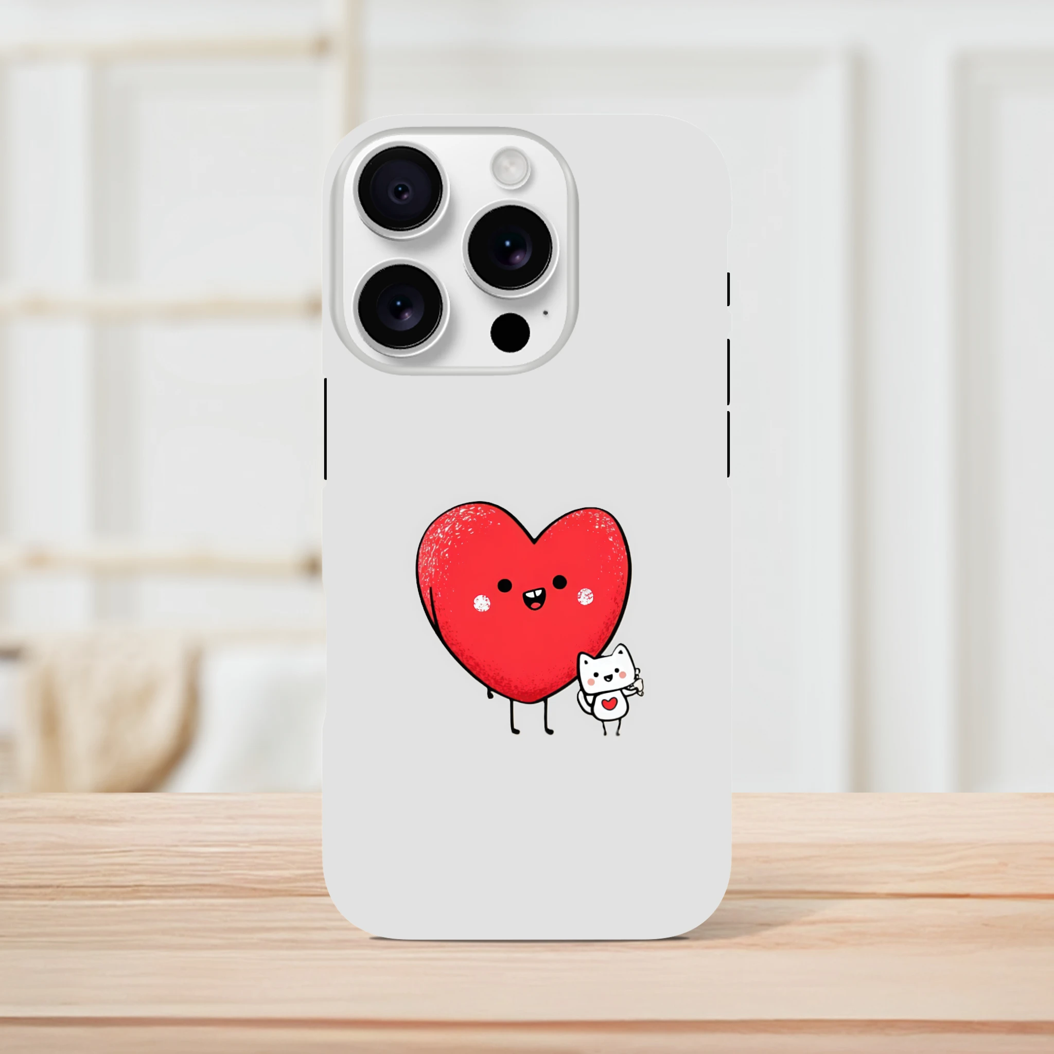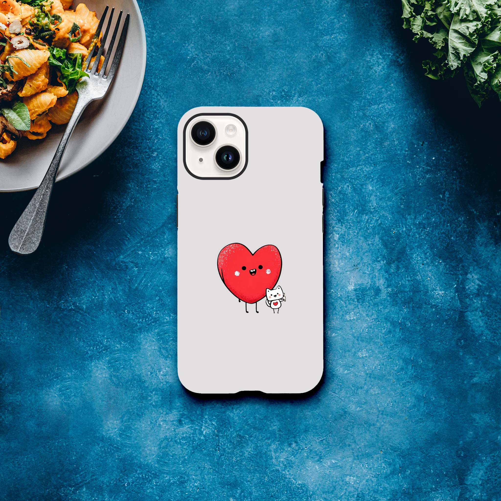 La coque de protection pour iPhone «Cœur et petit chat» est le meilleur allié de votre téléphone. Avec son cœur adorable et son petit félin malicieux, elle vous promet des journées chargées en sourires. Elle murmure à votre portable : « Ne t’inquiète pas, j’ai un chat-chœur et j'assure tes arrières ! » Parfaite pour protéger des coups de griffe de la vie quotidienne, elle rendra fou de jalousie votre vieux film de protection. Adoptez-la et laissez l'amour ronronner dans vos poches !