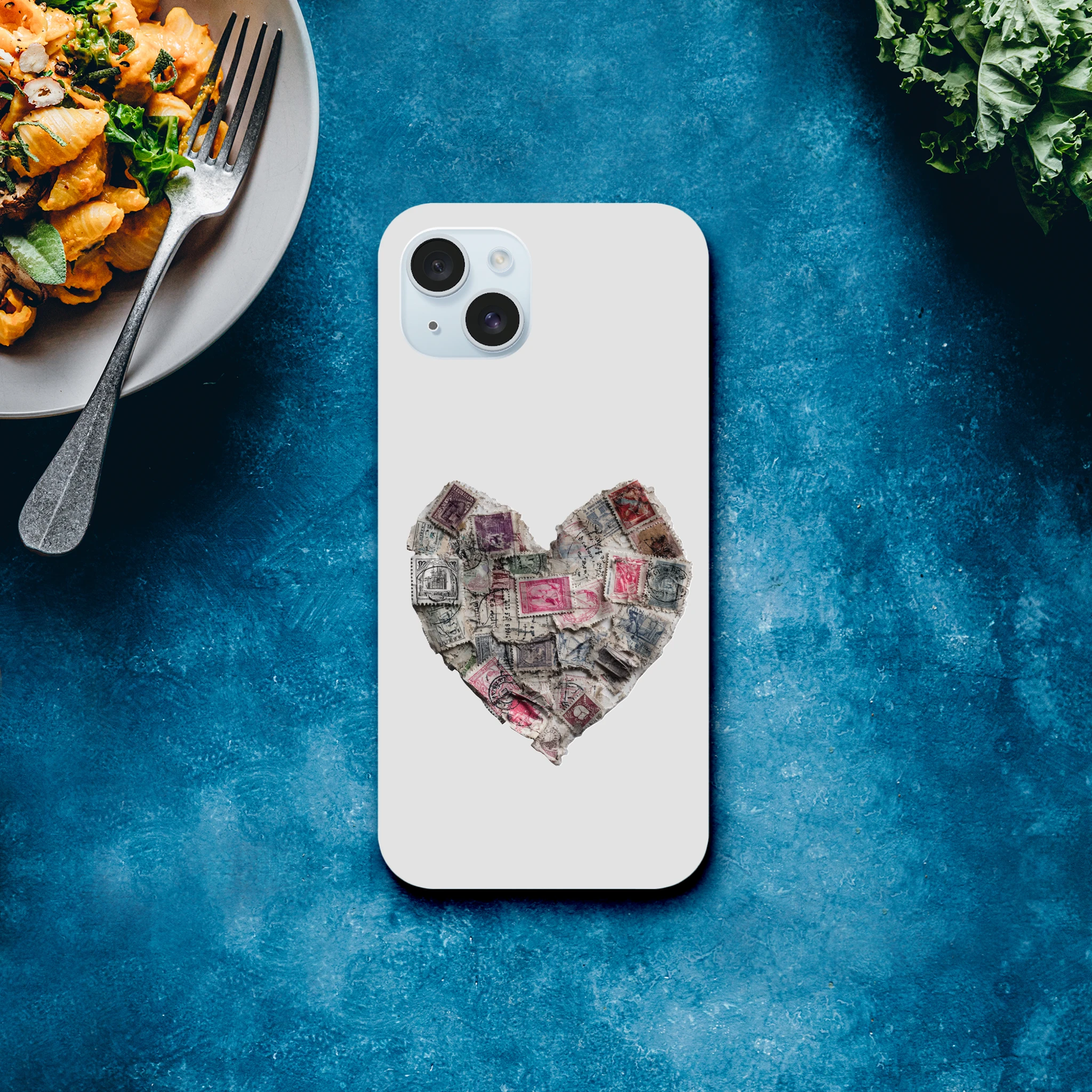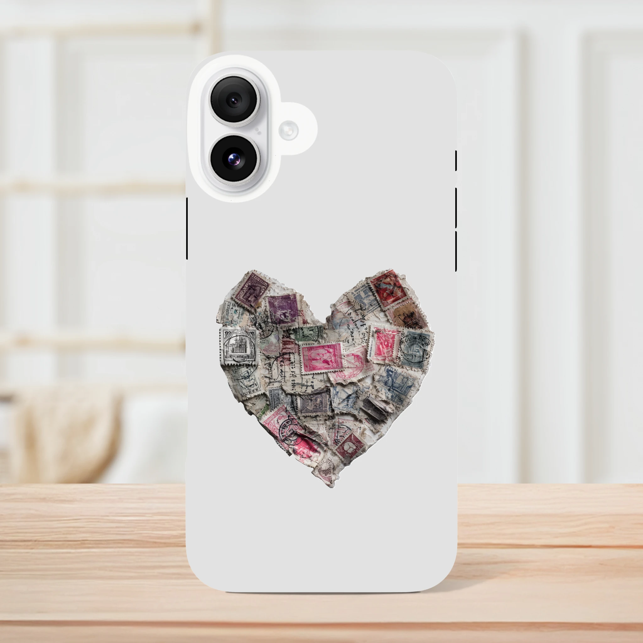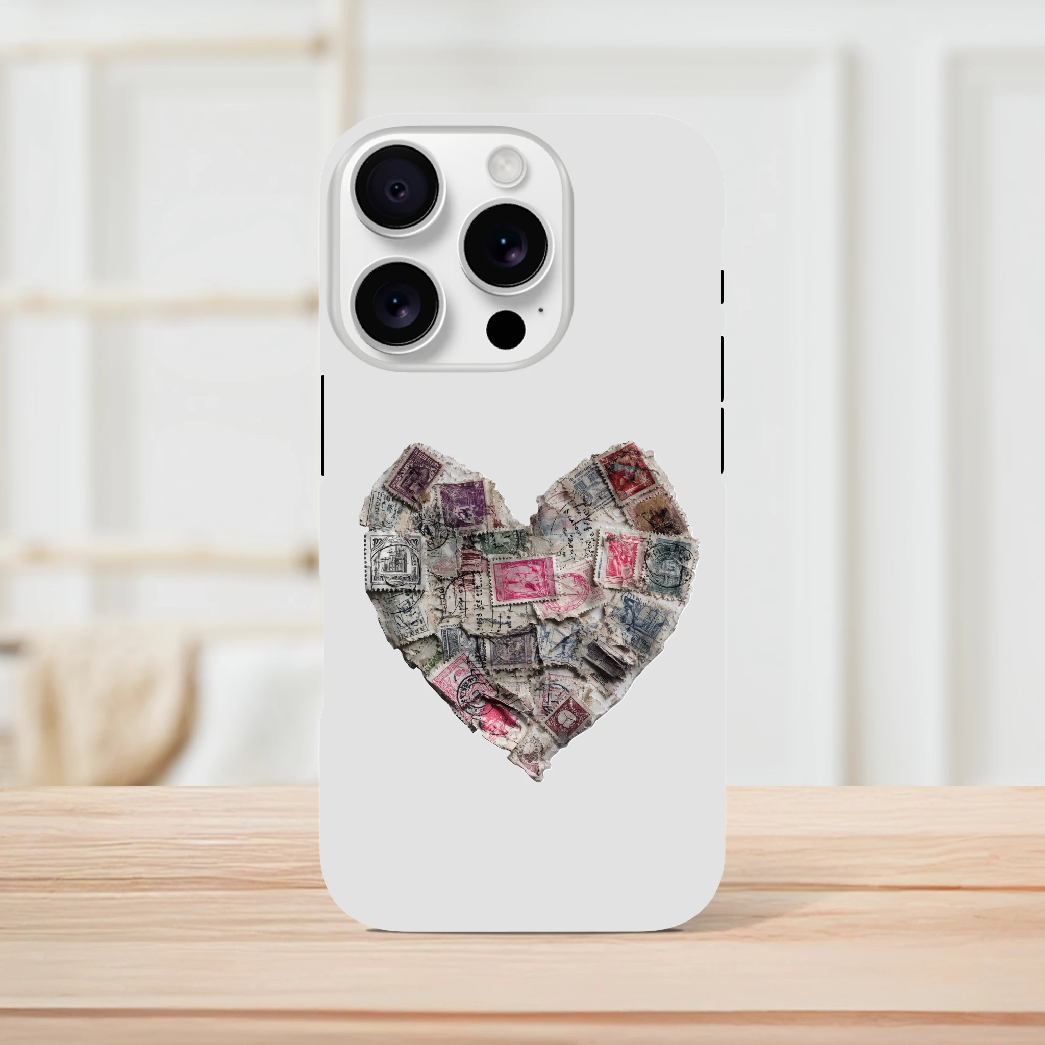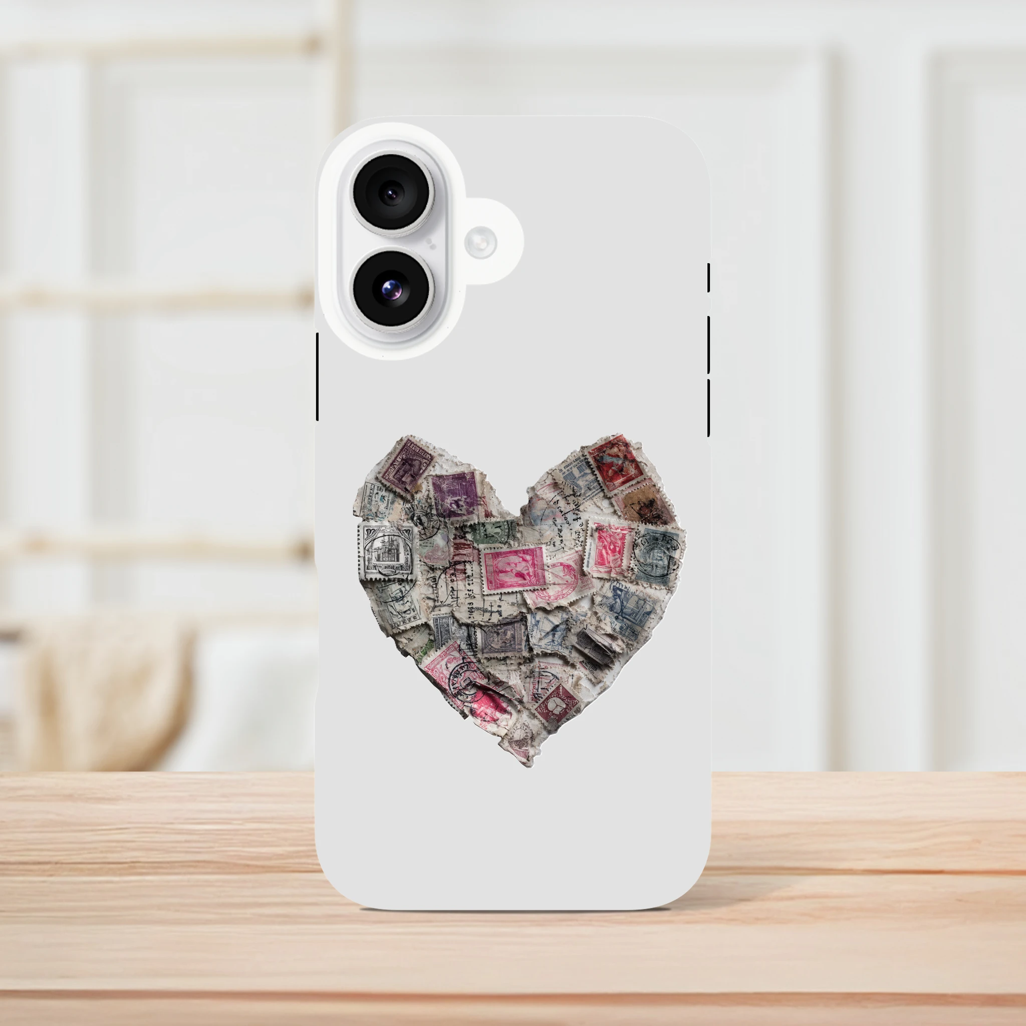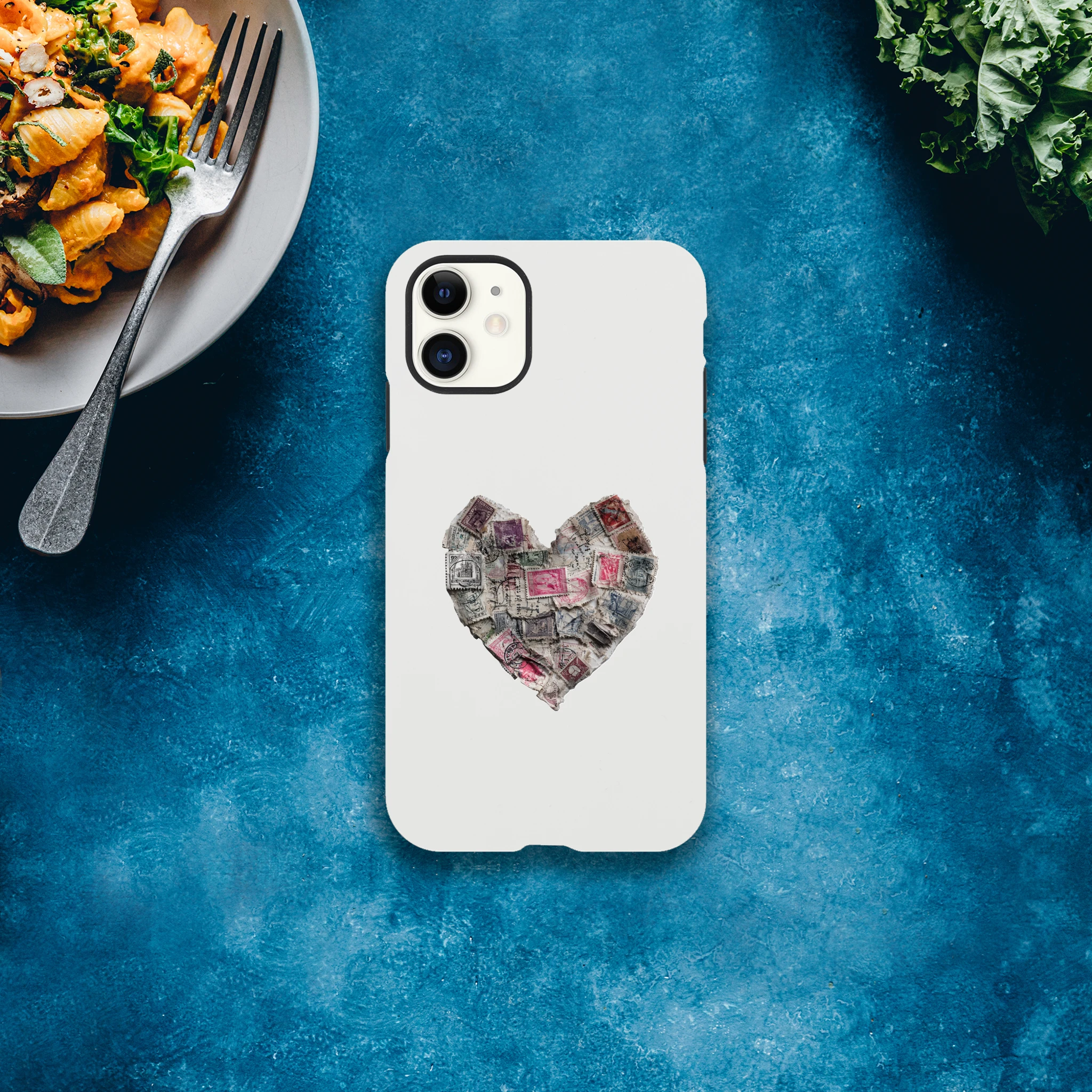 Coque de protection pour iPhone «Cœur fait de timbres-poste anciens»