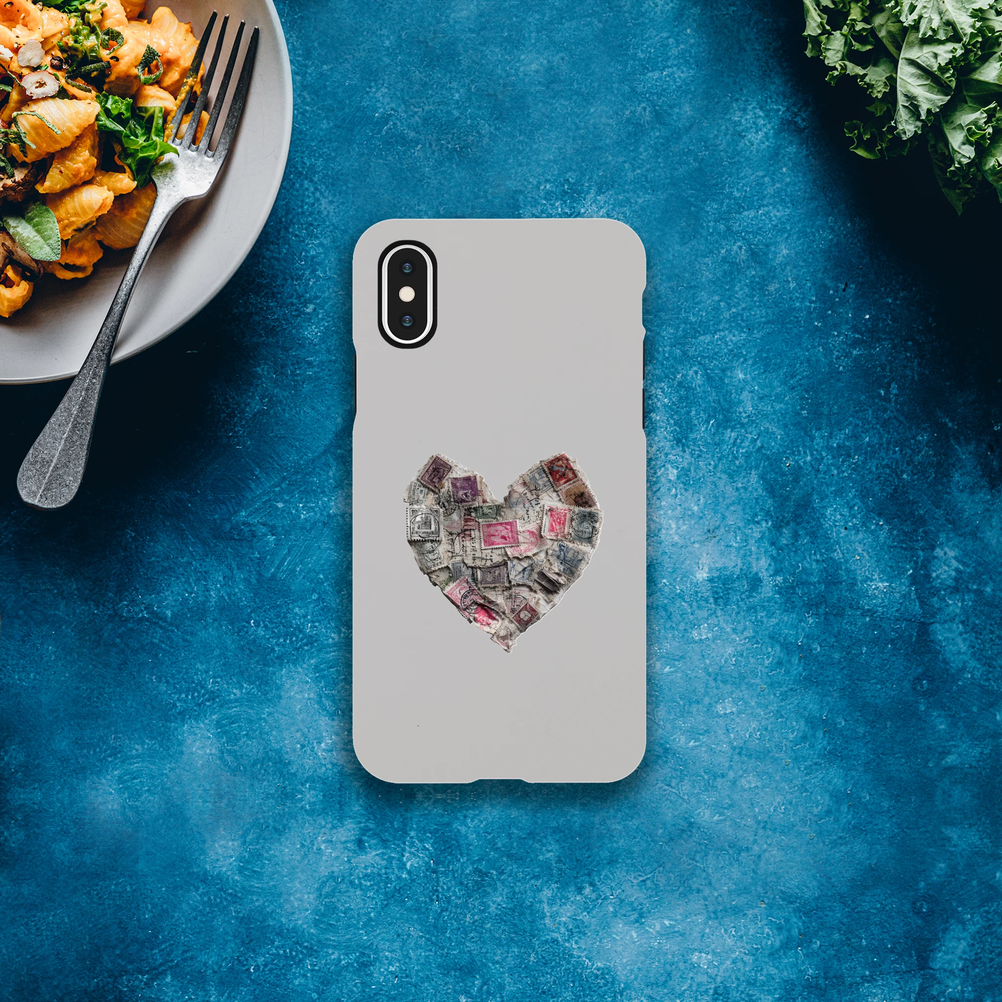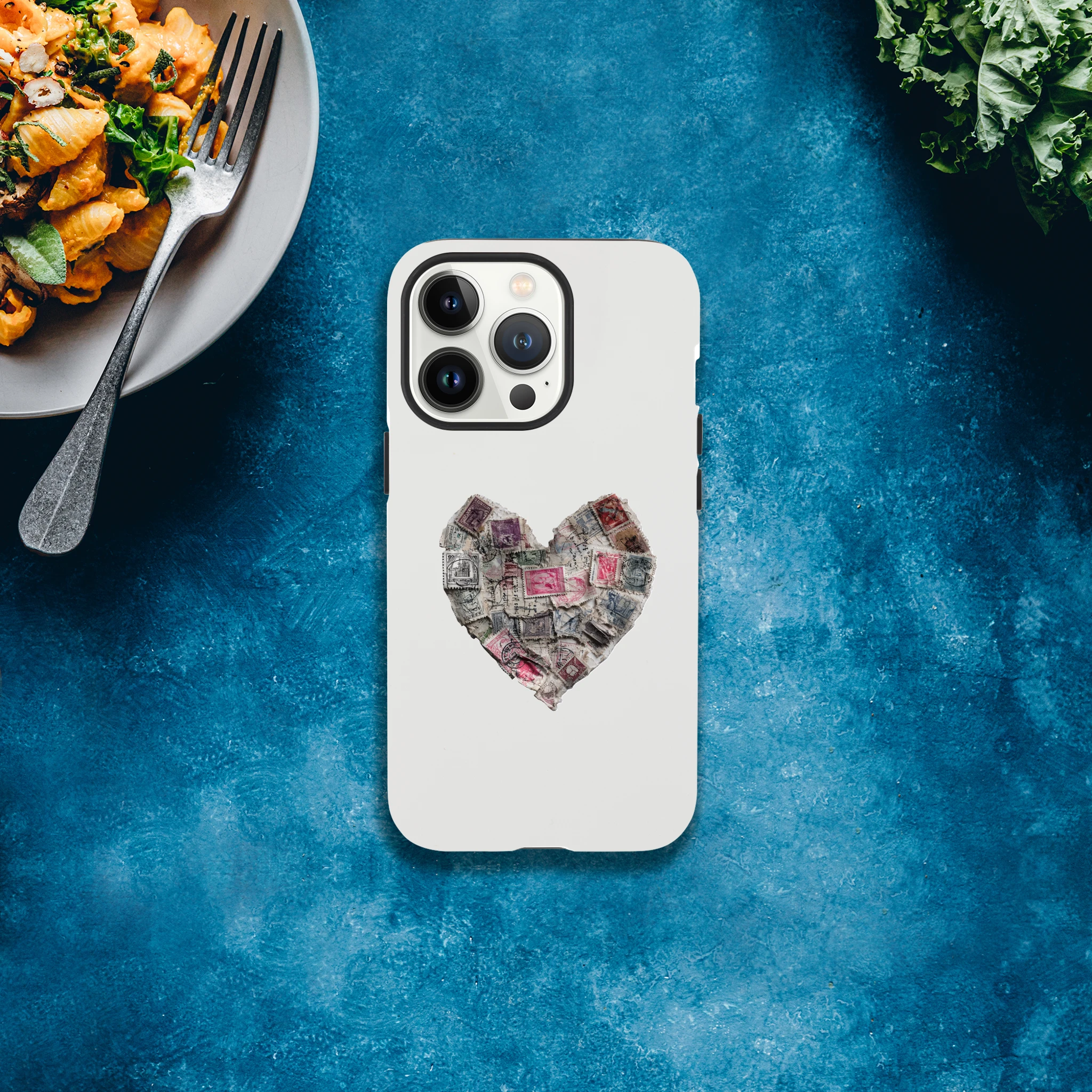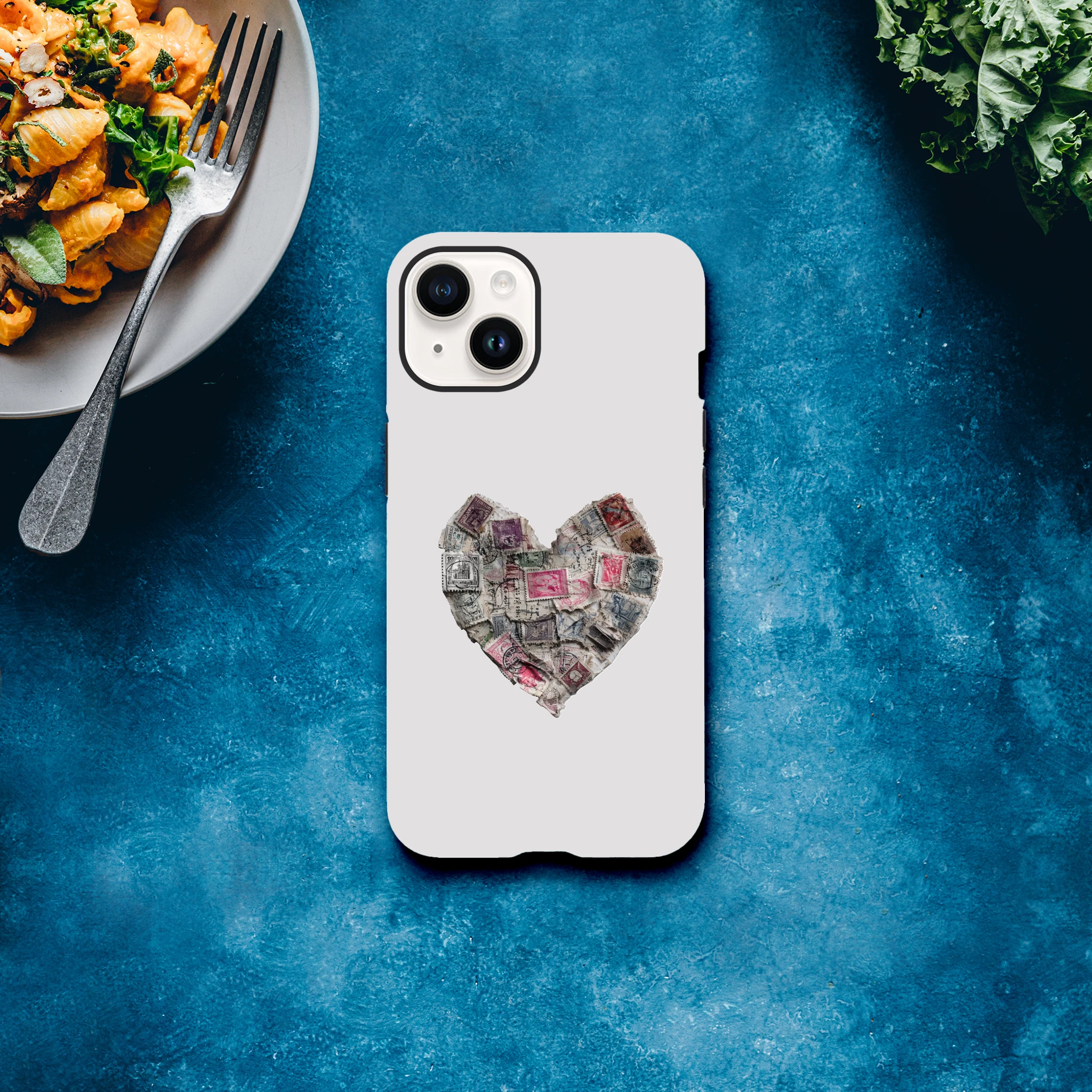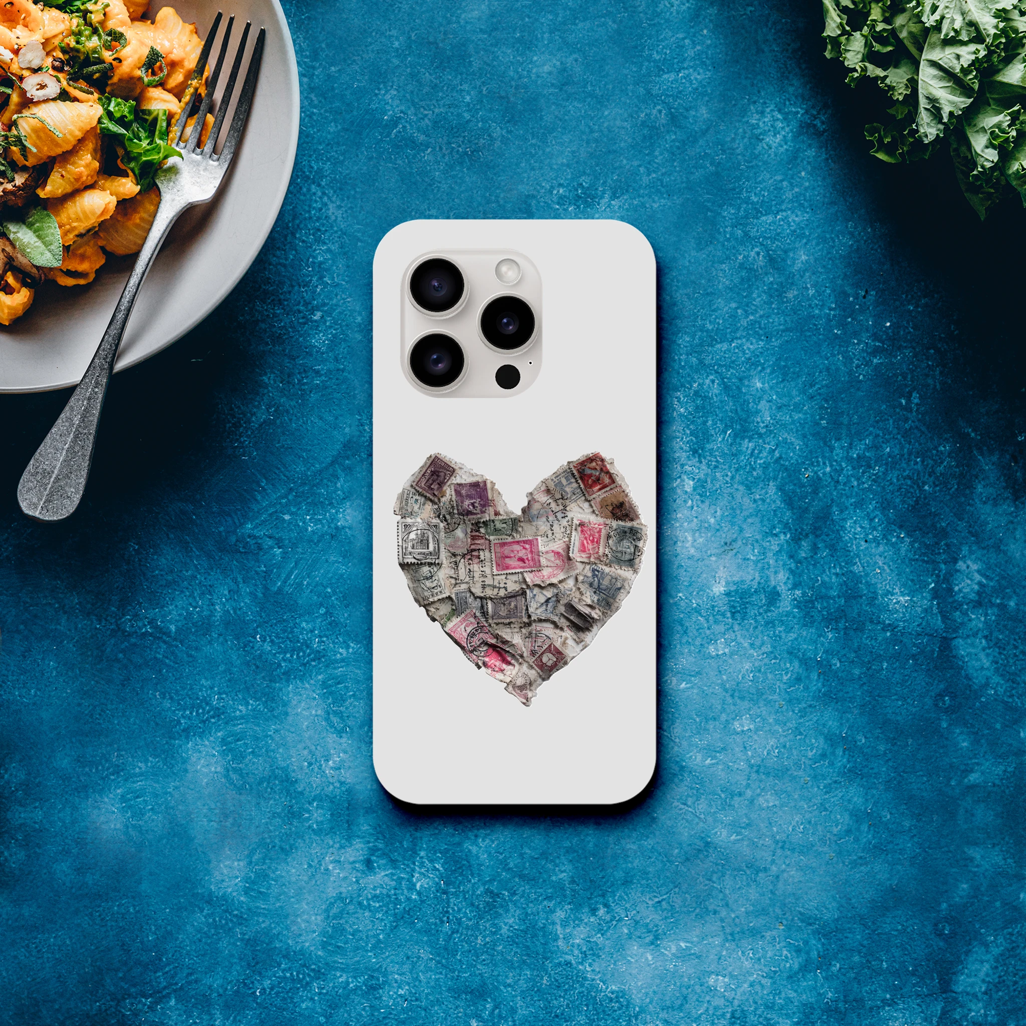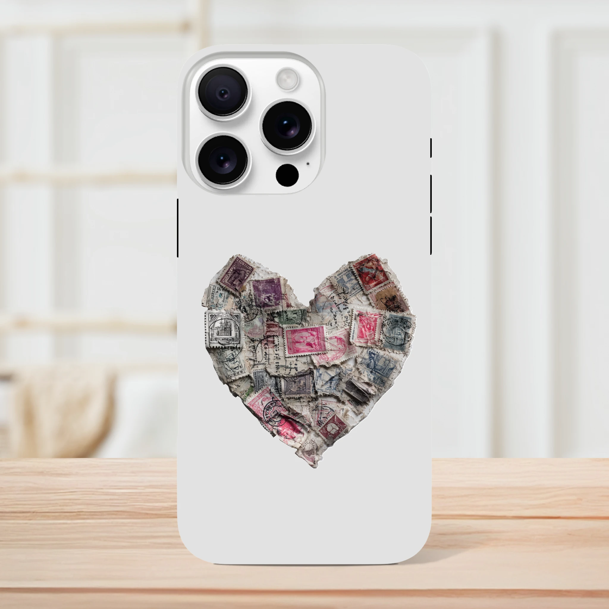 Coque de protection pour iPhone «Cœur fait de timbres-poste anciens»