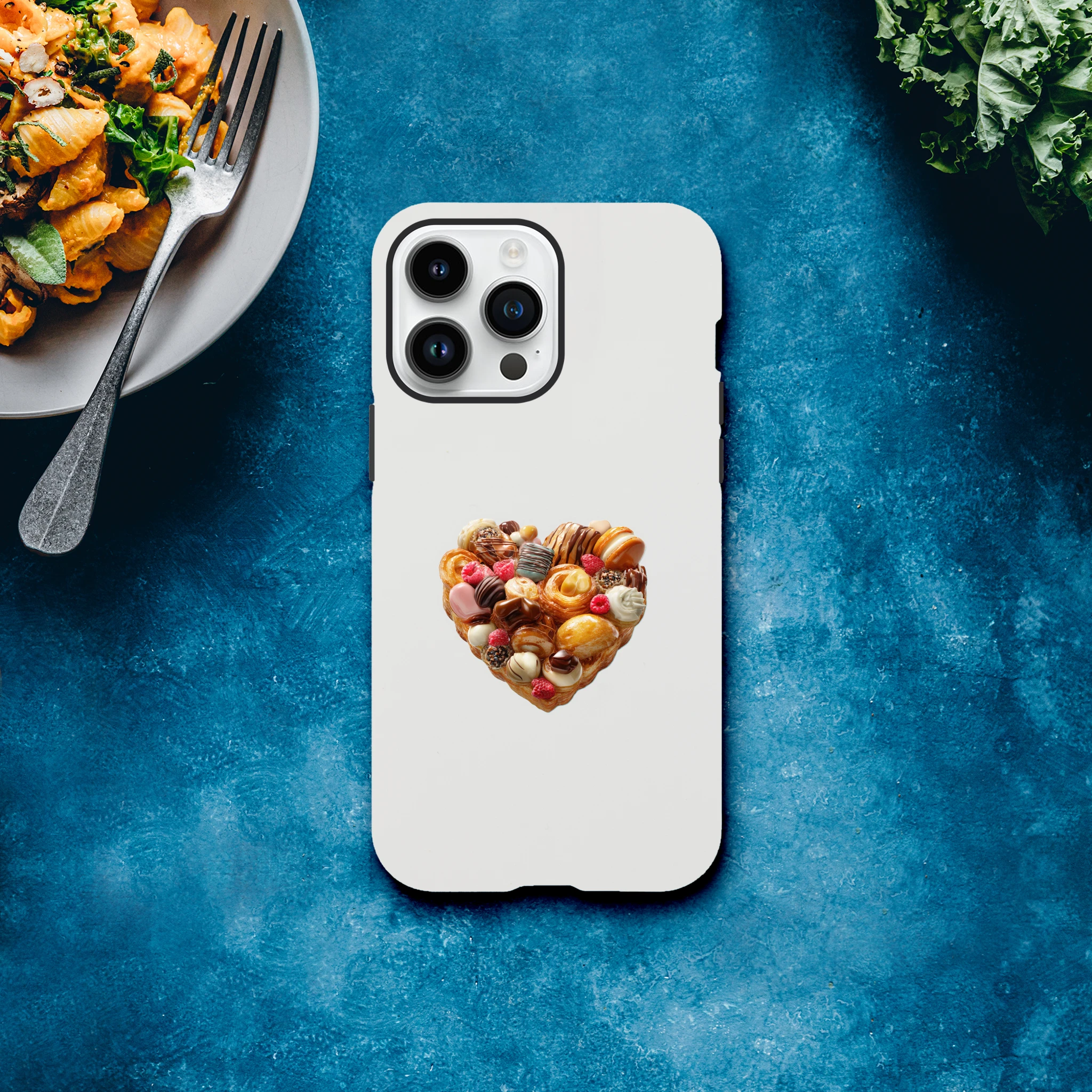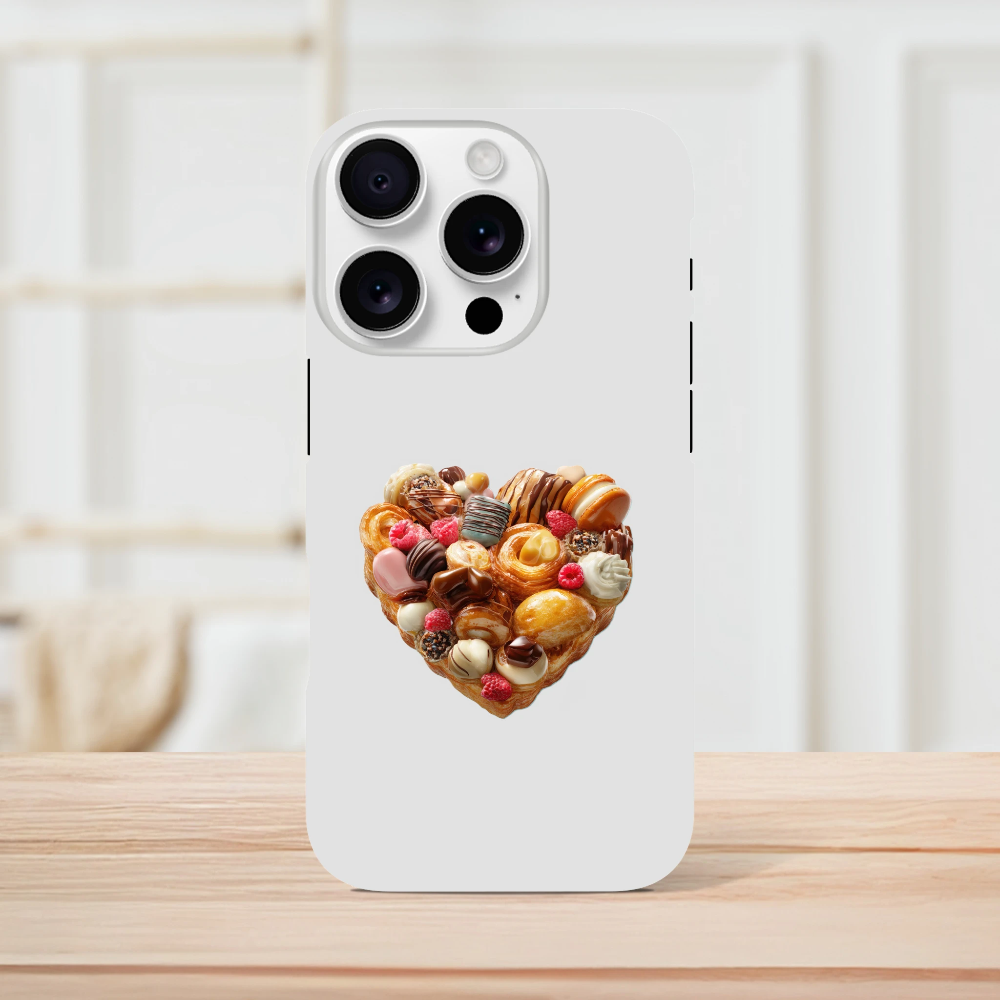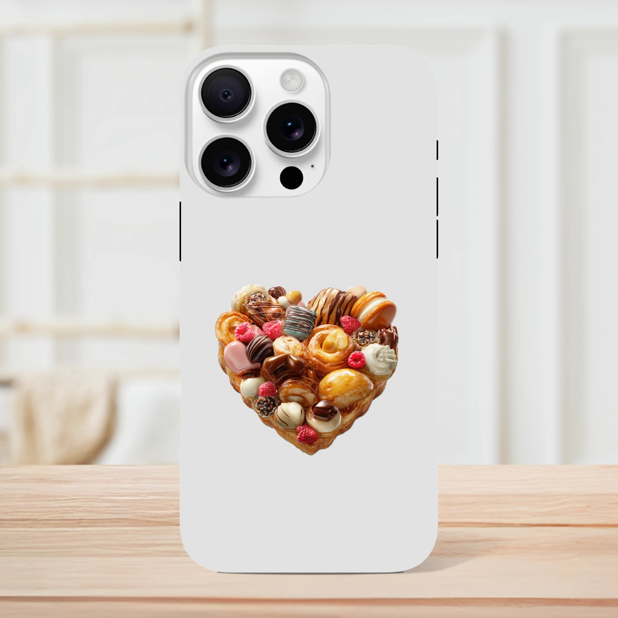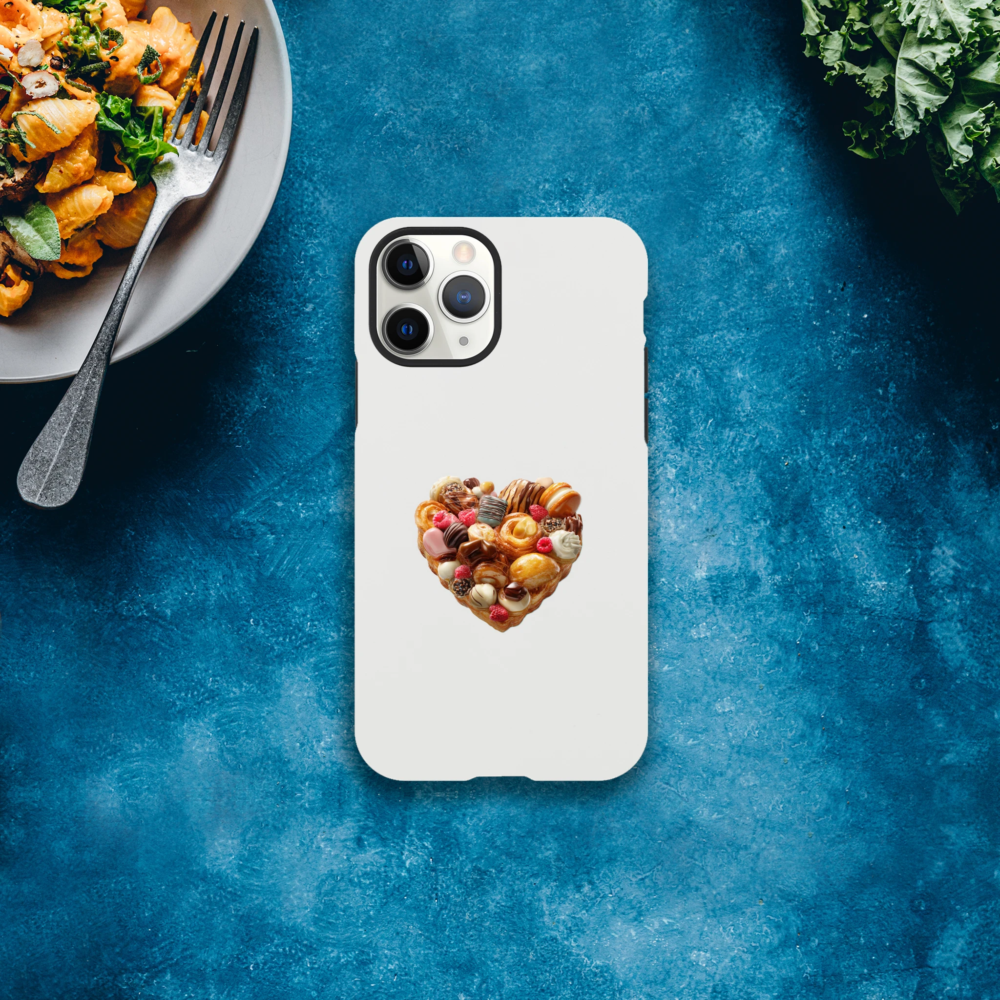 Découvrez notre Coque de protection pour iPhone «Cœur gourmand» ! Un dessert pour votre téléphone qui ne vous fera pas prendre un gramme, promis. Cette coque est plus croustillante qu'une baguette fraîche et plus douce qu'un macaron. Affichez votre amour pour la pâtisserie en protégeant votre précieux compagnon tech. Attention : risques élevés de provoquer une faim subite chez vos amis ! Adoptez cette coque qui fait plaisir sans culpabilité et faites de votre téléphone un vrai chef-d'œuvre pâtissier. Alors, qui veut une bouchée de style ?