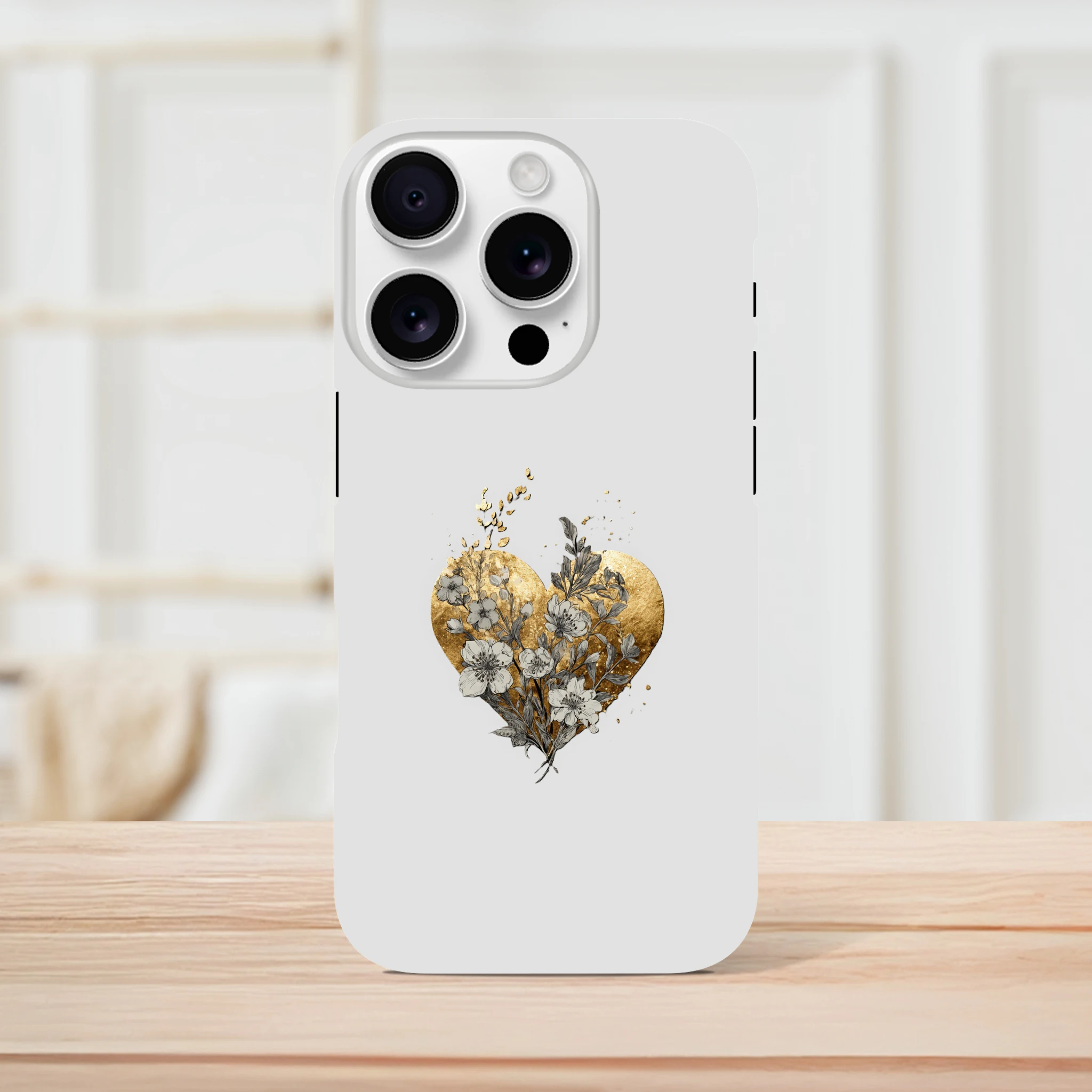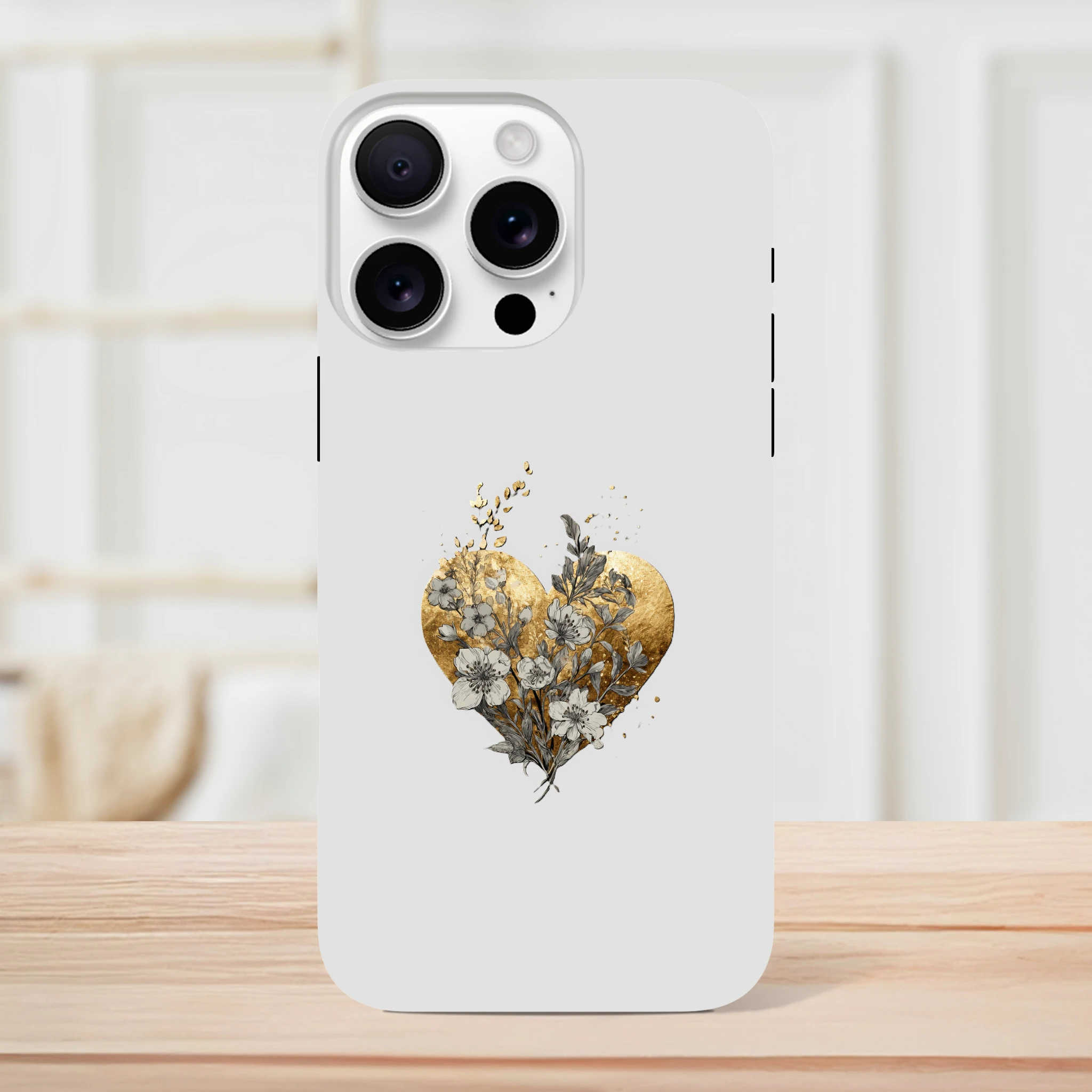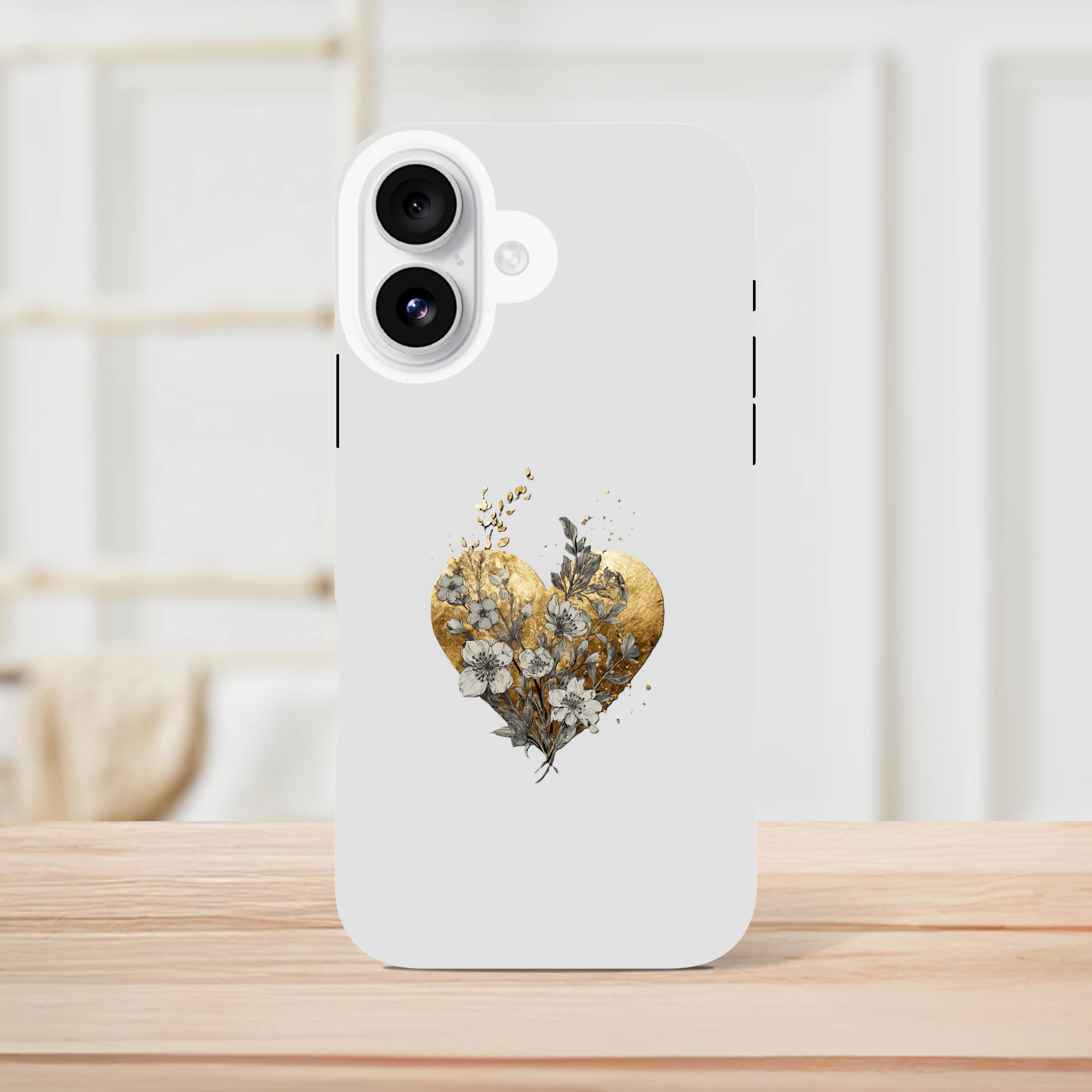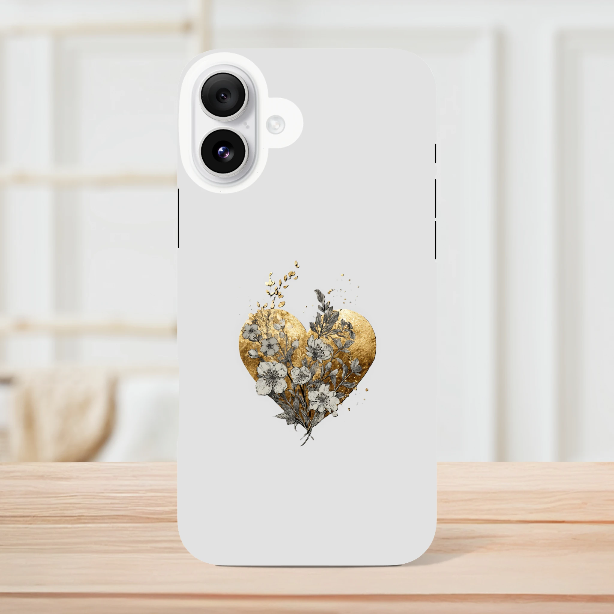 Vous êtes prêt à faire battre votre cœur et celui de votre iPhone ? Voici la coque « Fleurs sauvages, effet feuille d'or » ! C’est comme un câlin floral pour votre téléphone, avec une touche d’or pour que vos selfies brillent encore plus. Grâce à cette merveille, votre iPhone sera si bien habillé qu’il chipera la vedette à votre tenue. Protédez-le avec style et laissez les coeurs dorés et les fleurs envoûter tous ceux qui croisent votre chemin. Mimizou fait de l'amour un accessoire incontournable. Ne résistez pas ! Adoptez la tendresse !