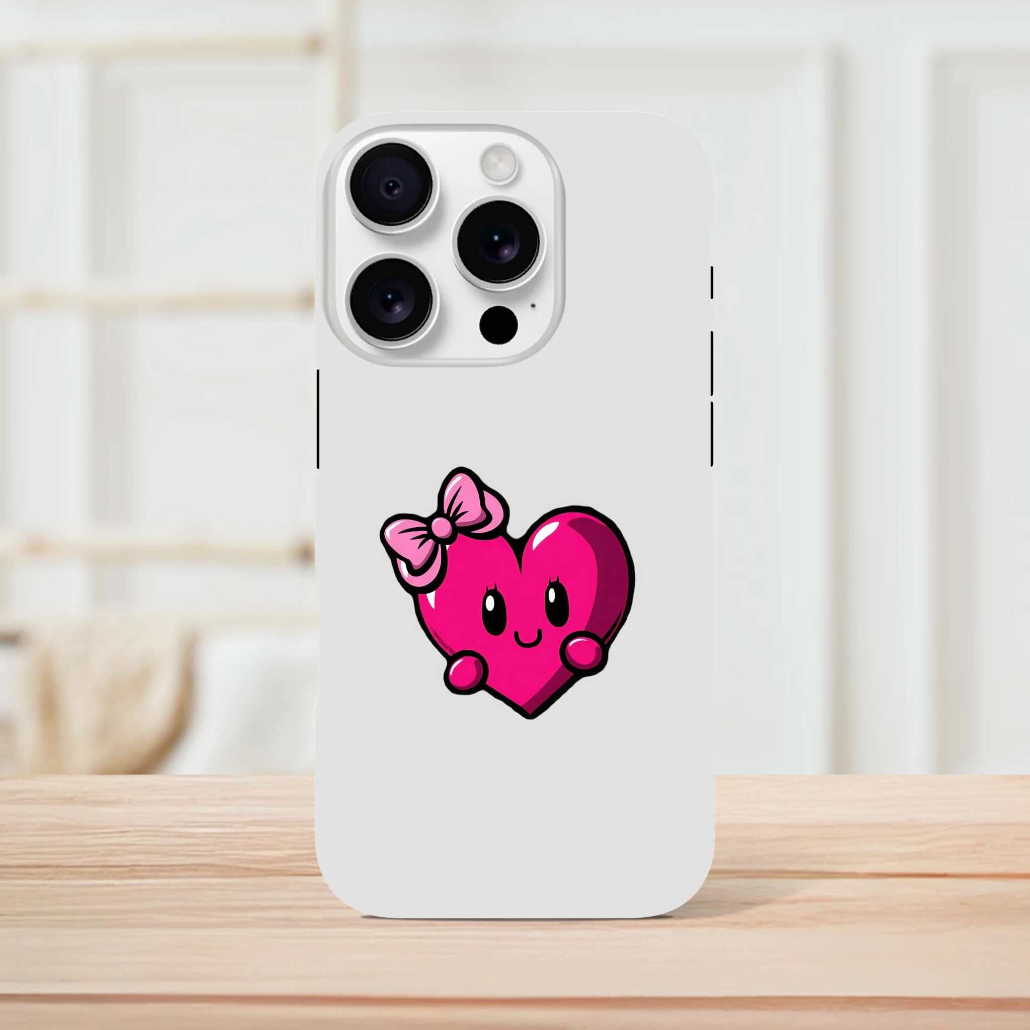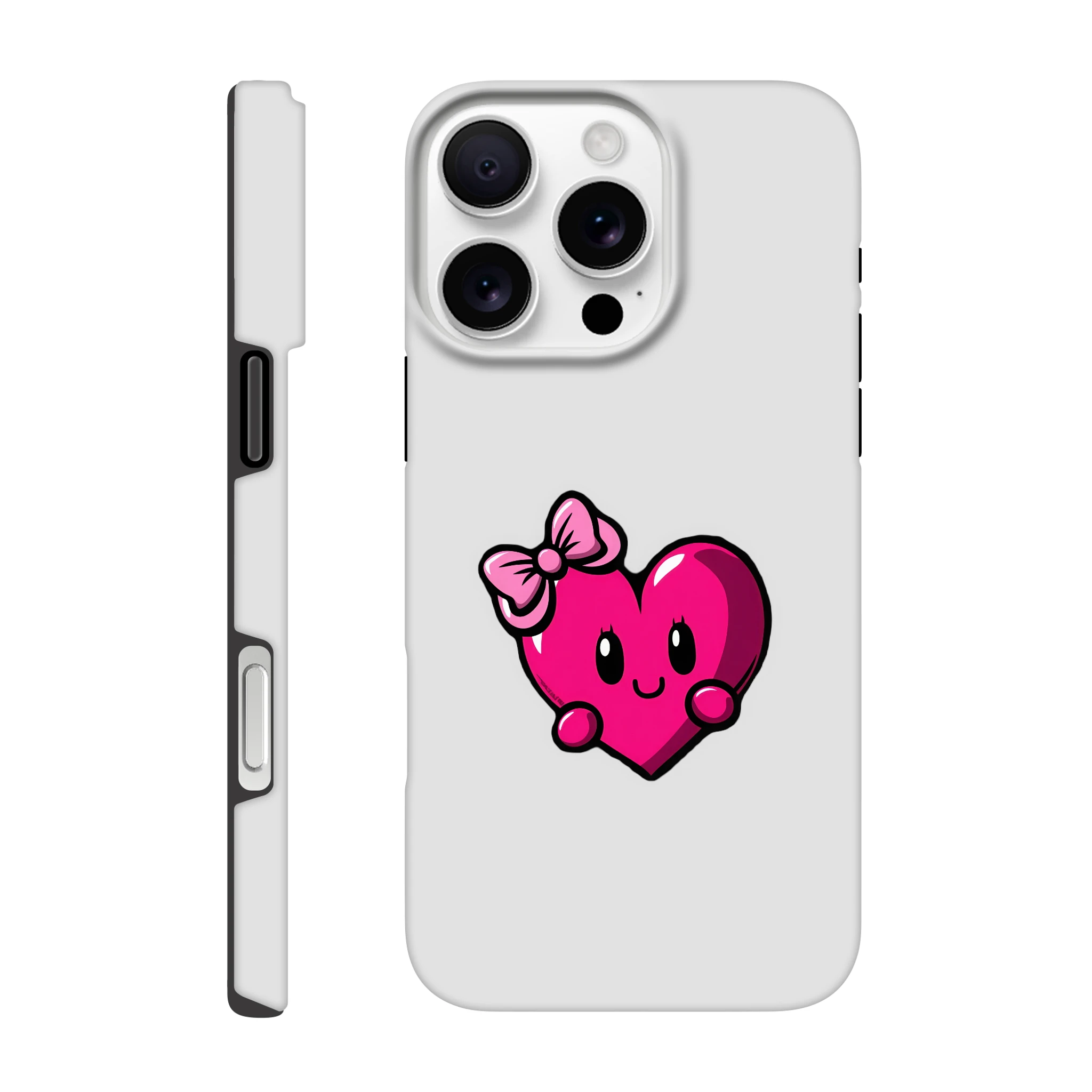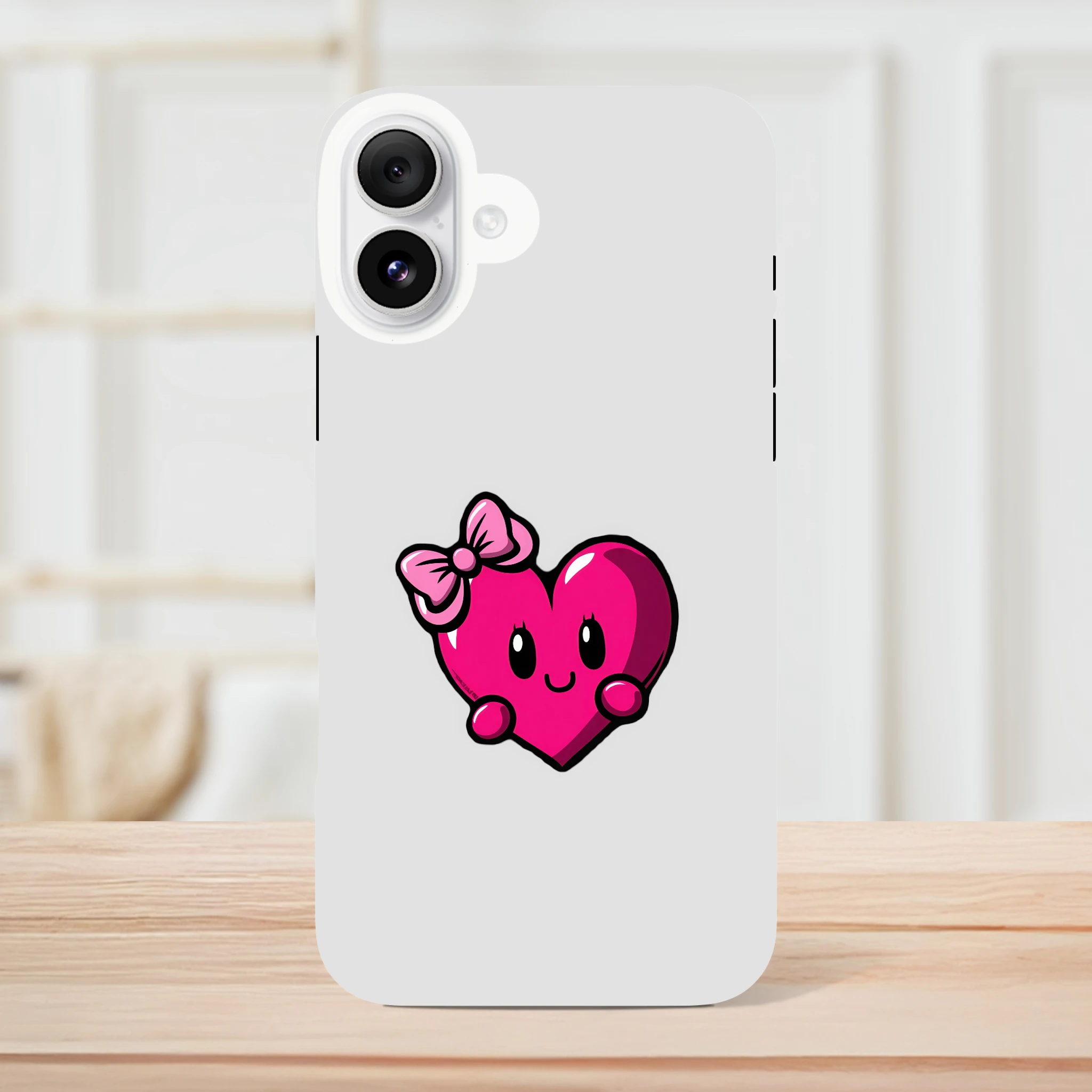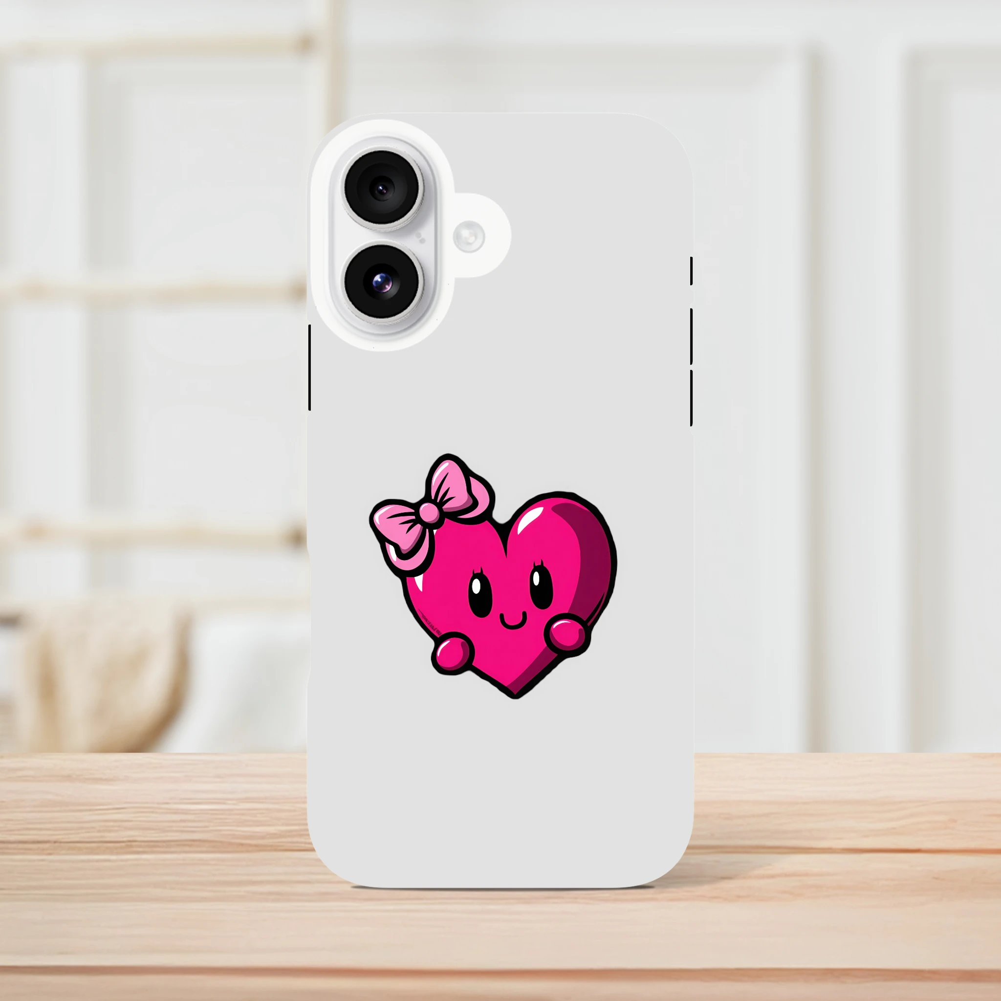 Transformez votre iPhone en prince charmant avec la coque « Mademoiselle Cœur » ! Avec son adorable cœur souriant et son nœud coquet, elle protégera votre appareil avec une tendresse irrésistible. Parfaite pour les romantiques incorrigibles ou simplement pour ceux qui veulent ajouter une touche d'amour à leur journée, cette coque est prête à faire battre plus d'un cœur... d'euphorie ! Soyez prêt à répondre à la question : « Quel est ton secret pour avoir un smartphone aussi stylé ? » Réponse : « L'amour est dans le design ! » Préparez-vous à faire rougir votre iPhone... et vos amis !