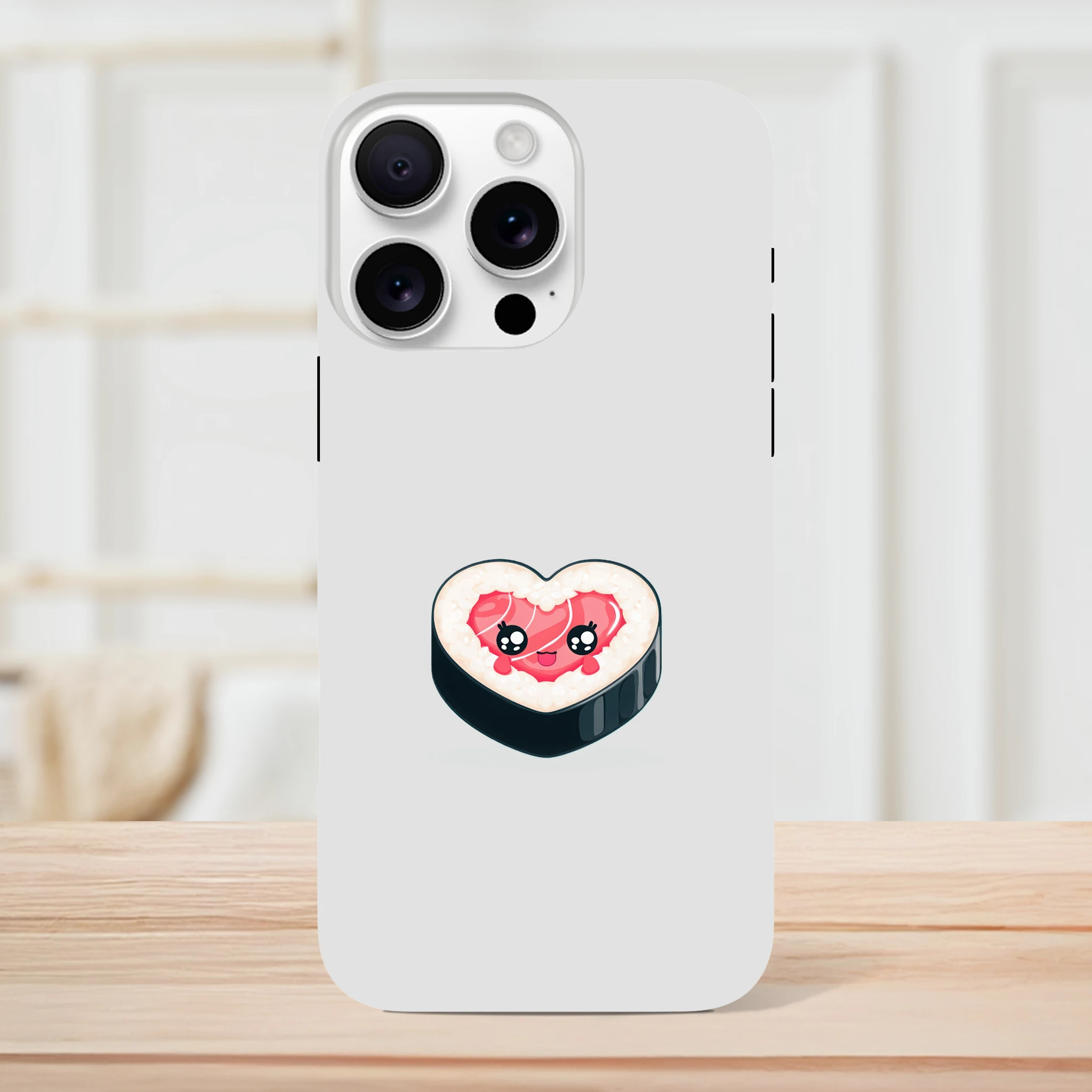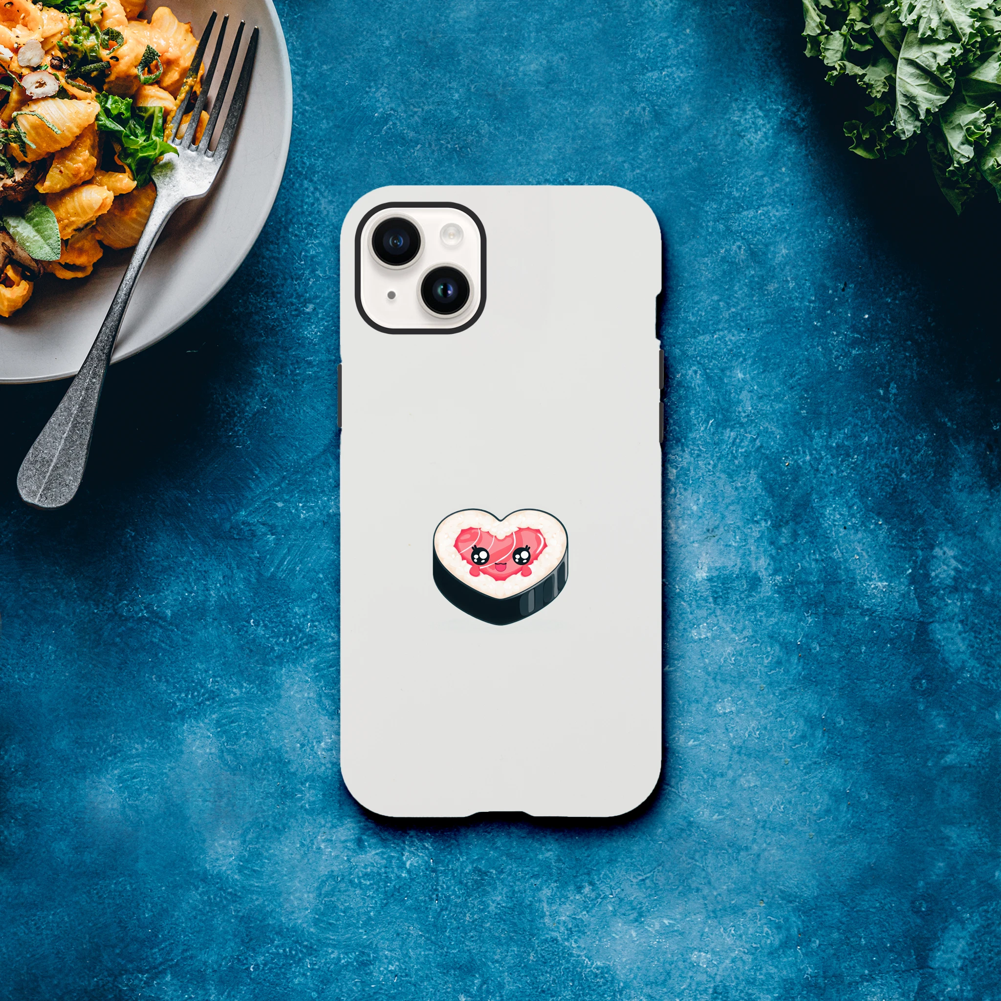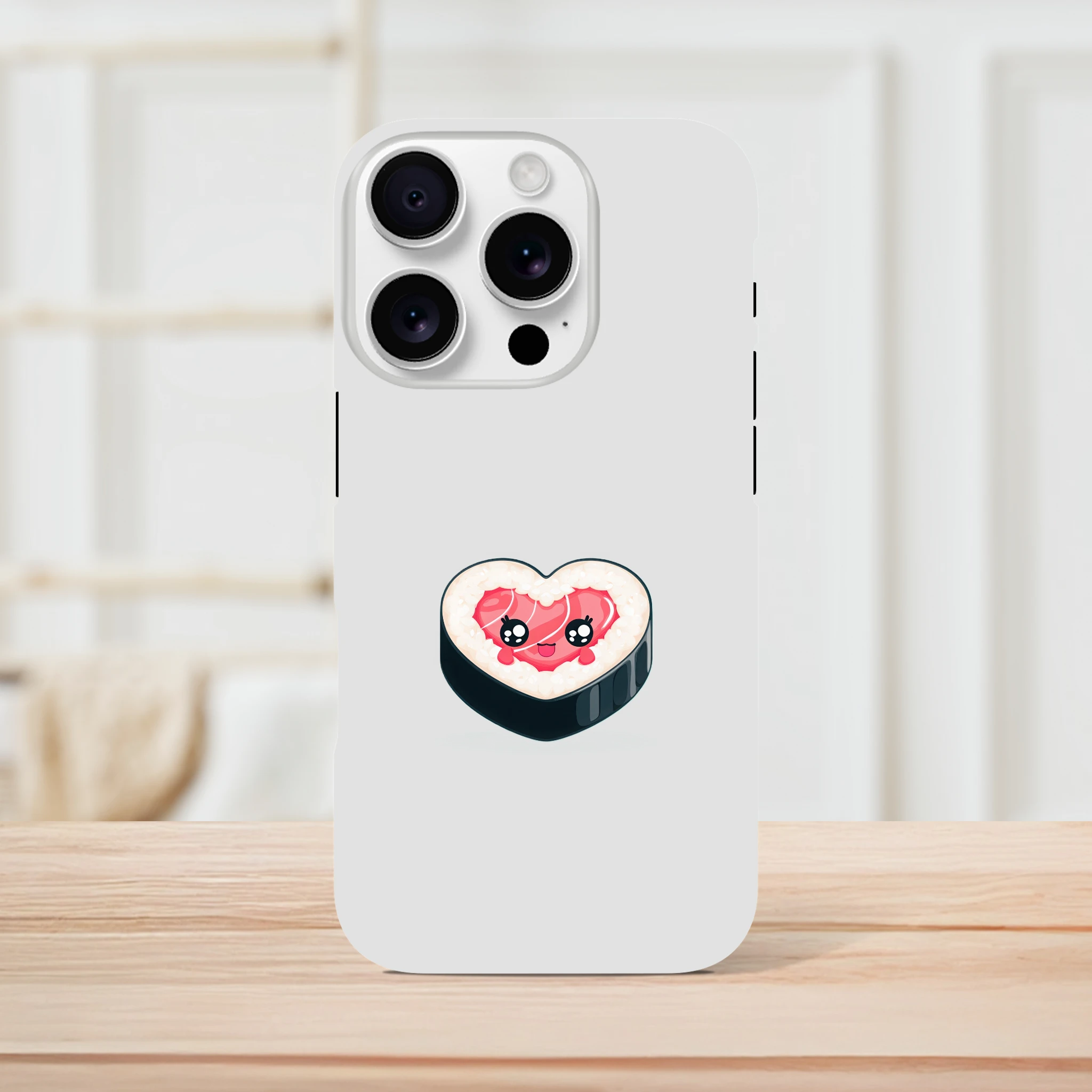 Voici la coque de protection pour iPhone «Rouleau de sushi» : un incontournable pour les fanas de poissons et de tendresse ! Avec son sushi en forme de cœur, elle enroule votre précieux téléphone d'une fusion délicieuse de kawaii et de protection. Mimizou promet amour et saveurs sans modération. Vous ne garantissons pas qu'elle améliorera votre technique de roulage de makis, mais elle fera fondre tous vos amis. Un must pour ceux qui associent amour et riz collant. Faites passer votre téléphone en mode sushi et laissez-le rouler dans le fun ! Dépêchez-vous, la marée d’amour monte !