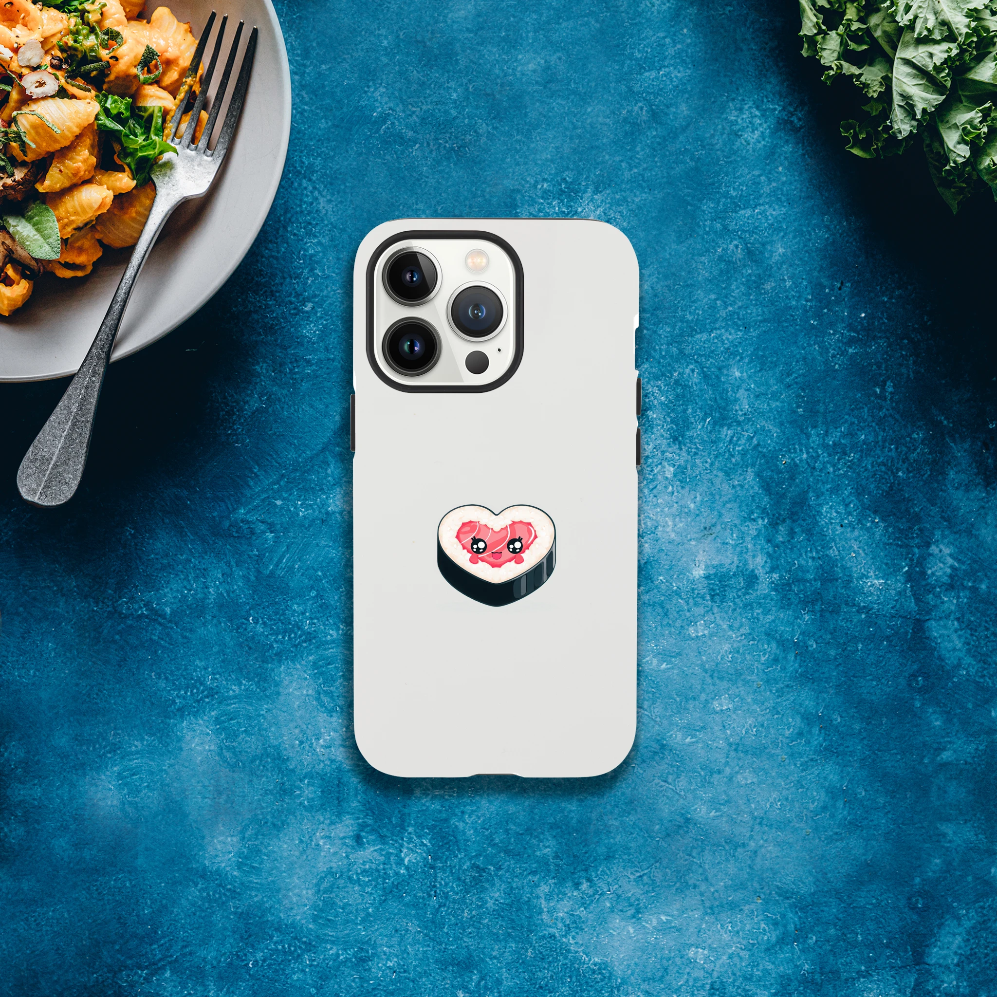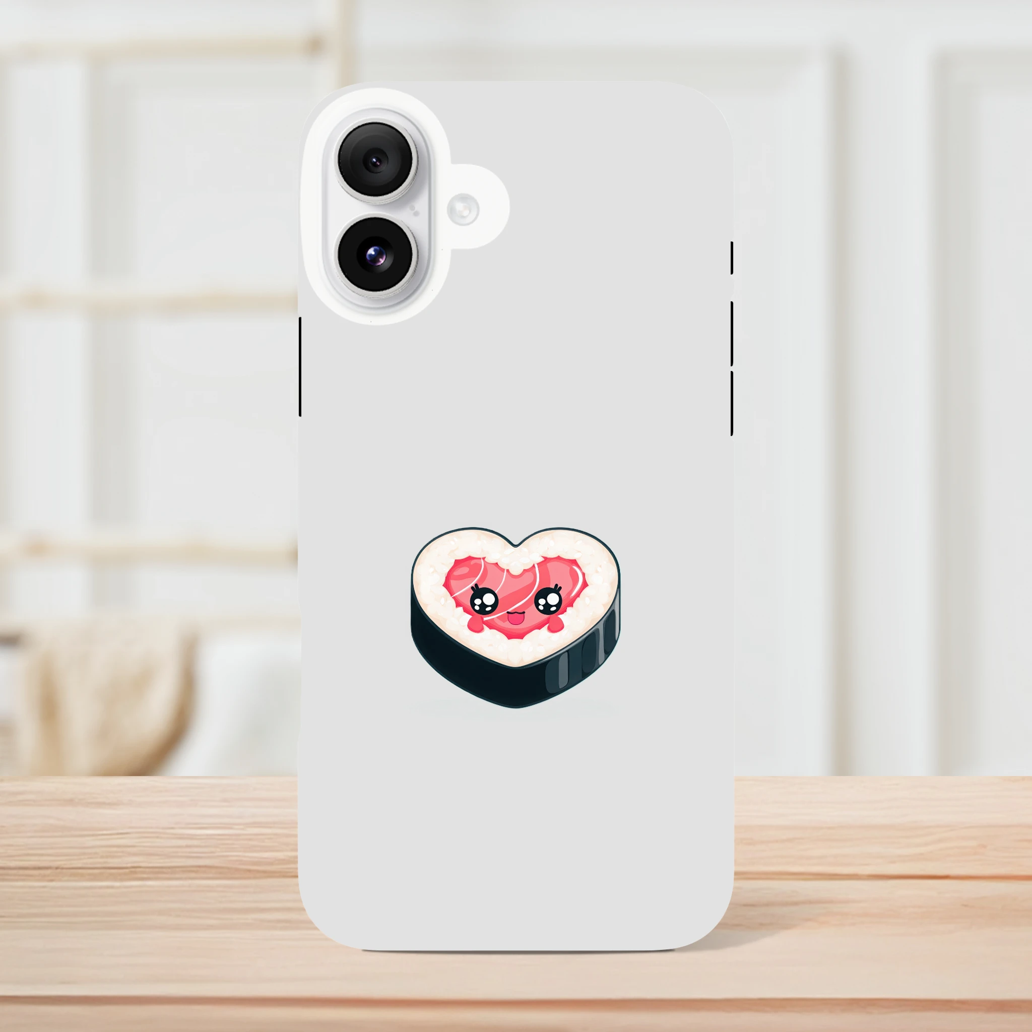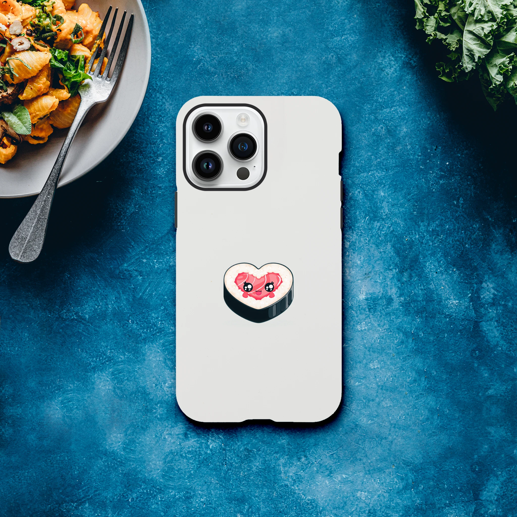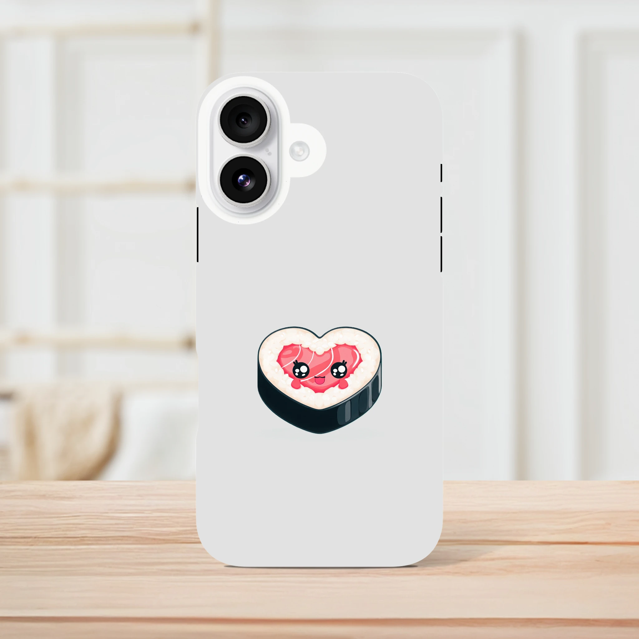 Voici la coque de protection pour iPhone «Rouleau de sushi» : un incontournable pour les fanas de poissons et de tendresse ! Avec son sushi en forme de cœur, elle enroule votre précieux téléphone d'une fusion délicieuse de kawaii et de protection. Mimizou promet amour et saveurs sans modération. Vous ne garantissons pas qu'elle améliorera votre technique de roulage de makis, mais elle fera fondre tous vos amis. Un must pour ceux qui associent amour et riz collant. Faites passer votre téléphone en mode sushi et laissez-le rouler dans le fun ! Dépêchez-vous, la marée d’amour monte !