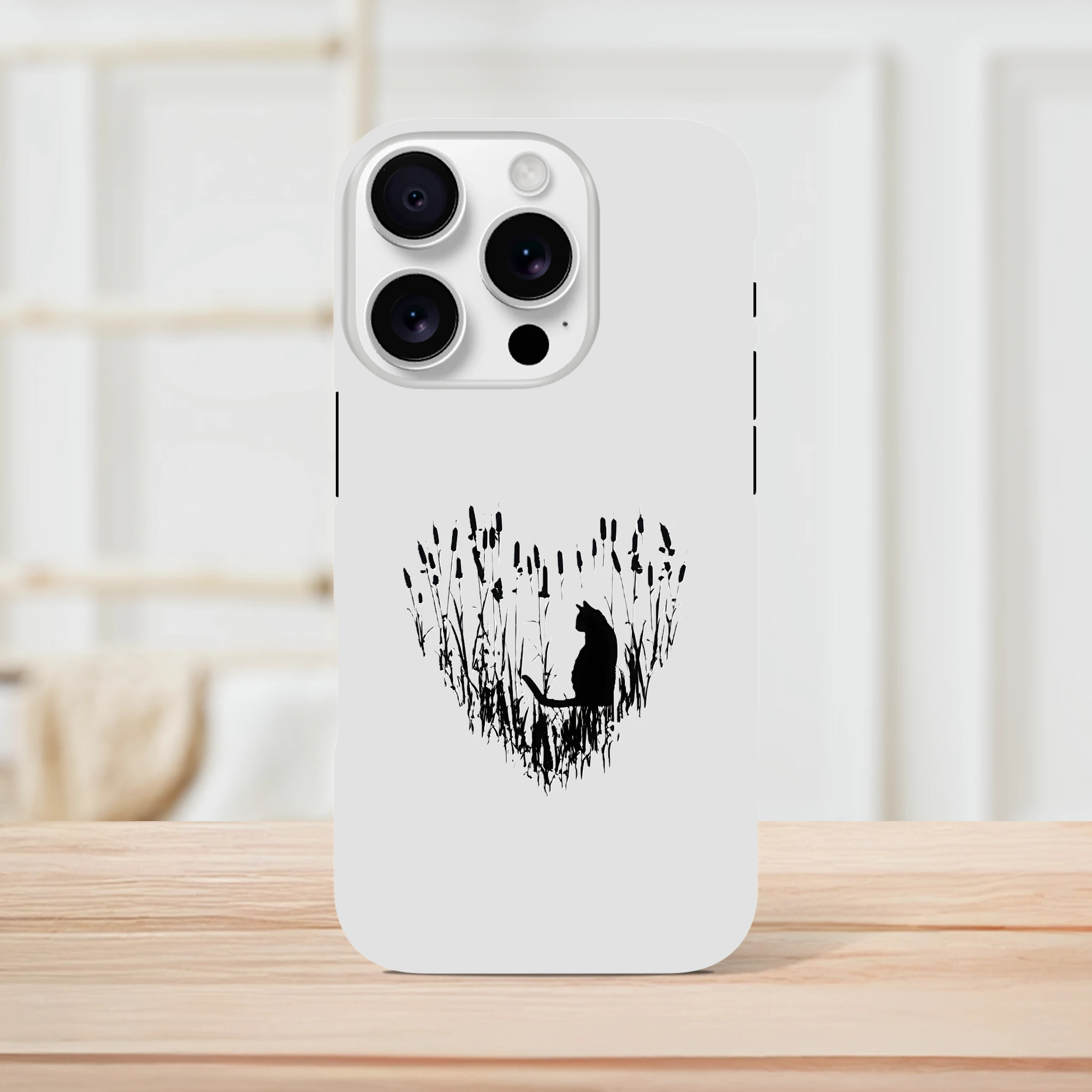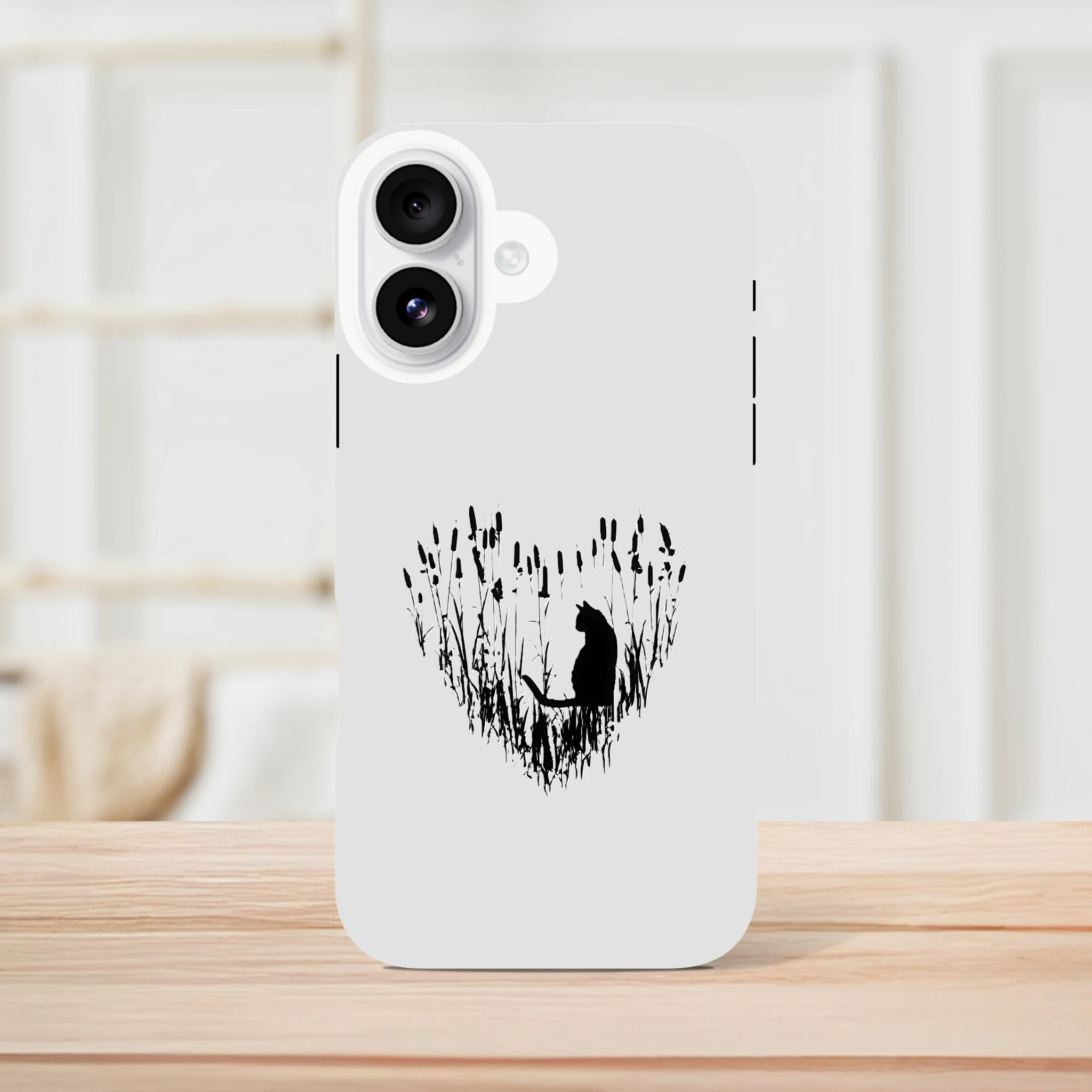 Attention les amoureux des chats, la coque de protection pour iPhone «Silhouette de chat» de Mimizou est là pour booster votre style ! Transformez votre téléphone en un jardin enchanté où un chat mystérieux veille avec une élégance féline au milieu de sa jungle secrète. Idéale pour ceux qui veulent miauler leur amour pour les chats tout en étant terriblement stylés. Et ne vous inquiétez pas, cette coque est aussi solide qu’un chat sur ses pattes ! Protégez votre précieux compagnon technologique avec ce bijou à croquer… ou plutôt à câliner !