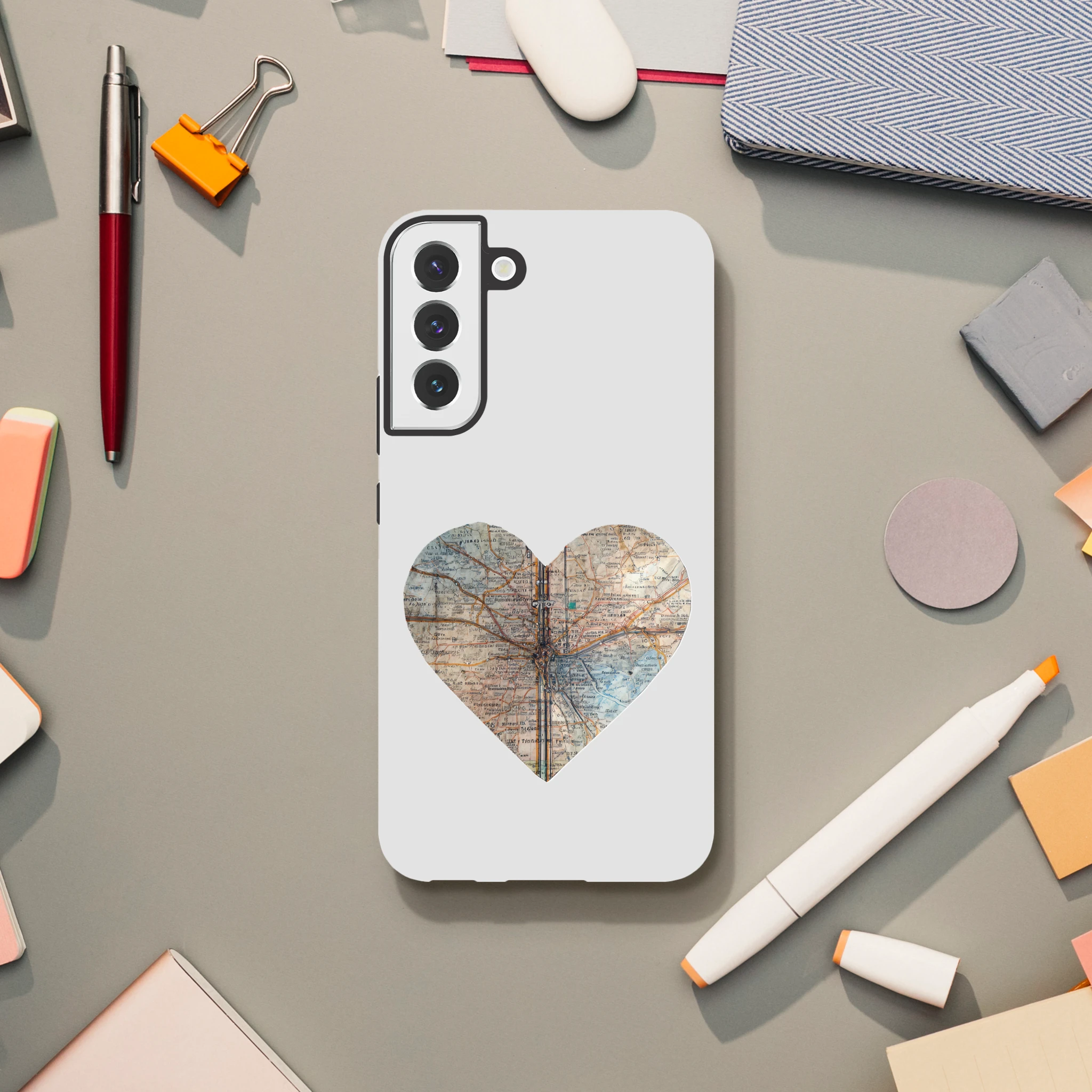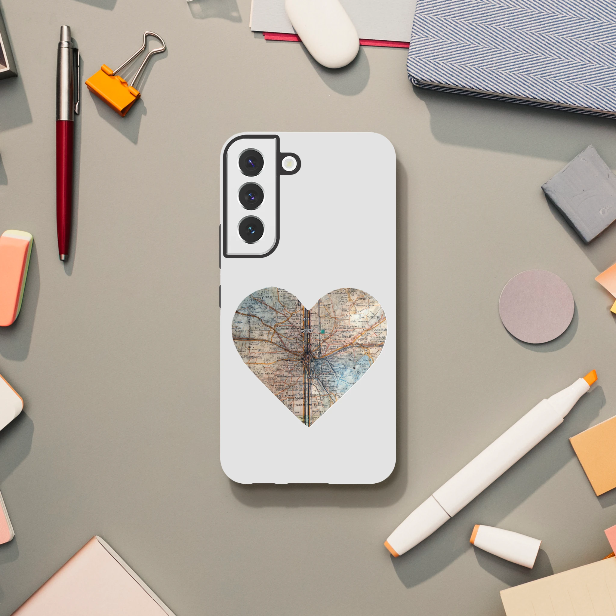 Coque de protection pour Samsung Galaxy «Cartes routières anciennes en coeur»