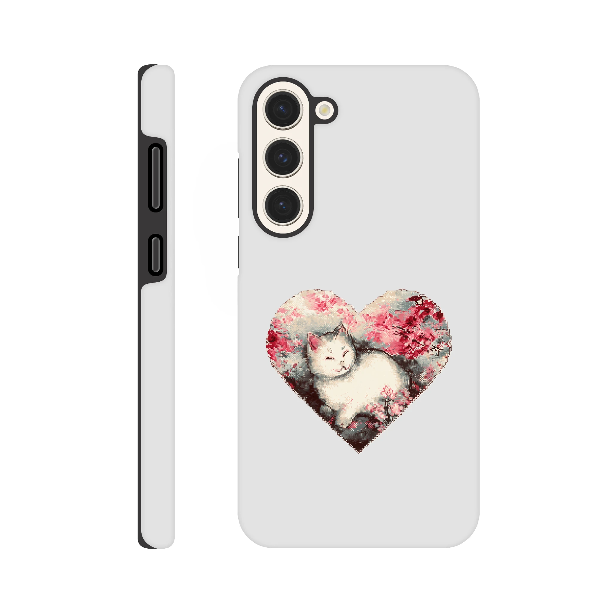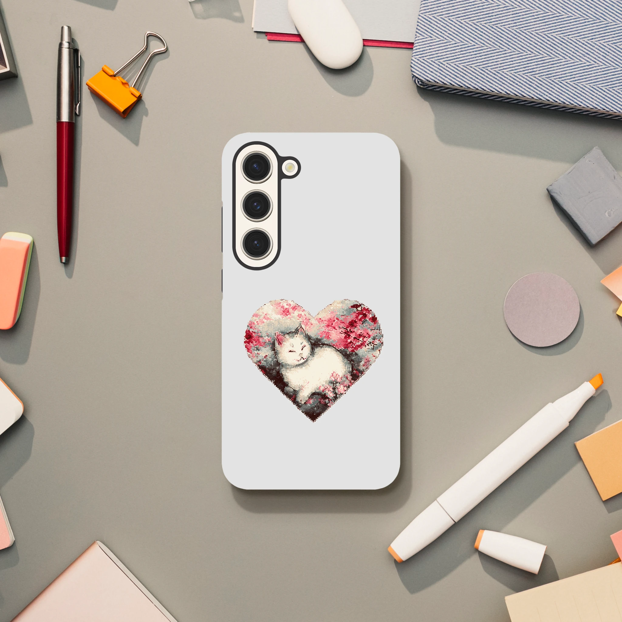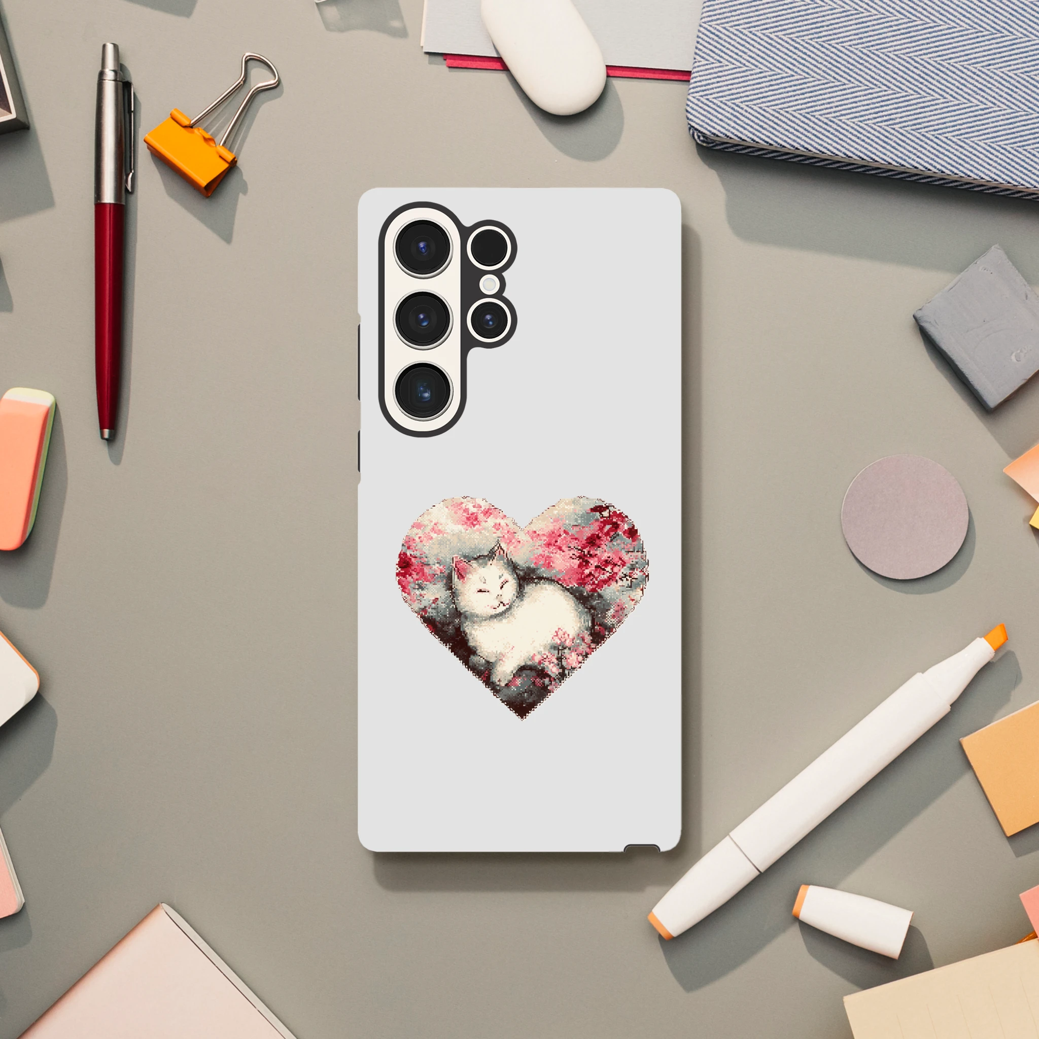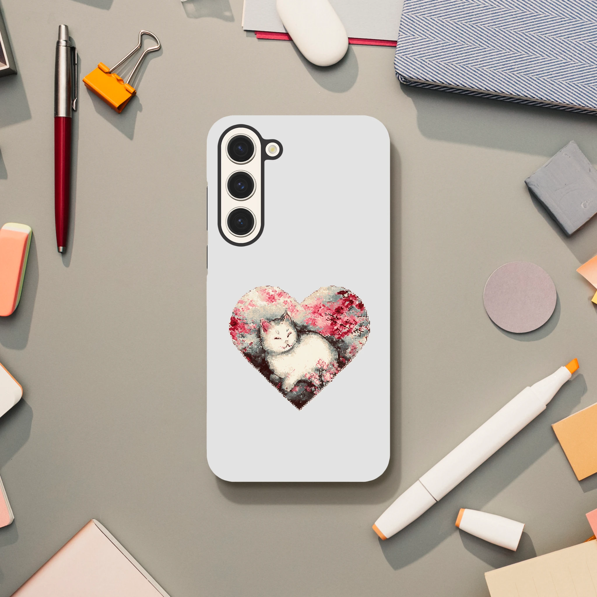 Découvrez la coque de protection pour Samsung Galaxy «Chat pixelisé» qui fait battre les cœurs ! Ce chat, tout en pixels et douceur, ronronne subtilement au creux d’un cœur. Avec lui, votre téléphone est à l’abri des griffures tout en arborant un style félin et fleuri. Un petit compagnon pixelisé pour un quotidien câlin ! Ne résistez pas à l’élégance rétro-miaou qui séduira tous les amoureux de coeurs et de chats. Offrez à votre téléphone l'amour et la protection qu'il mérite avec cette petite merveille de Mimizou. Adoptez-la vite et laissez la magie opérer !