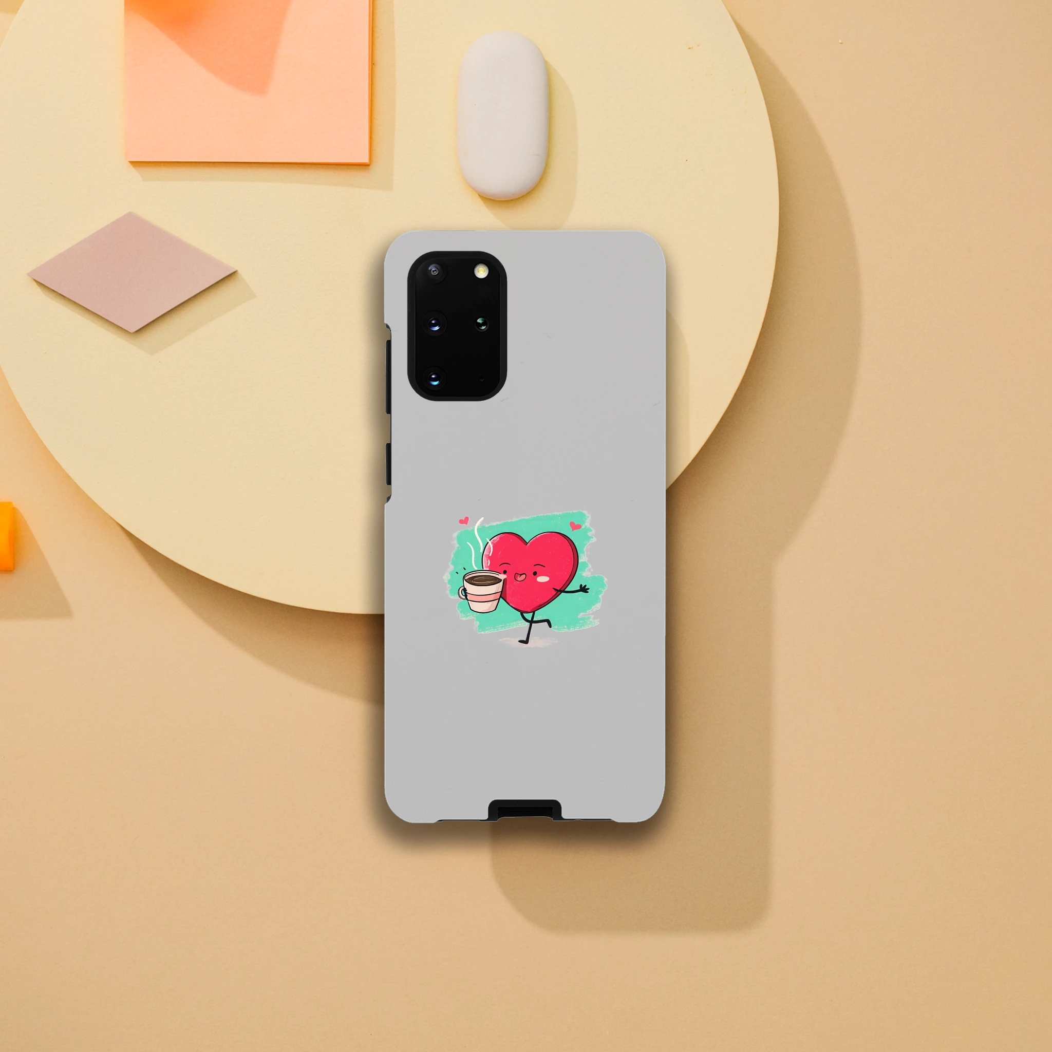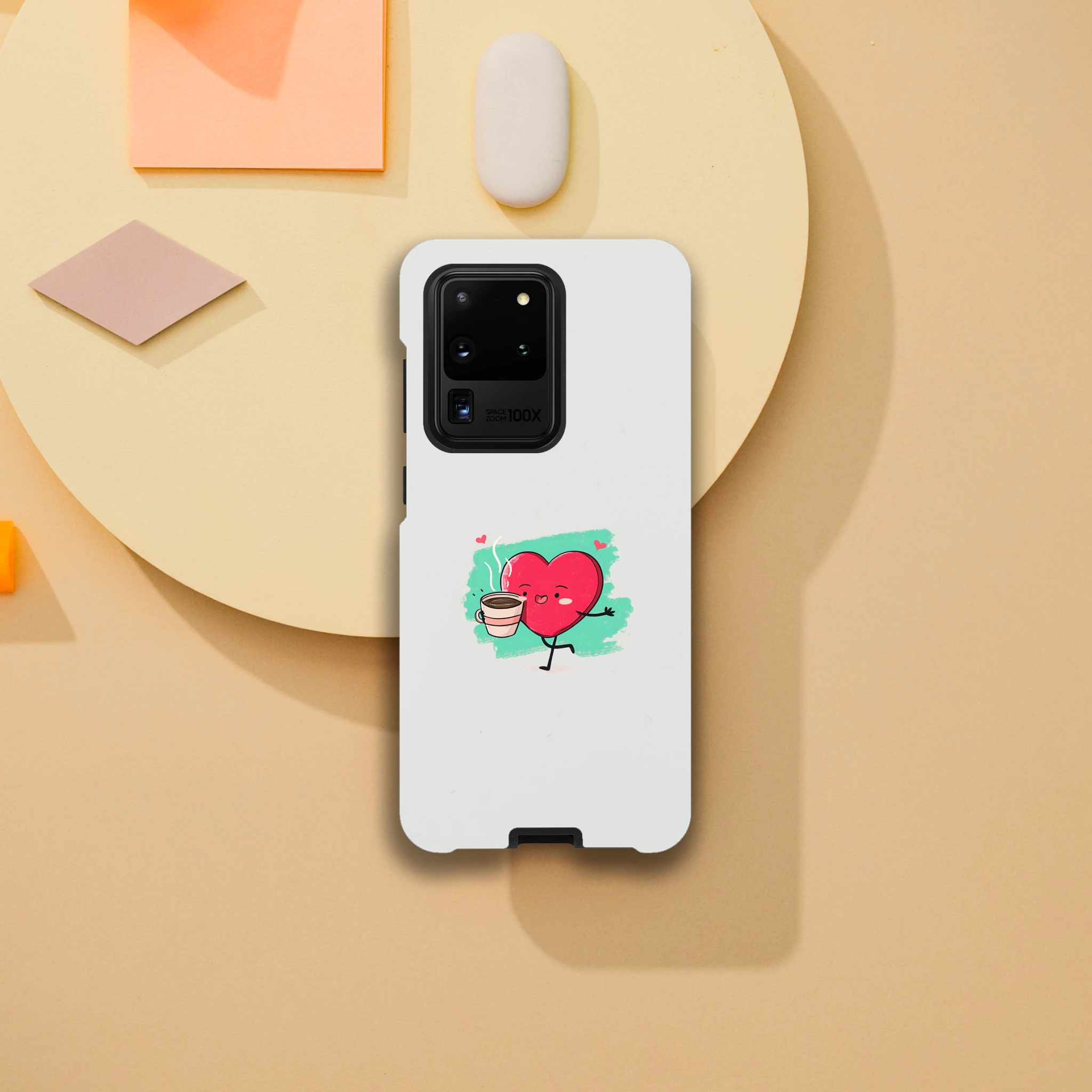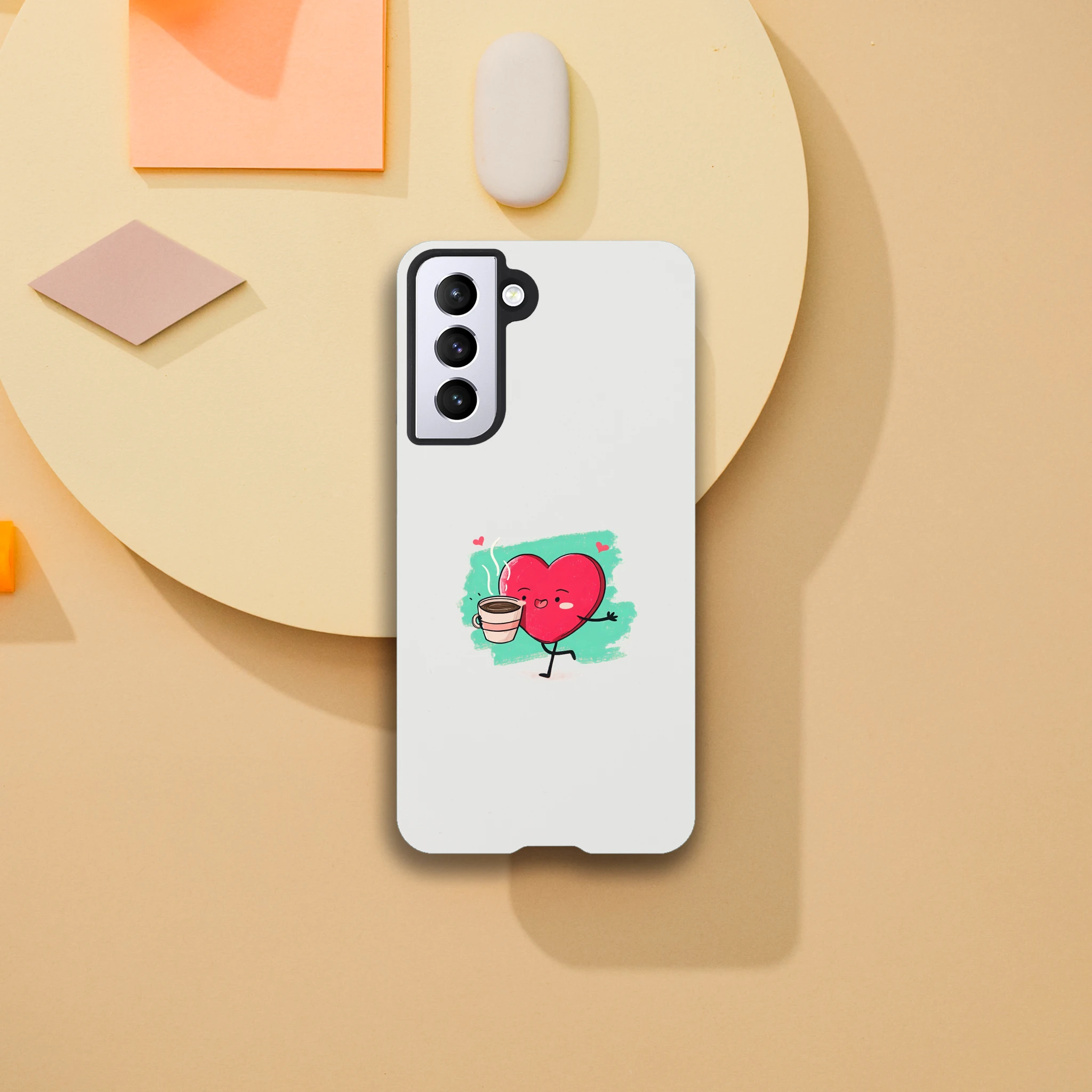 Voici la Coque de protection pour Samsung Galaxy «Cœur buvant une tasse de café» de Mimizou ! Parce que même les téléphones ont besoin de leur dose quotidienne d'amour... et de caféine ! Offrez à votre portable une protection qui ne manque pas de caractère, et surtout, d'humour. Avec ce cœur joyeux, vous serez prêt à affronter toutes les journées, même les lundis matin ! Enfilez cette coque et laissez votre téléphone savourer chaque instant. Avec Mimizou, transformez vos gadgets en véritables accros au café et fans de tendresse !