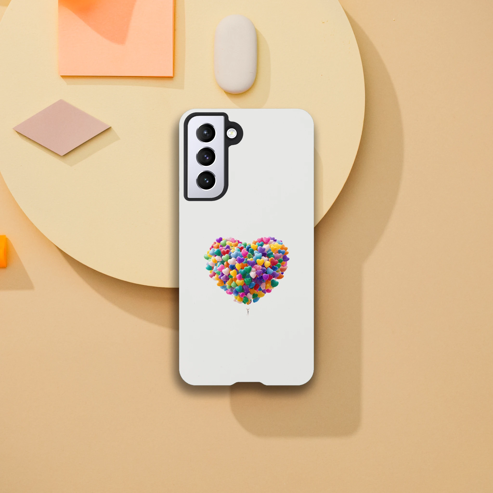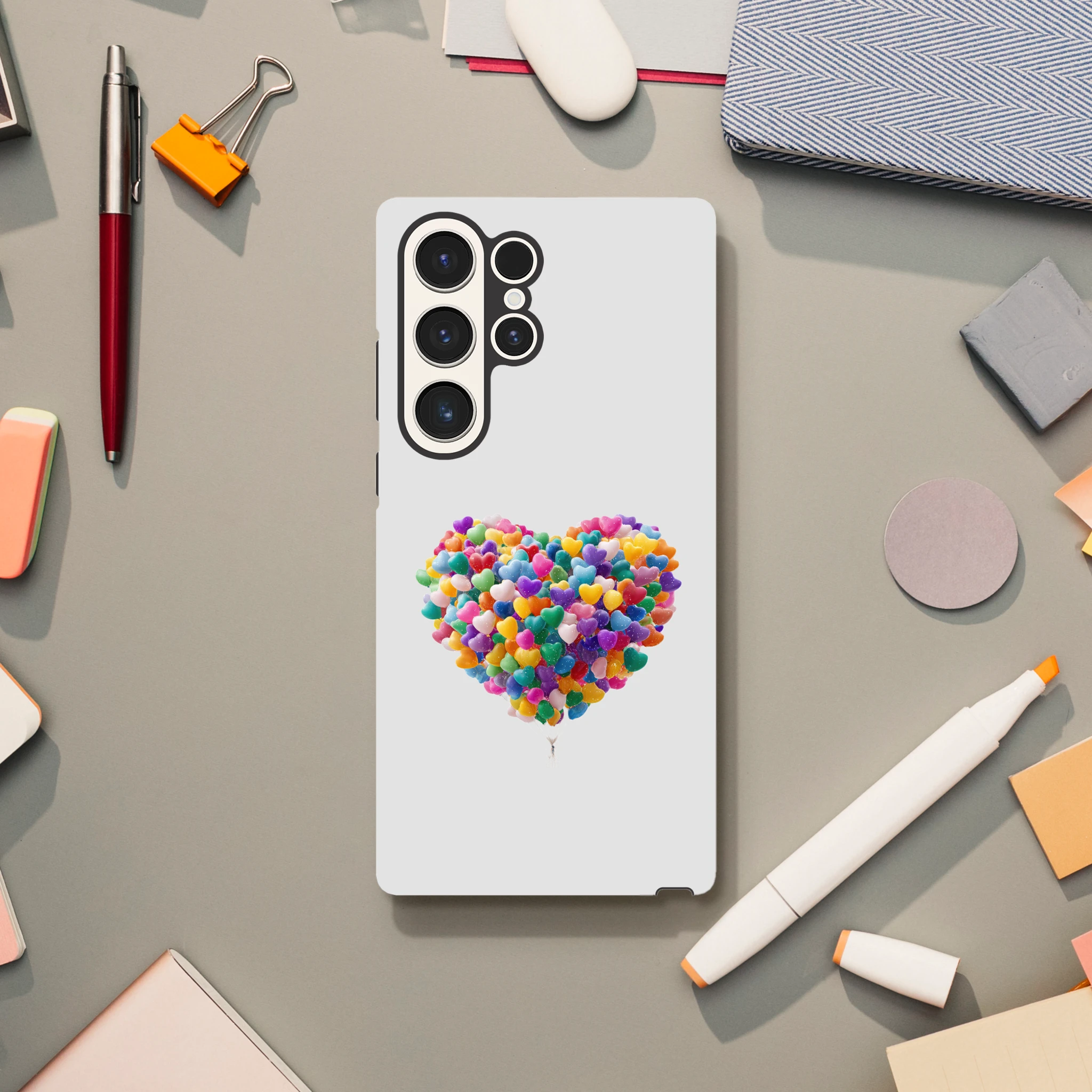 Glissez votre Galaxy dans un nuage de tendresse avec notre coque « Cœur en ballons multicolores ». Un tsunami de cœurs gonflés d'amour vous assurera une protection « haut en couleur » et pleine de douceur. Attention, risque élevé de porter un sourire éclatant chaque fois que vous attrapez votre téléphone ! Nos ballons ne s’envolent pas, mais ils propulsent votre style au septième ciel. Adoptez ce bouquet virevoltant pour un quotidien plus léger. Et qui sait, votre portable pourrait bien tomber... amoureux !