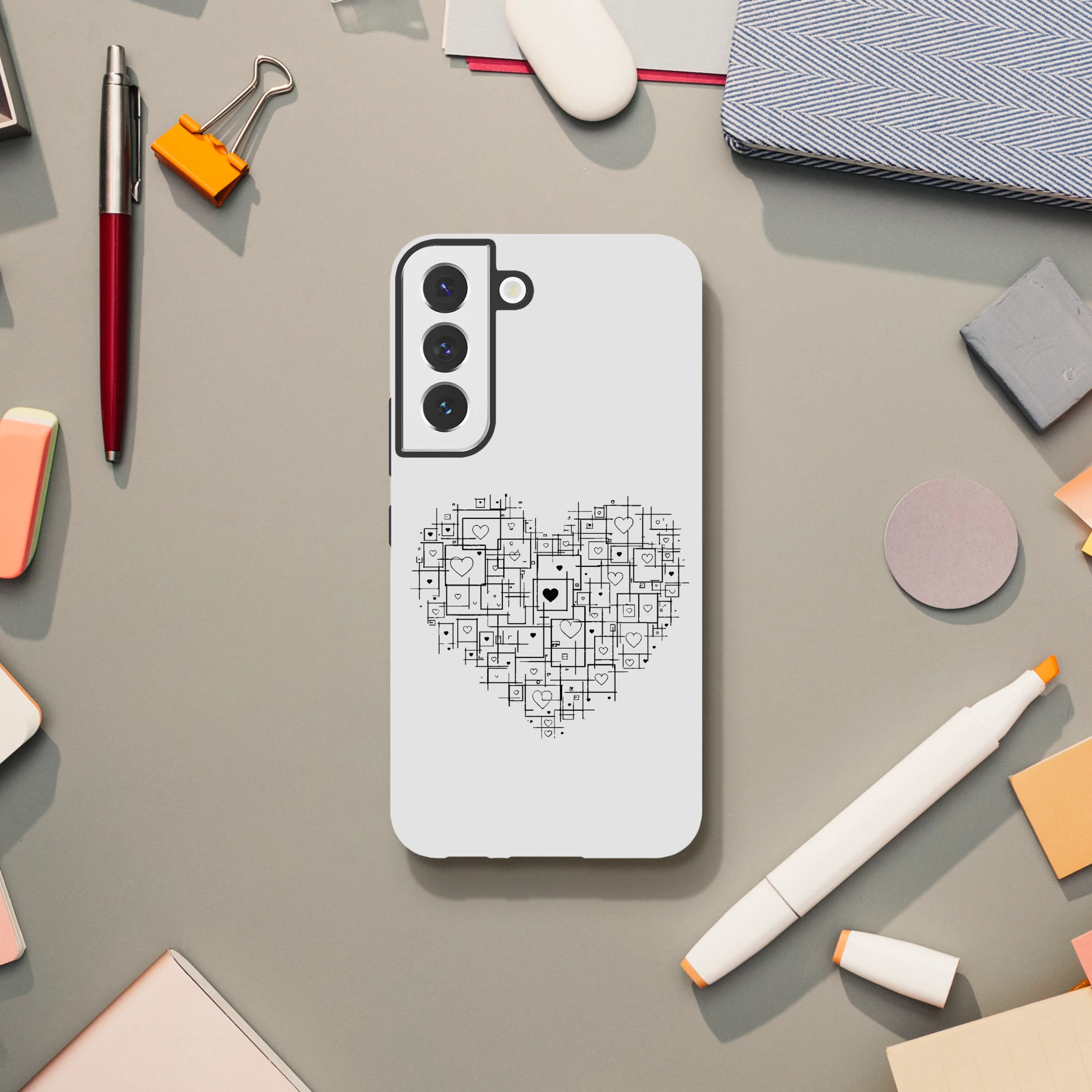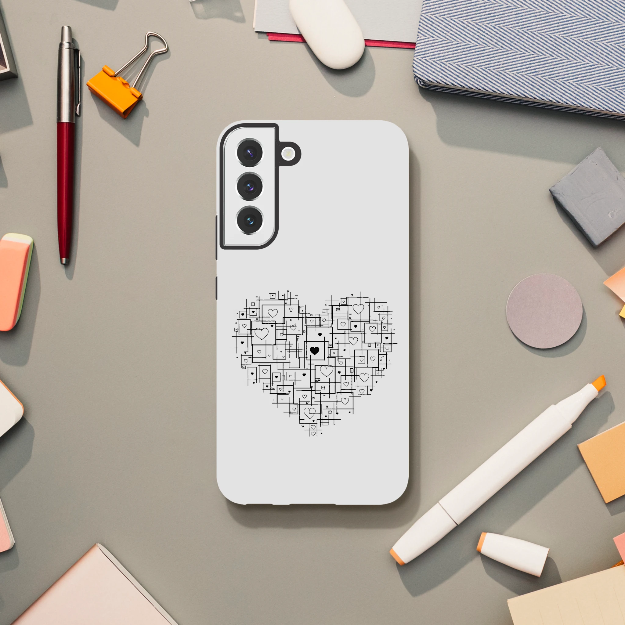 Voilà la coque qui fait battre les cœurs, tout en géométrie raffinée ! Découvrez la « Coque de protection pour Samsung Galaxy “Cœur en carré” » de Mimizou, où le cœur bat en symétrie parfaite. Protégez votre téléphone avec panache, parce qu’un carré fait de cœur, c’est bien plus qu’une forme ! Aucun nœud dans ce cœur, mais attention aux coups de cœur ! Idéale pour ceux qui voient la vie en formes et amour. Mettez votre téléphone en boîte, mais gardez l’amour bien dans le cadre. Allez-y, carrément !