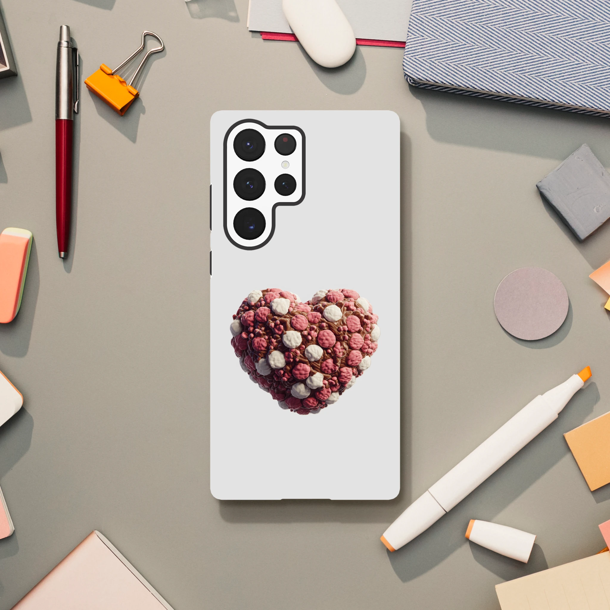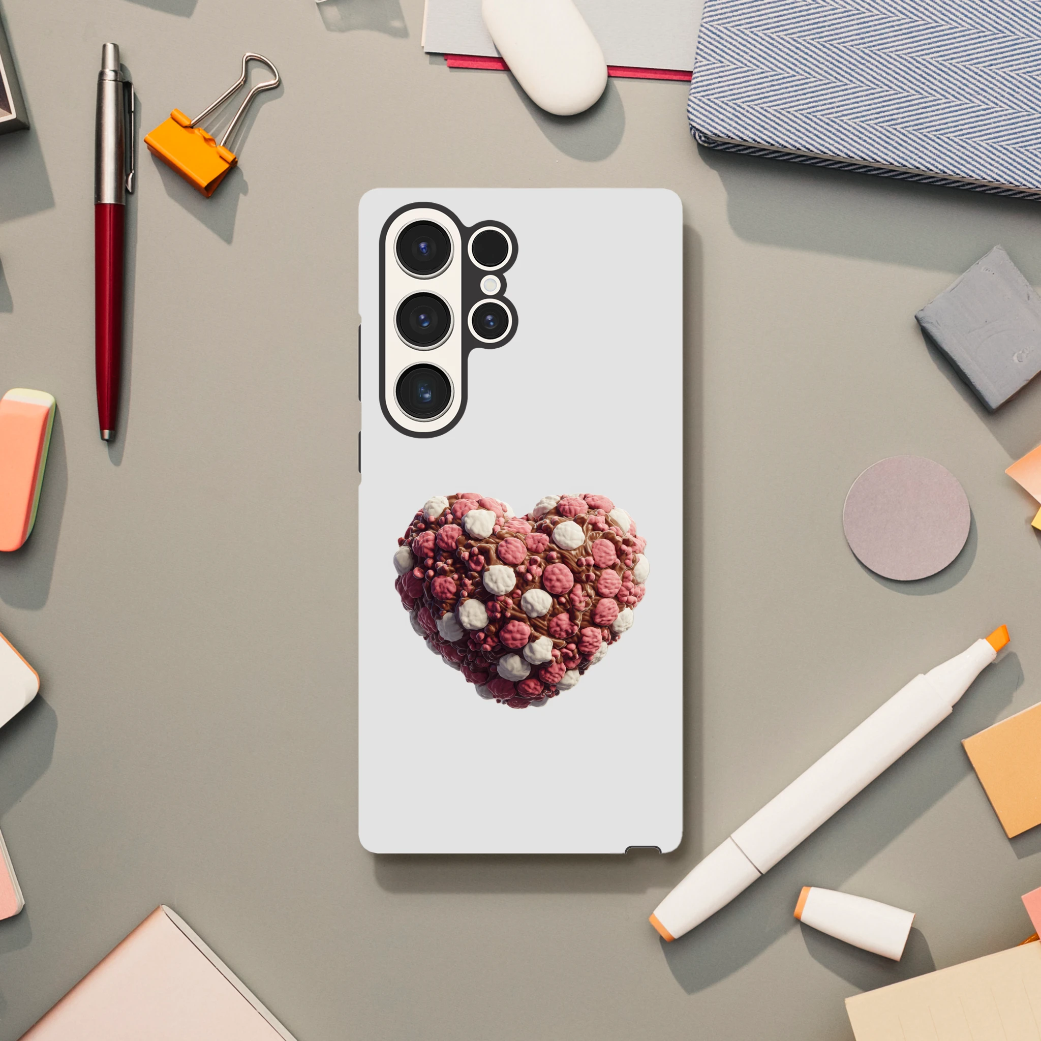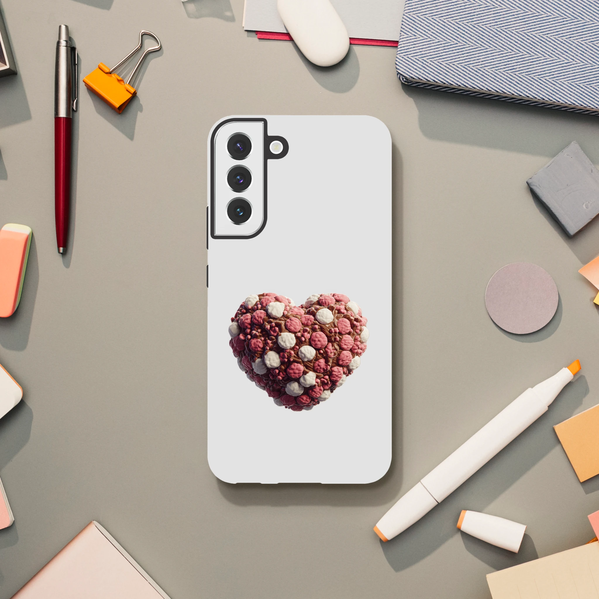 Éveillez l’appétit de votre Samsung Galaxy avec la coque « Cœur en guimauves et chocolat » ! Fini les dilemmes entre gourmandise et technologie, votre téléphone sera à croquer, sans calorie ! Enrobez-le d’amour chocolaté et de douceur guimauvée pour des « Oh ! » et des « Ah ! » garantis. Craquez pour un mélange de tendresse et d’élégance, cette coque est l’ingrédient secret pour une journée connectée pleine de sucreries… sans aucune miette ! Exprimez votre cœur délicieusement, tout en protégeant votre précieux compagnon numérique. Bon appétit (visuel) !
