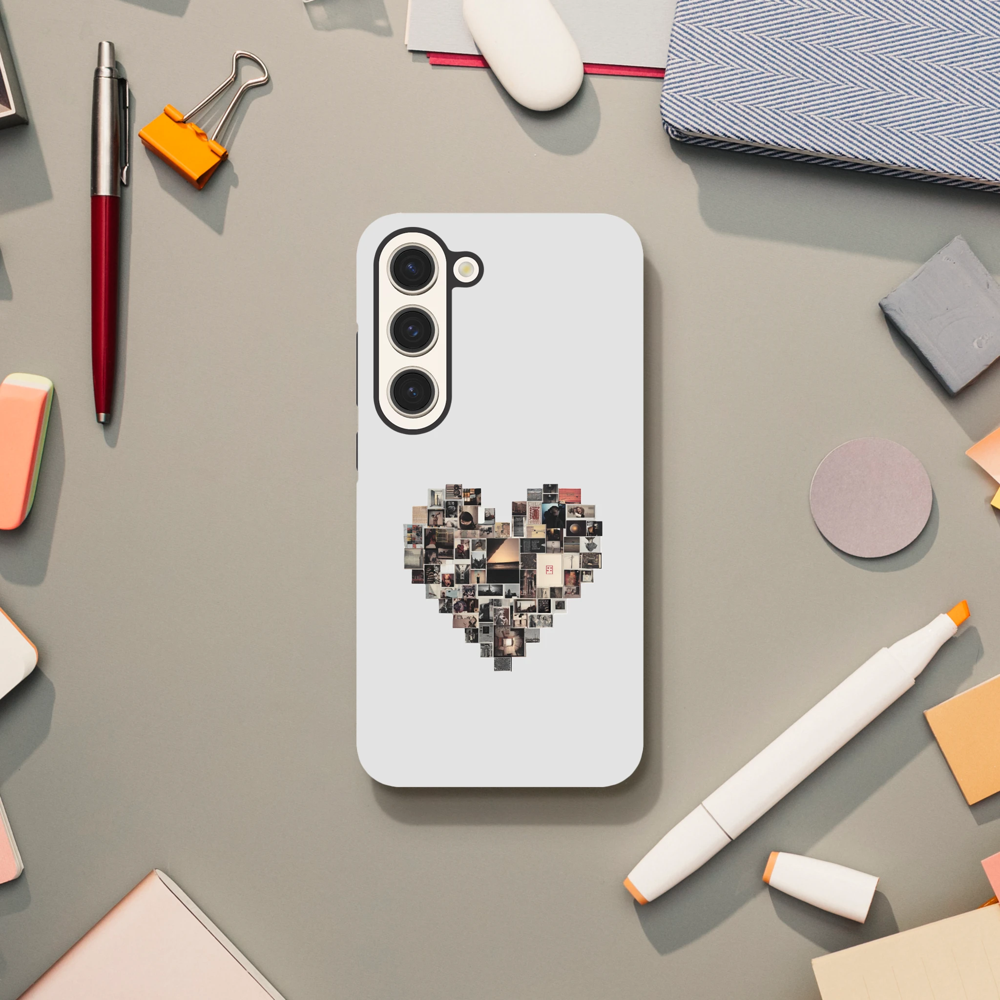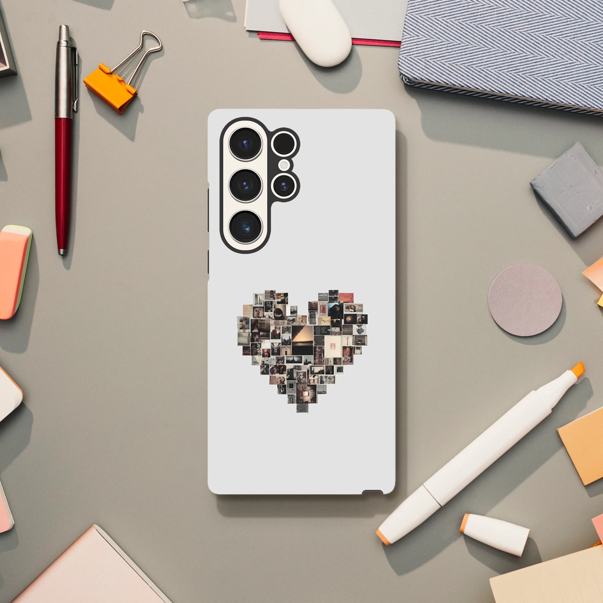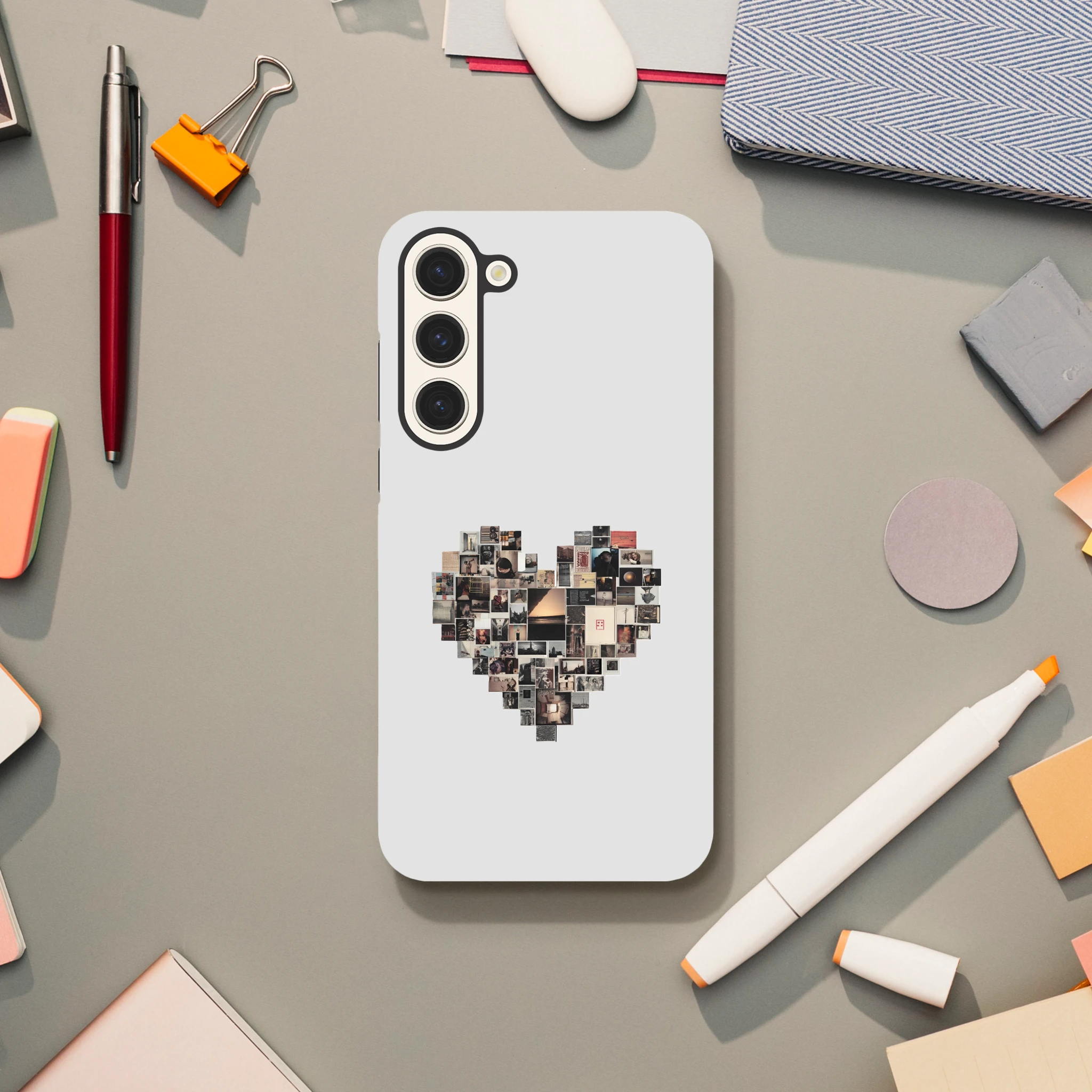 La voici, la coque de protection «Cœur en polaroids assemblés», l'invention géniale qui capture votre cœur et vos souvenirs d'un seul geste ! Protégez votre Samsung Galaxy avec une touche d'amour et de nostalgie. Cette coque est tellement romantique qu'elle devrait être vendue avec un dîner aux chandelles ! Ça vous fera tourner la tête et votre téléphone aussi… mais seulement pour mieux l’admirer ! Alors, pourquoi ne pas offrir à votre téléphone la protection qu’il mérite avec une décharge de charme instantanée ? Affichez votre cœur avec style et humour !