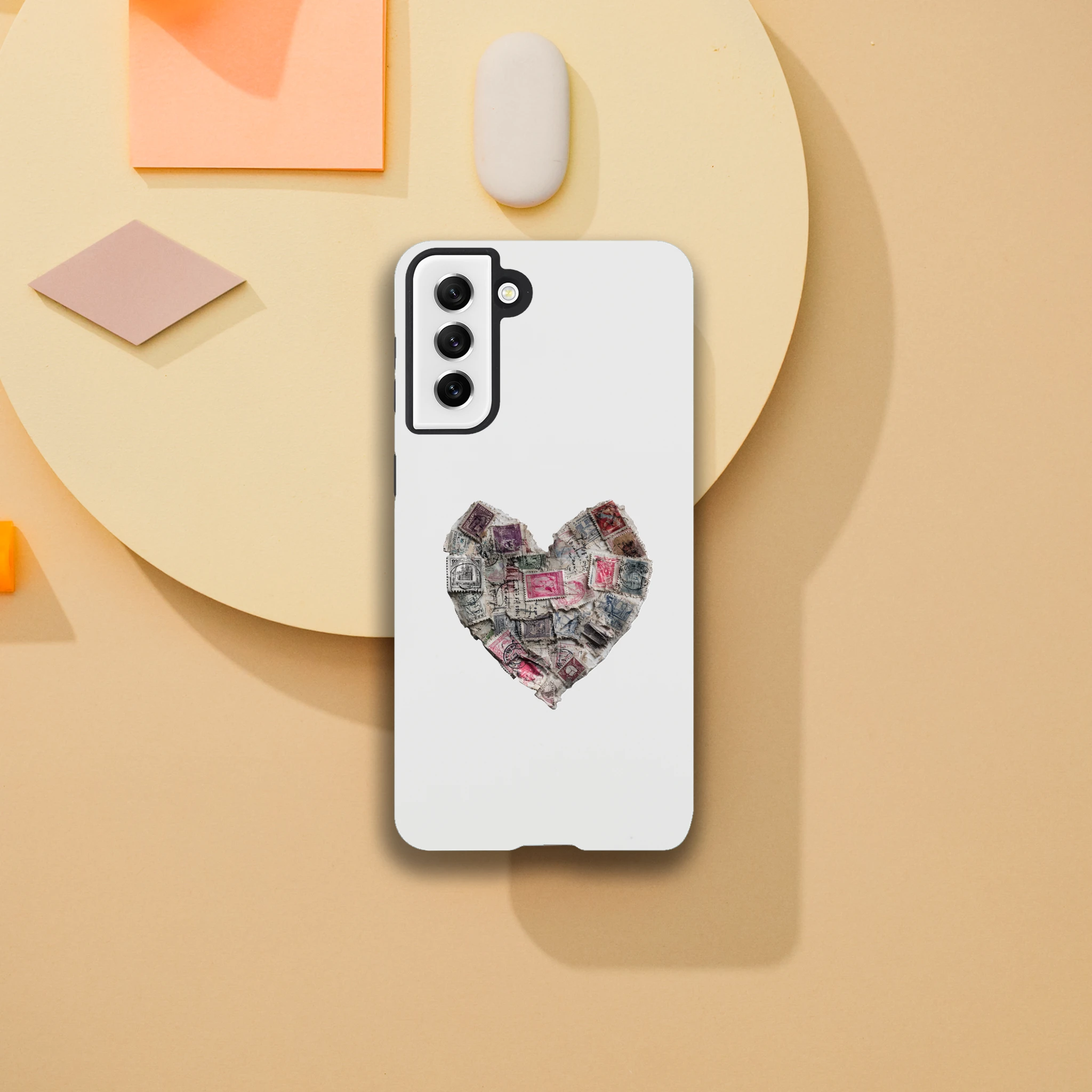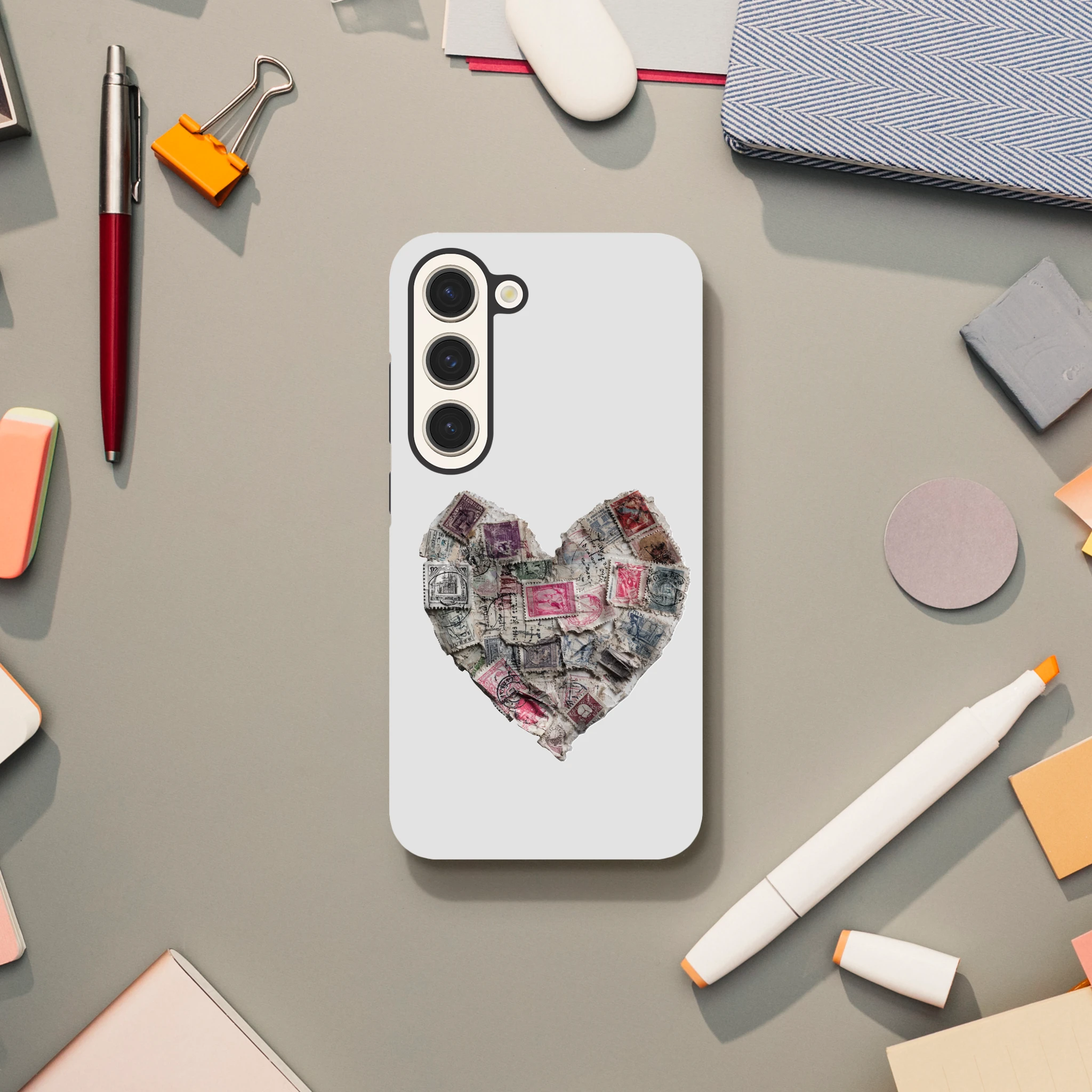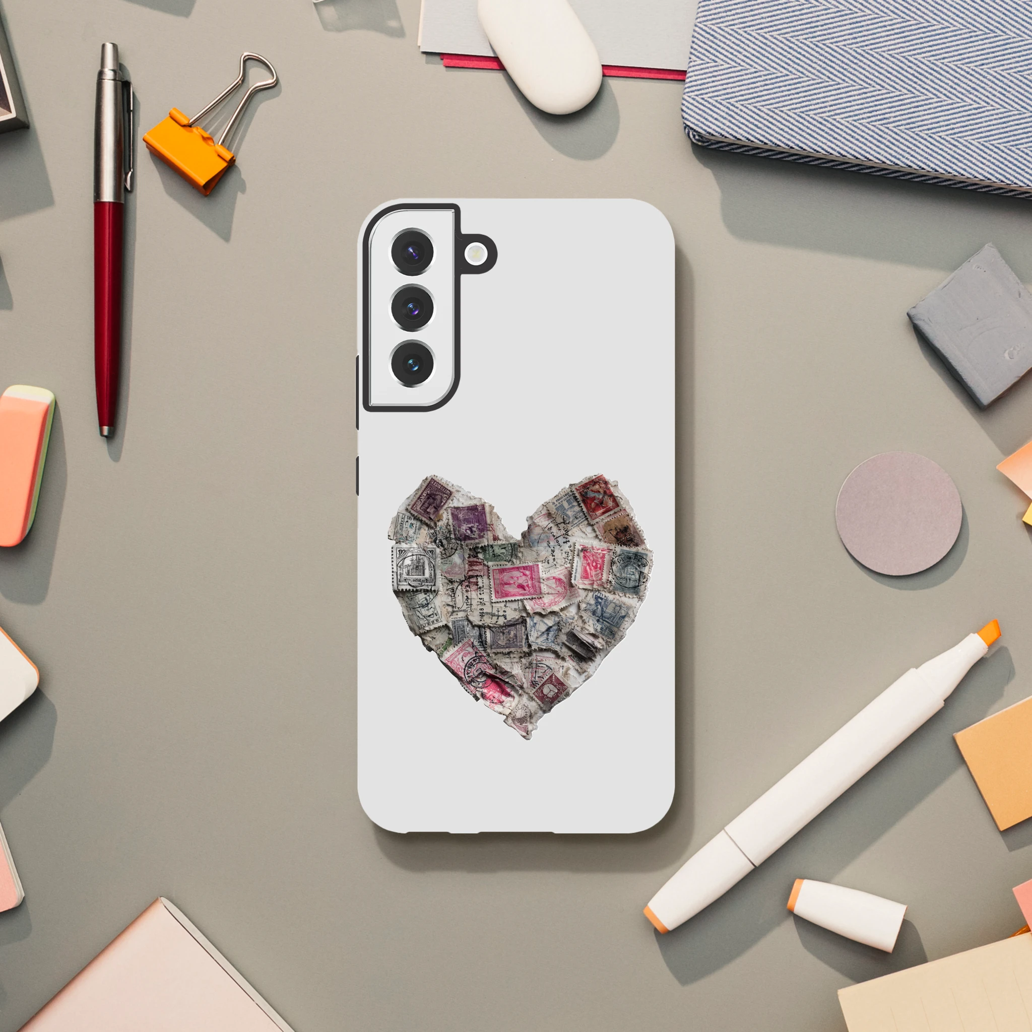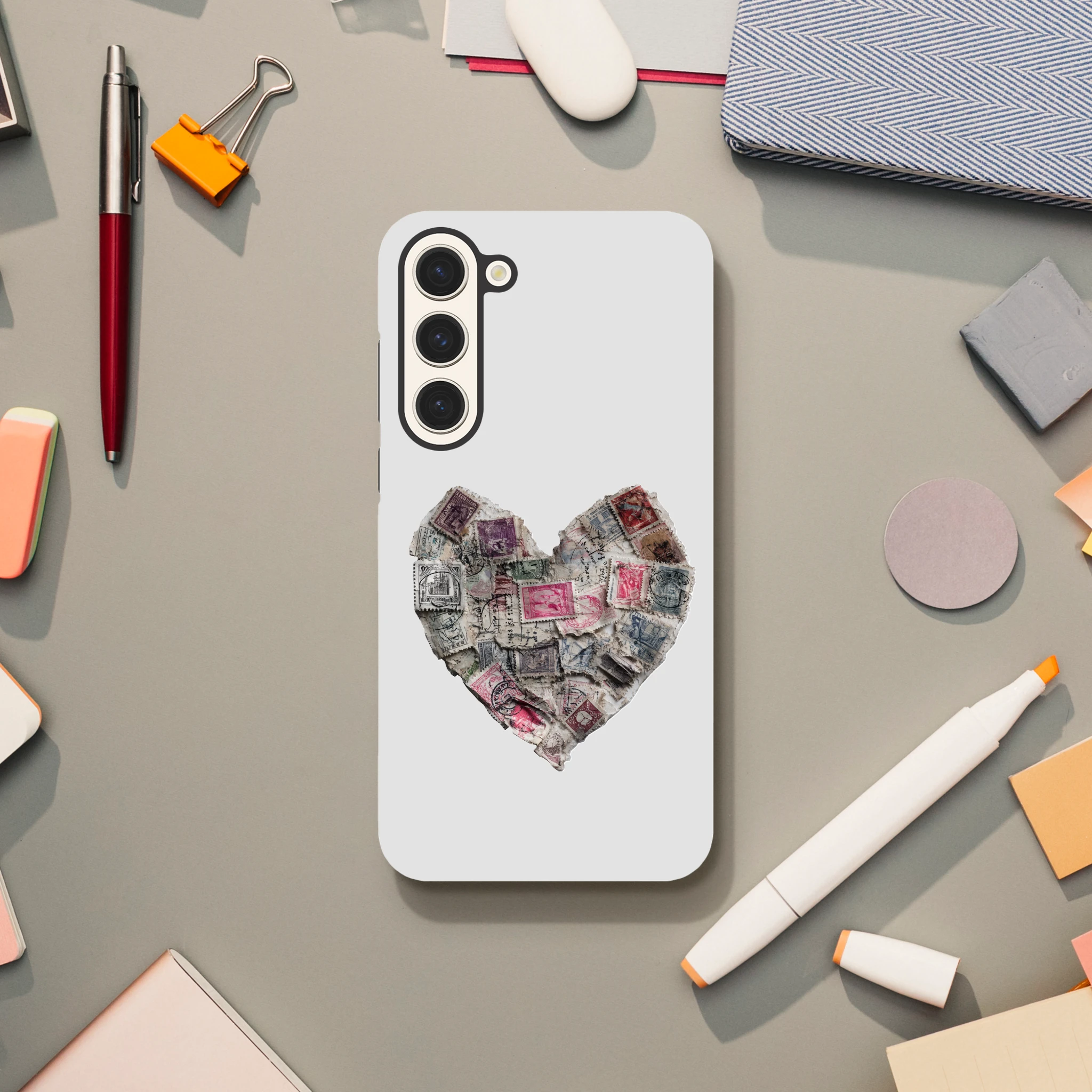 Coque de protection pour Samsung Galaxy «Cœur fait de timbres-poste anciens»