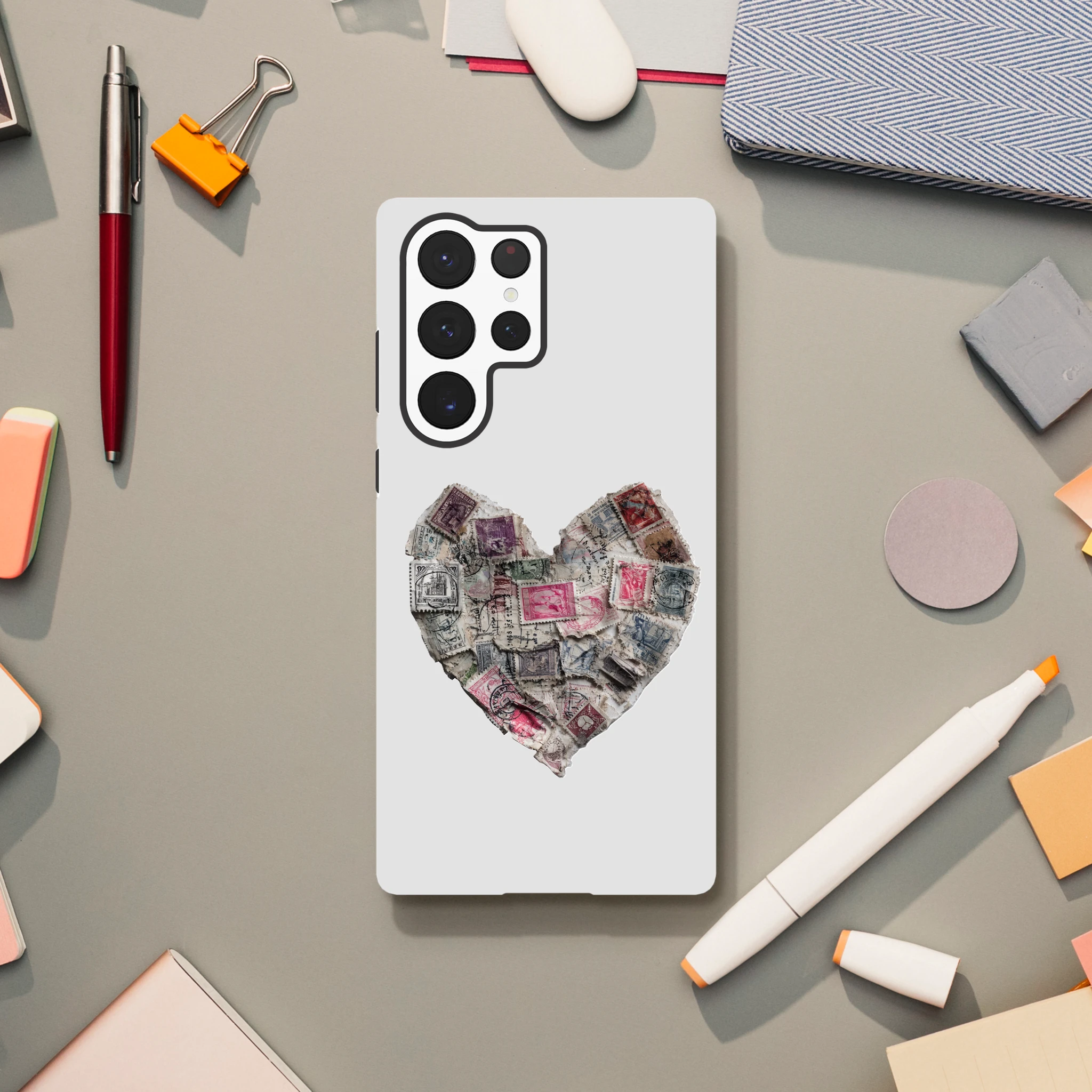 Découvrez notre coque de protection pour Samsung Galaxy « Cœur fait de timbres-poste anciens ». Offrez à votre téléphone une dose nostalgique de romantisme philatélique ! Chaque timbre raconte une histoire, captivant les regards curieux et suscitant des conversations intéressantes. Pas de risques de surcharge pondérale, ces timbres sont en version légère ! Votre Galaxy n'est pas juste protégé, il devient un véritable globe-trotteur du style. Alors, prêt à poster votre amour sur les réseaux ? Adoptez l'amour à l'ancienne avec une touche moderne !