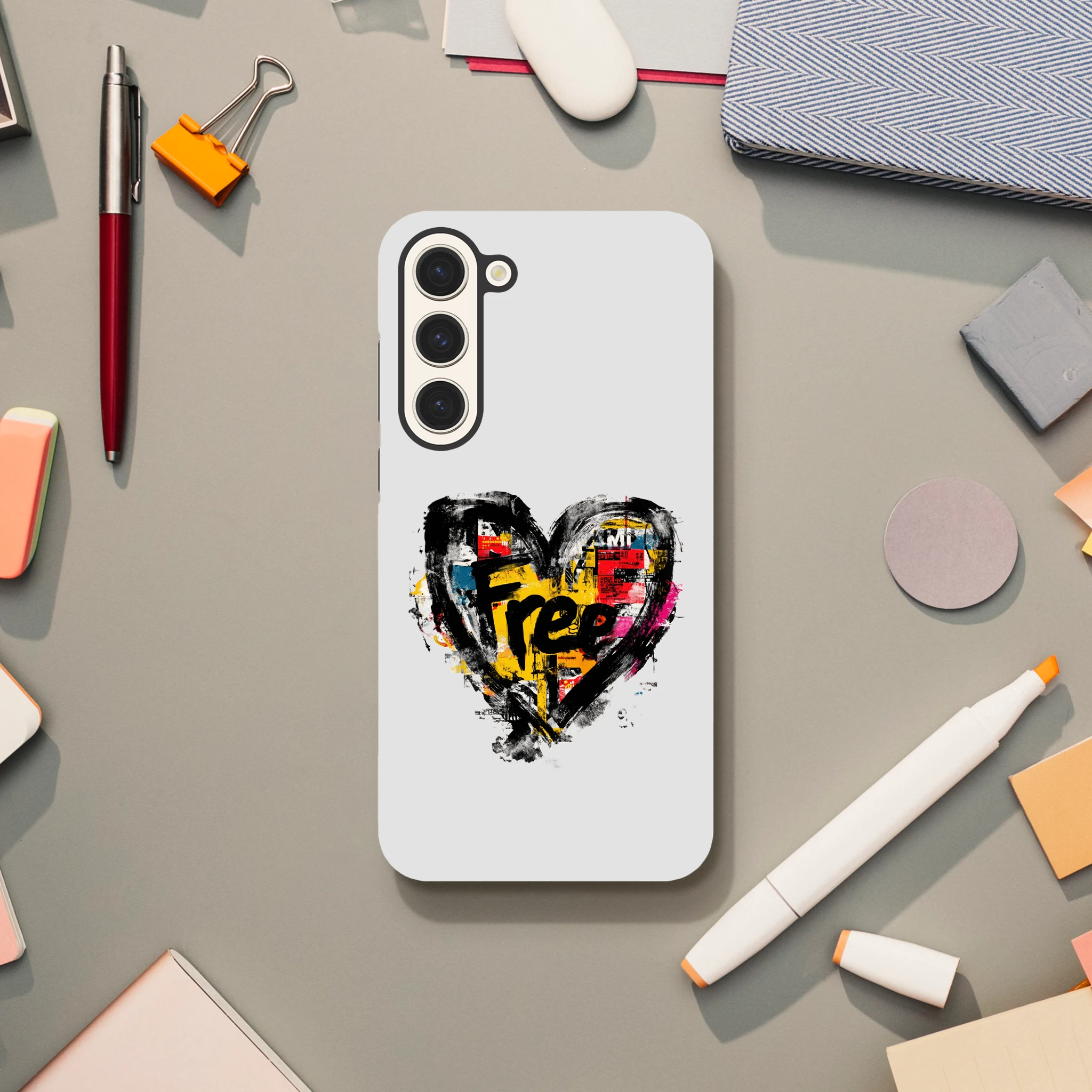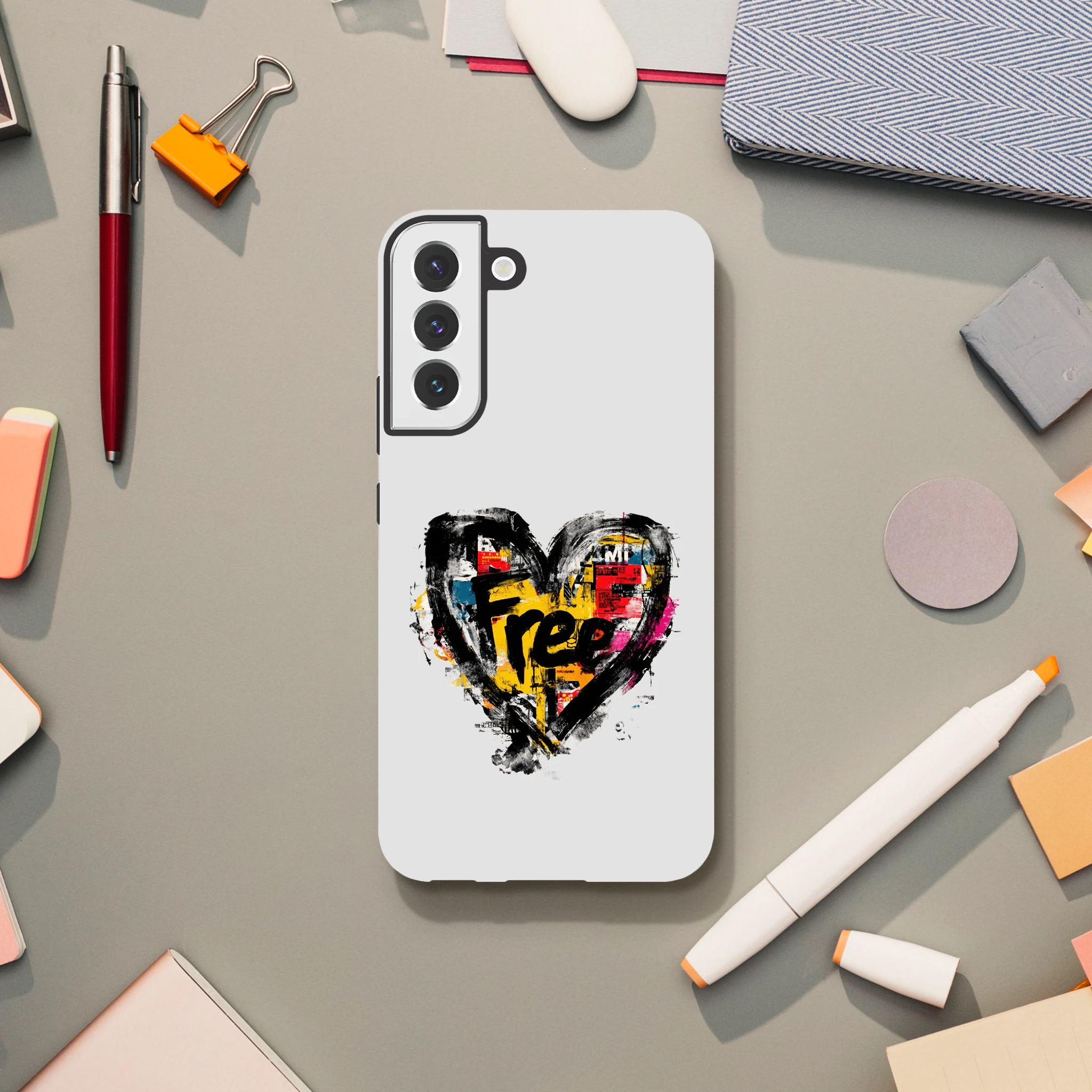 Évadez-vous de l'ordinaire avec notre coque de protection pour Samsung Galaxy «Cœur graffiti avec les lettres 'Free'» ! Enfilez une armure stylée à votre téléphone avec ce design qui vous rappellera que l'amour, ça ne se met pas en cage, même si vous laissez parfois tomber votre téléphone. Ce cœur urbain et artistique captive les regards et protège votre précieux compagnon des aléas du quotidien. Bref, un must-have pour ceux qui aiment avoir le cœur sur la main... ou plutôt, sur le dos de leur téléphone ! Libérez l'artiste en vous et protégez ce qui compte vraiment !