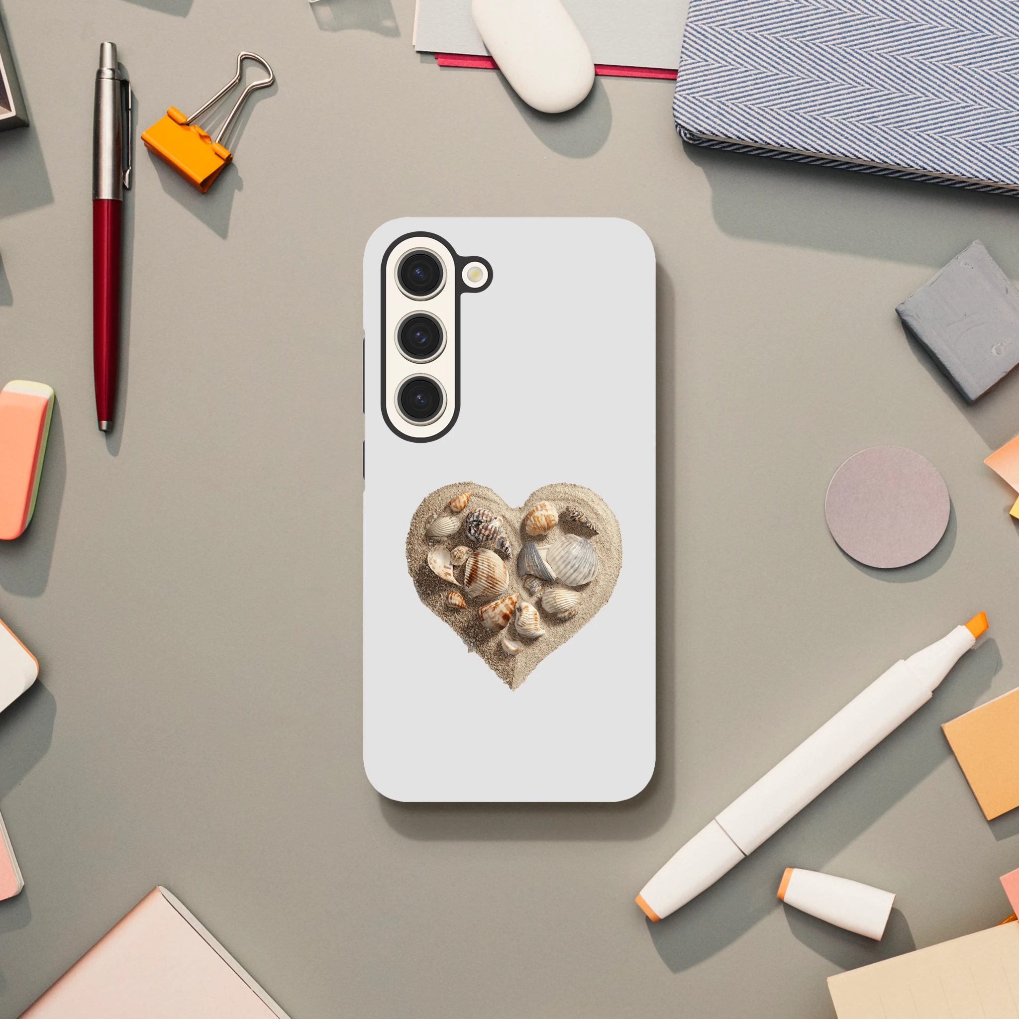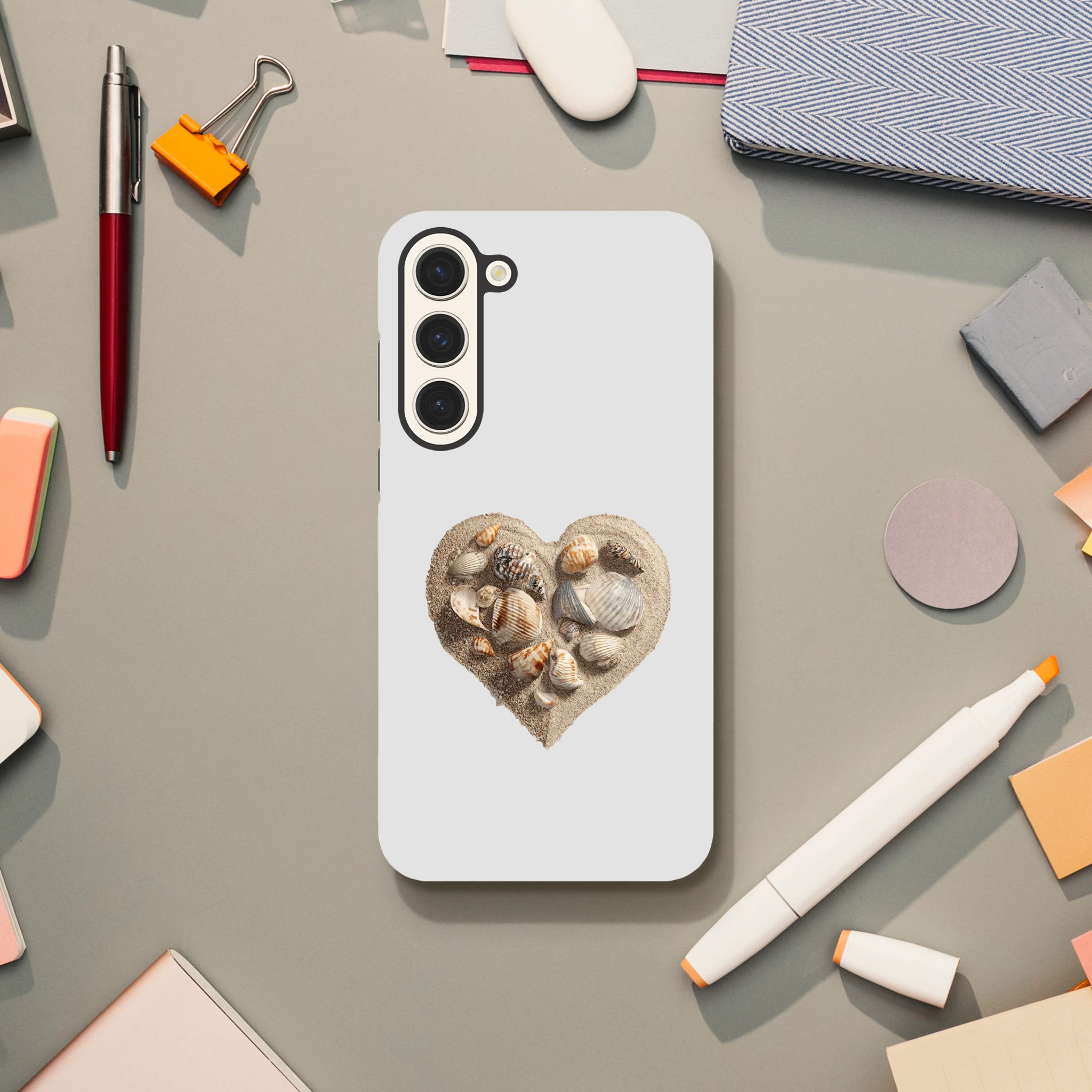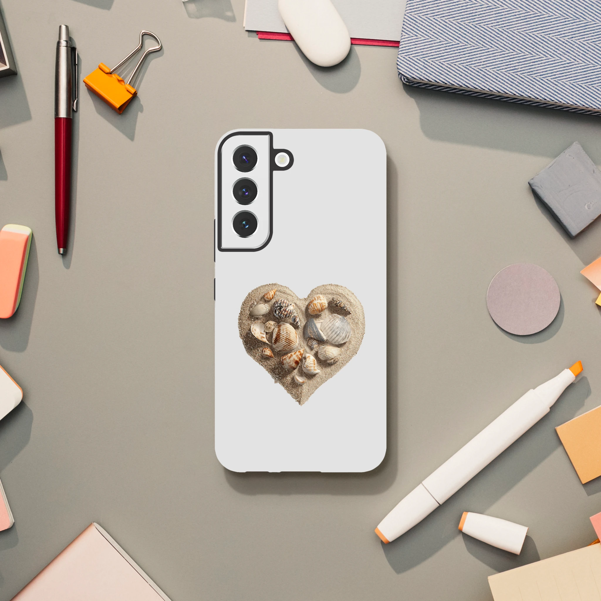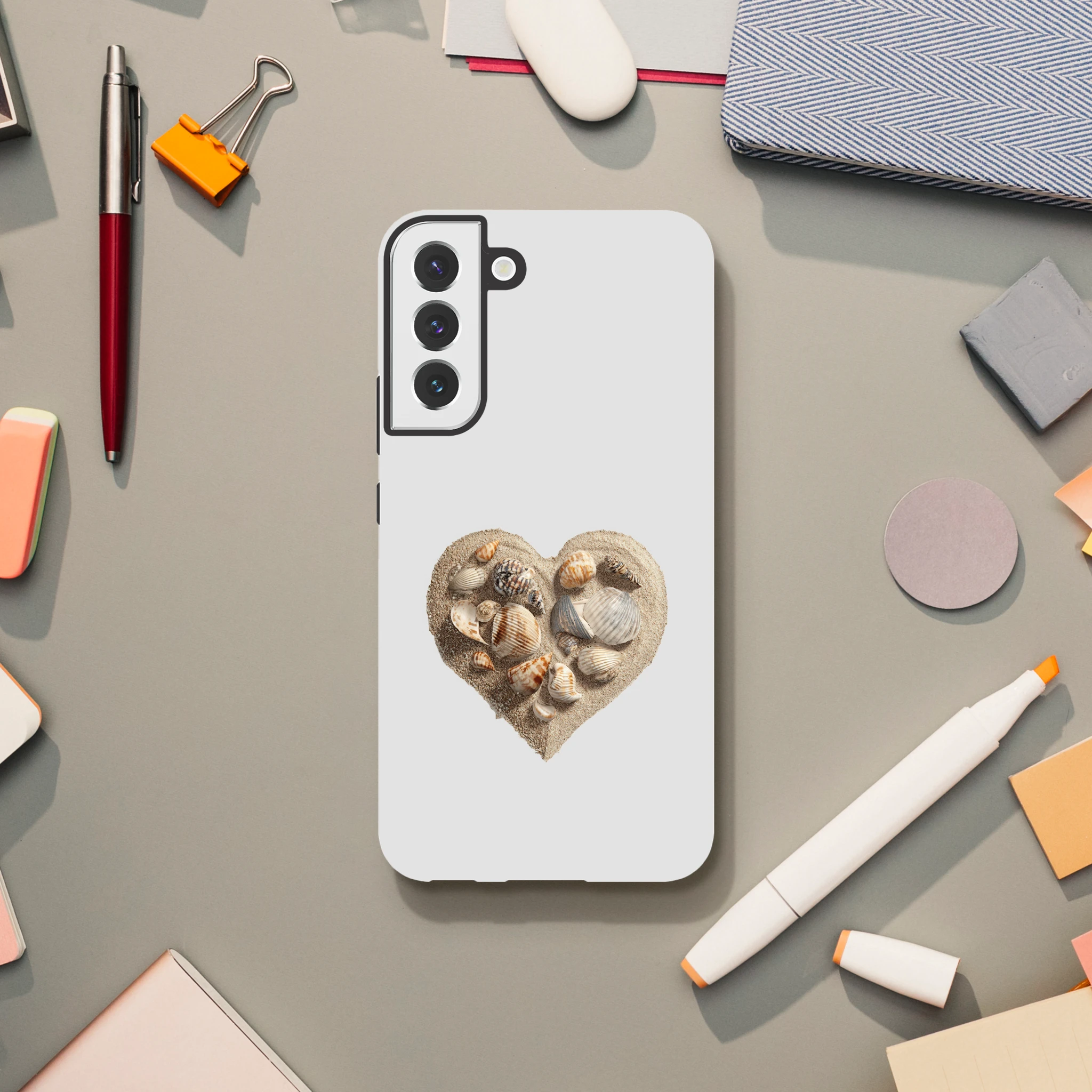 Transformez votre téléphone en une véritable déclaration d'amour avec notre coque «Cœur gravé dans le sable avec coquillages» ! Chaque grain de sable raconte une histoire, et chaque coquillage murmure des mots doux à votre Galaxy. Offrez à votre téléphone la protection qu'il mérite tout en affichant votre passion pour les vacances (même si elles ne sont qu'en rêve) ! Parfait pour les âmes romantiques qui veulent ajouter une touche de poésie à chaque appel. Qui sait, peut-être qu’un coup de fil sur la plage vous attend au bout de la ligne ?