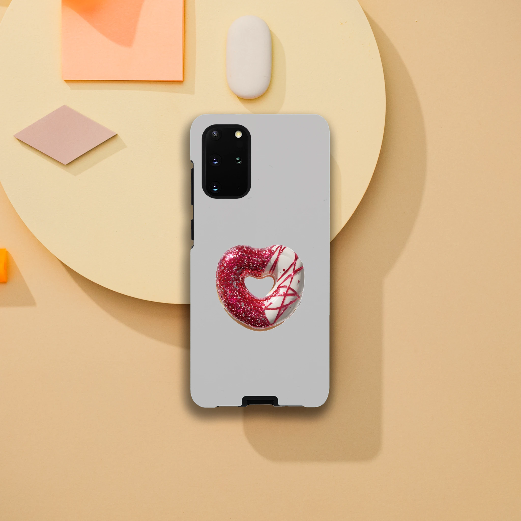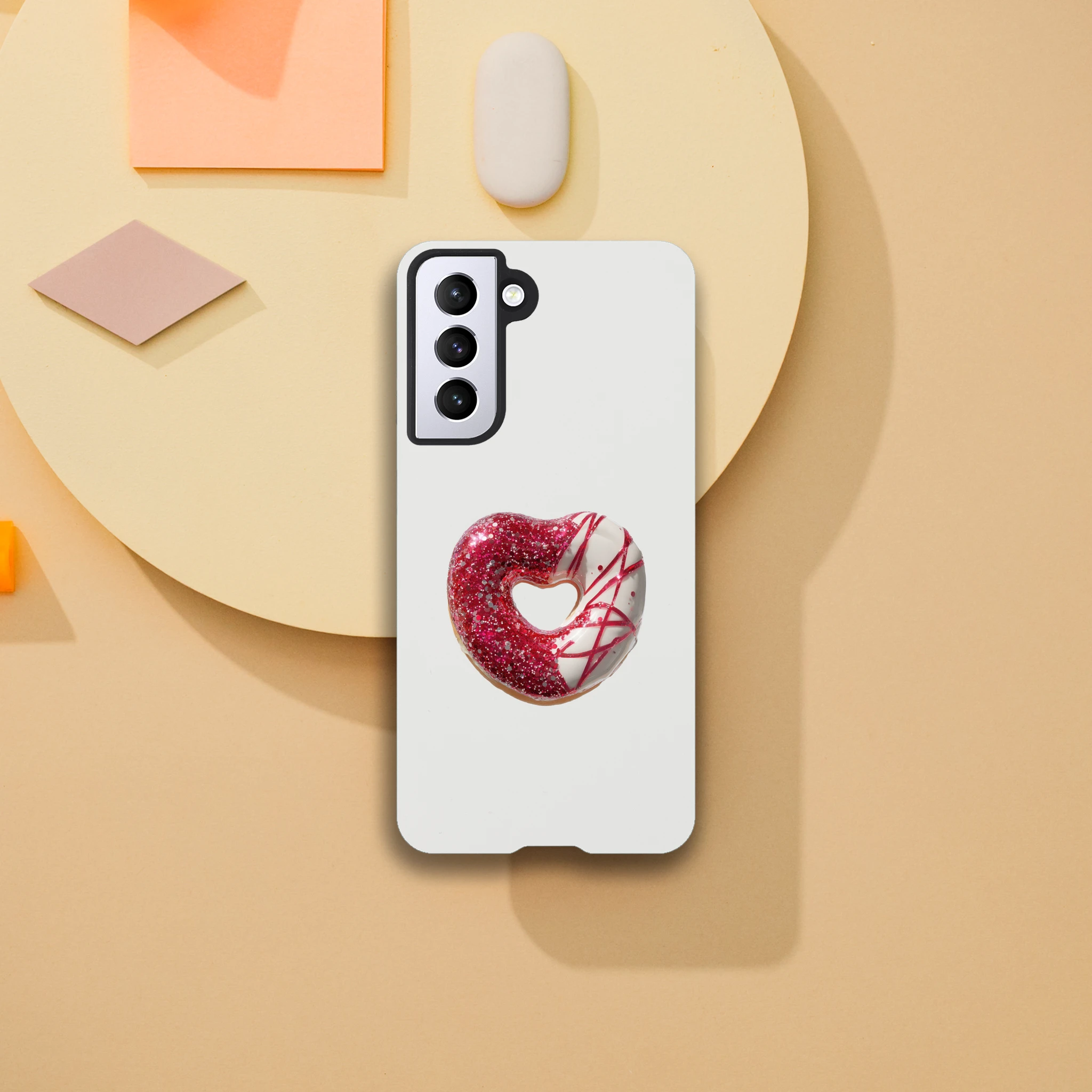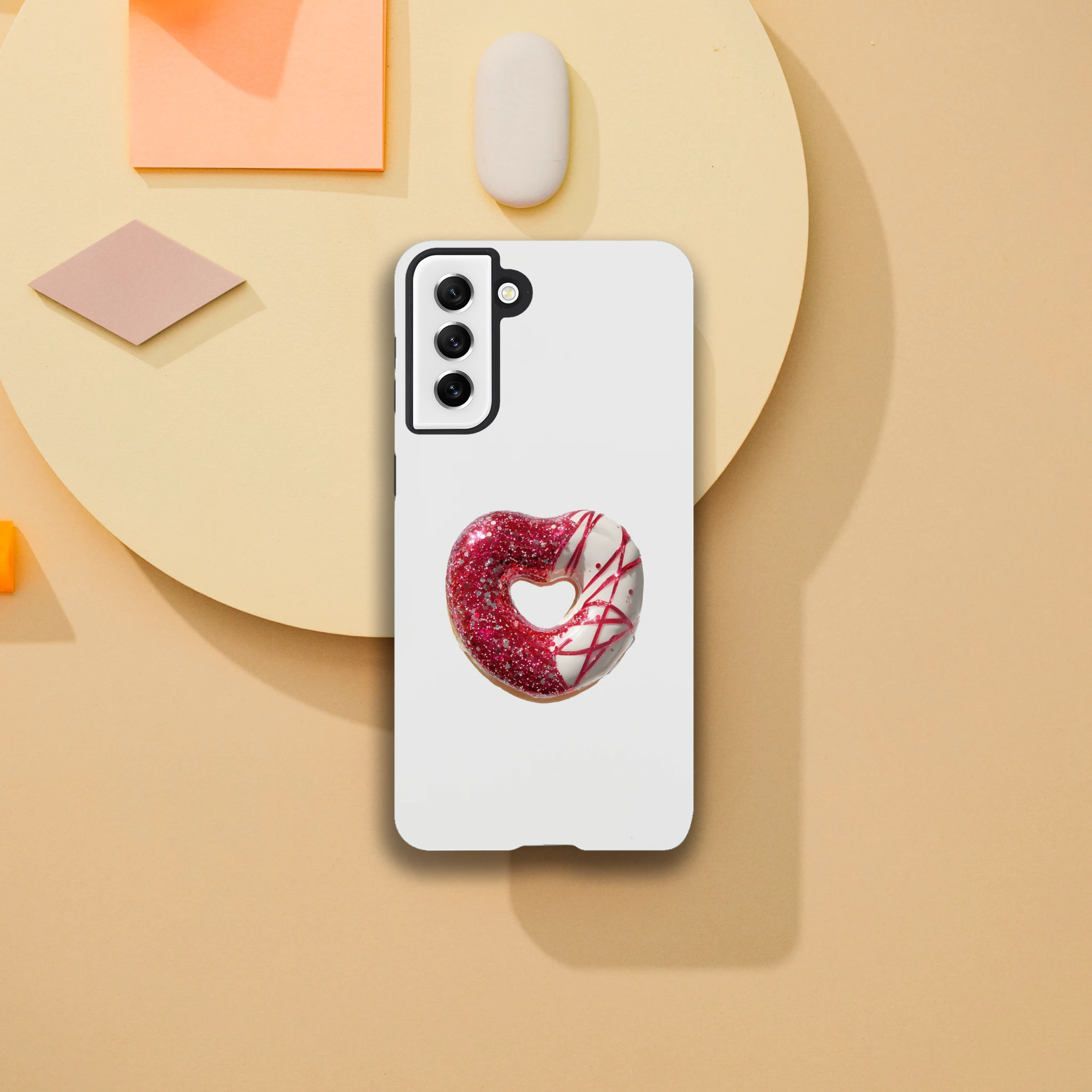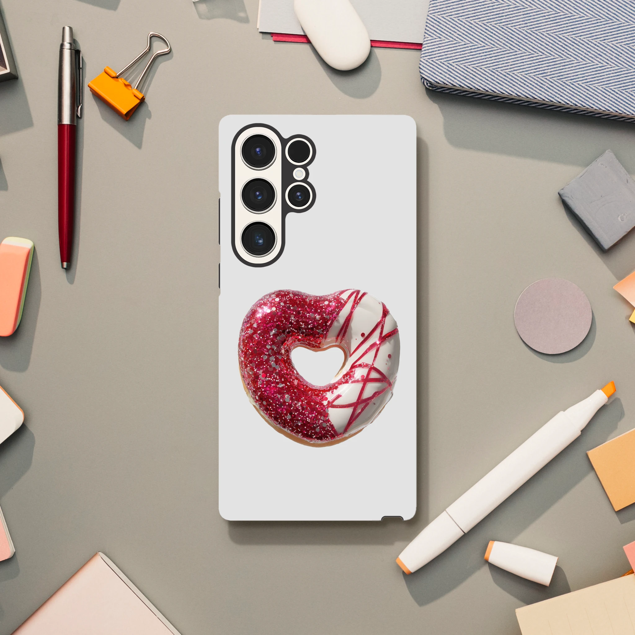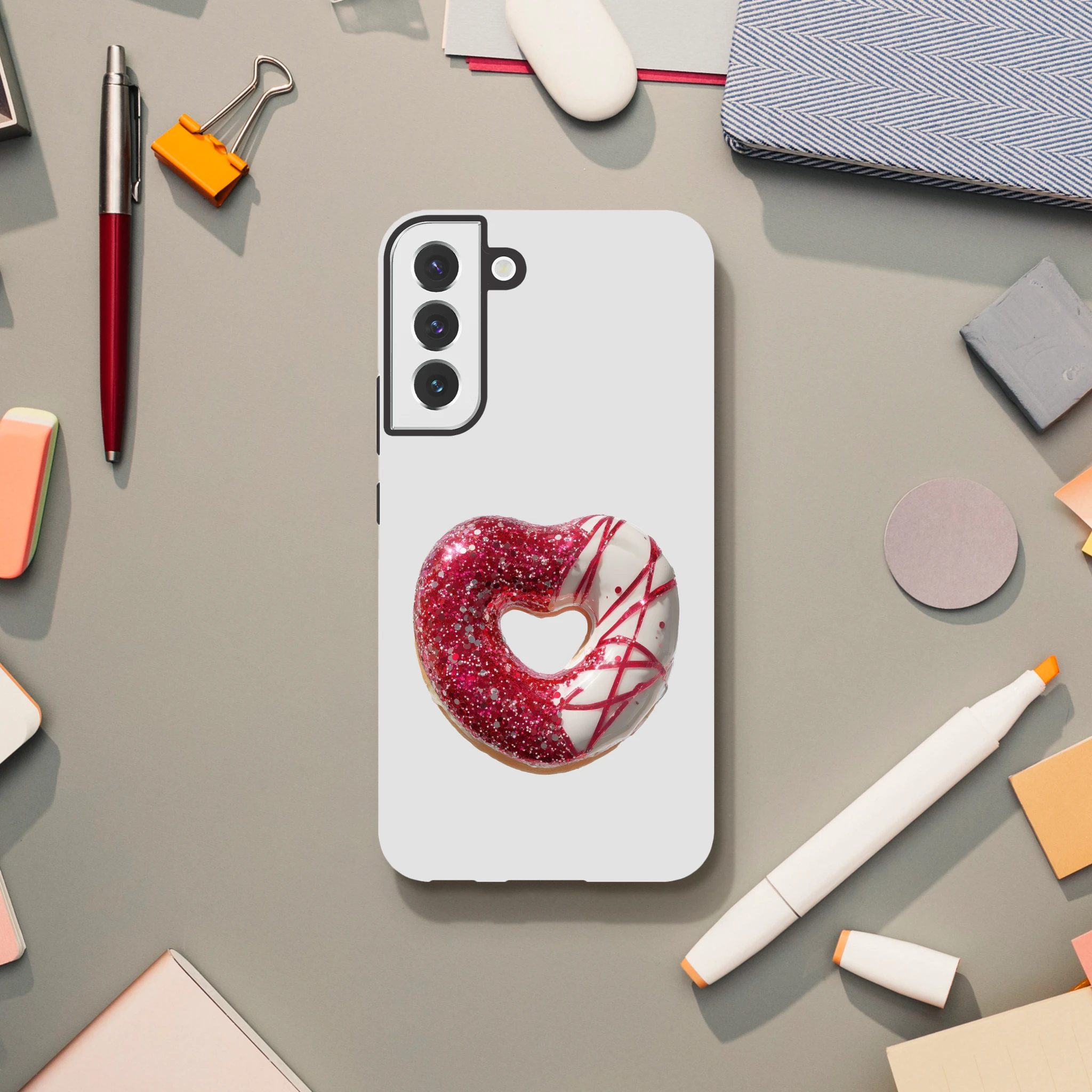 Coque de protection pour Samsung Galaxy «Donut en forme de cœur, glaçage rouge et paillettes»