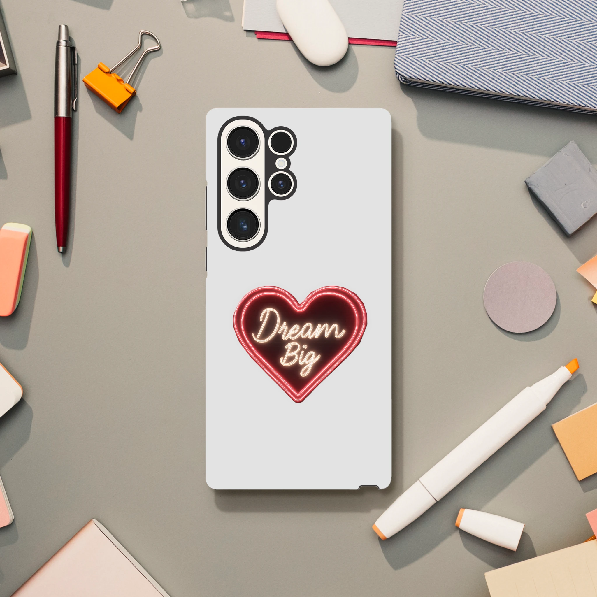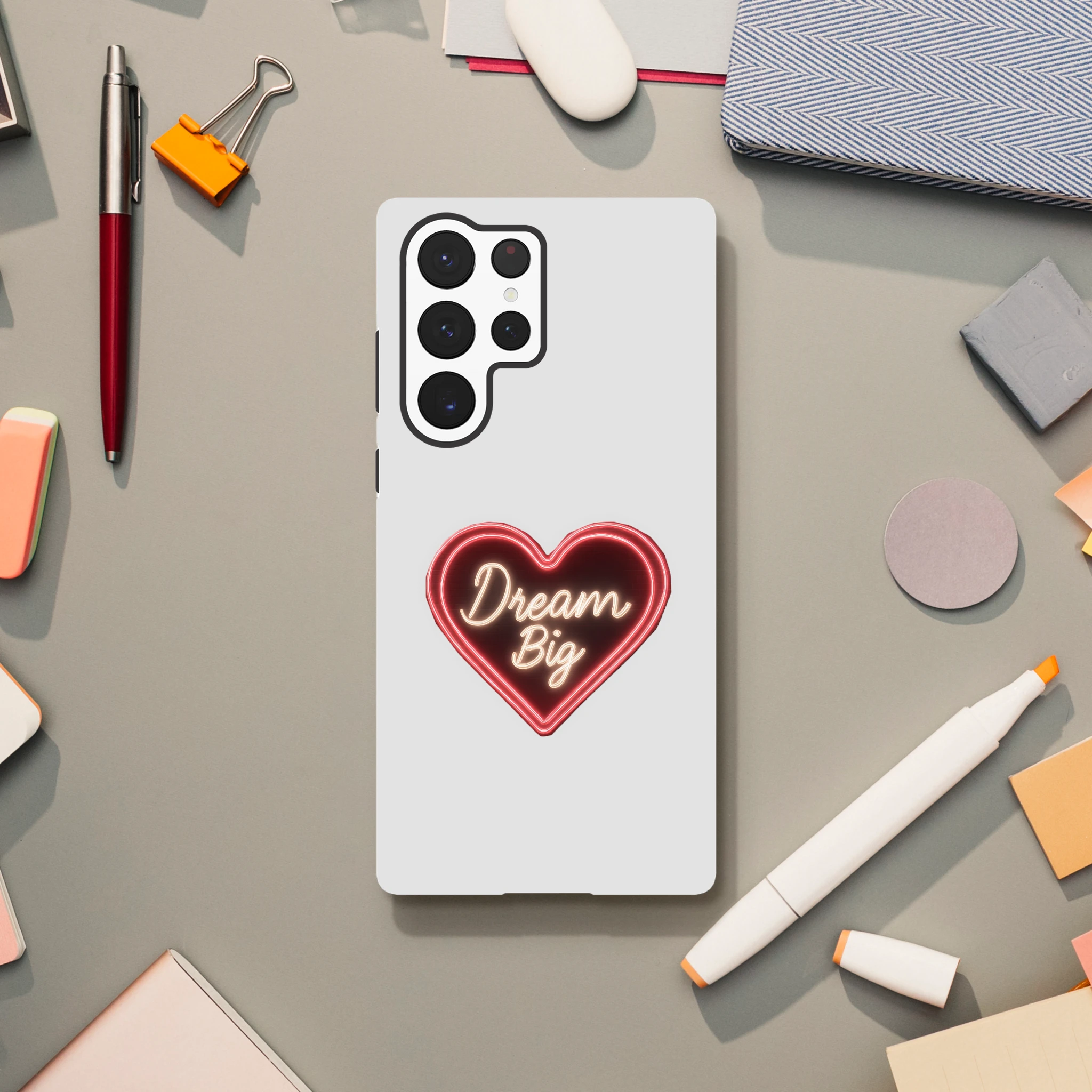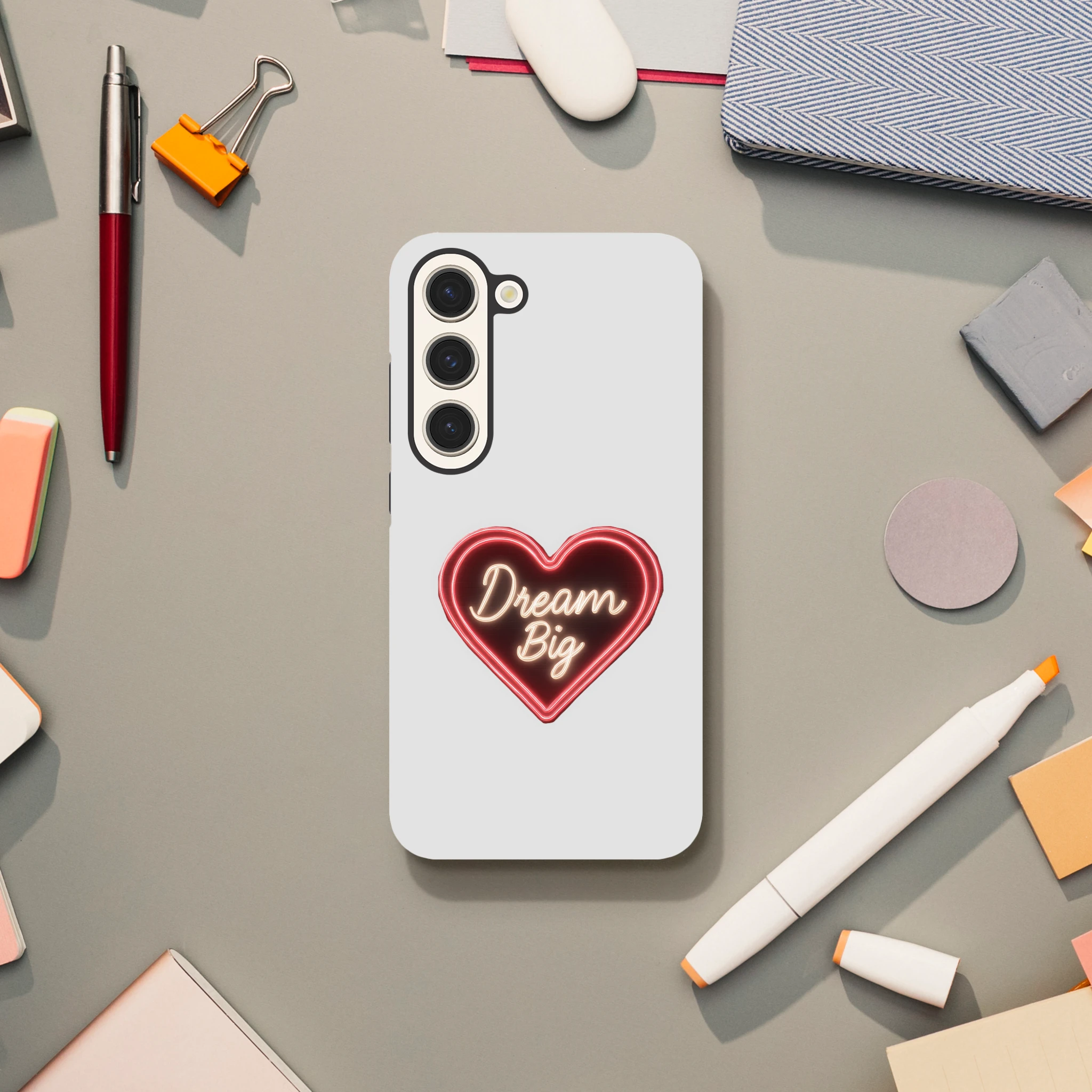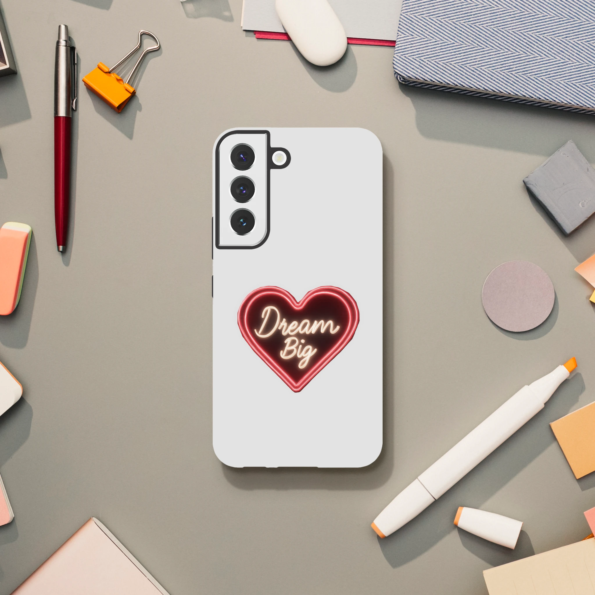 Protégez votre Samsung Galaxy avec style et un soupçon d'audace grâce à notre coque « Dream Big » en néon de Mimizou ! Un cœur qui clignote littéralement « osez rêver » sur votre téléphone… et peut-être aussi sur votre vie amoureuse ? Subtil mais puissant, ce cœur néon illumine vos journées en disant à vos soucis de rester à distance. C'est comme un câlin protecteur pour votre smartphone, aussi doux qu’un rêve en version XXL. Ne laissez pas votre téléphone être le seul à manquer de fantaisie… et souvenez-vous : même vos coques peuvent rêver en grand !