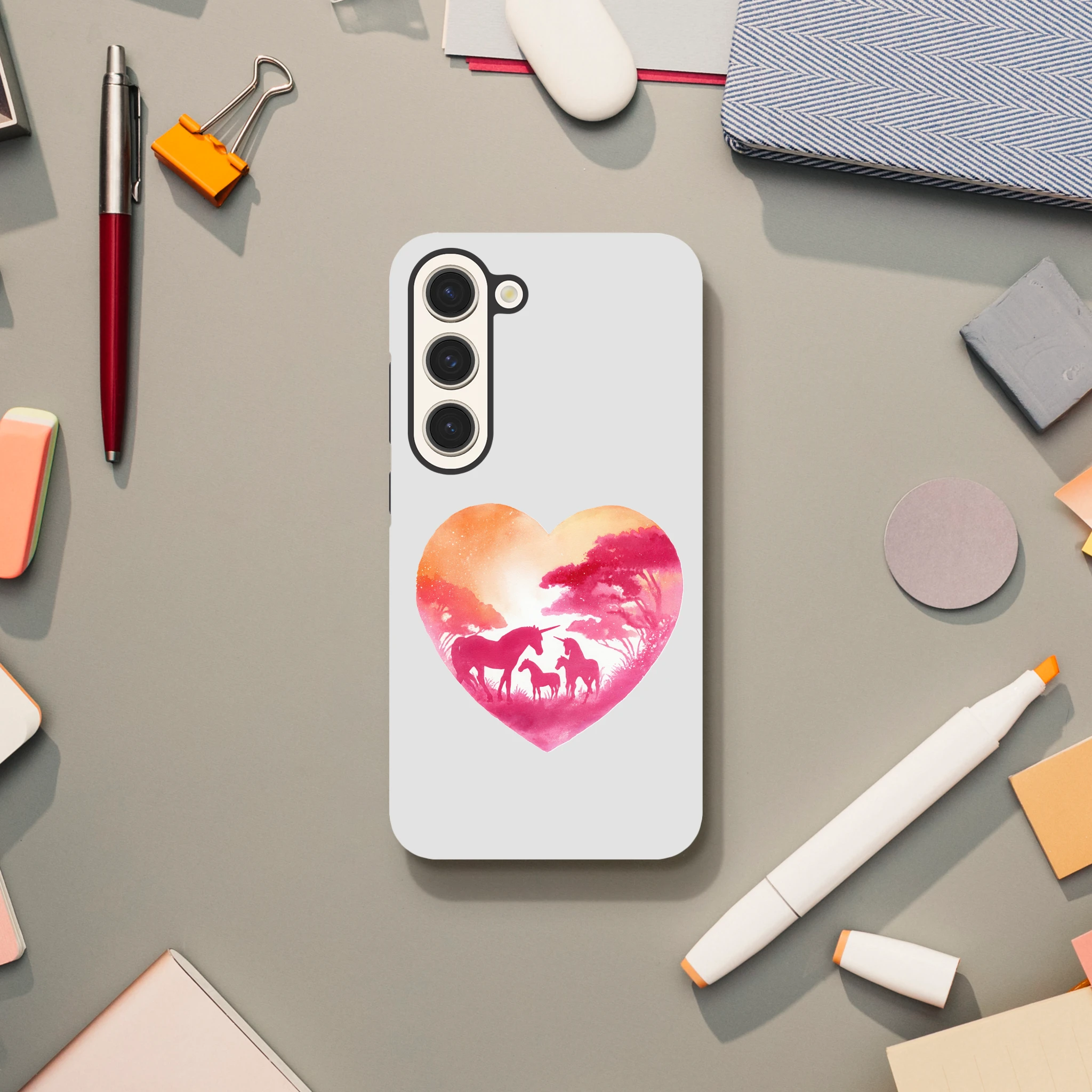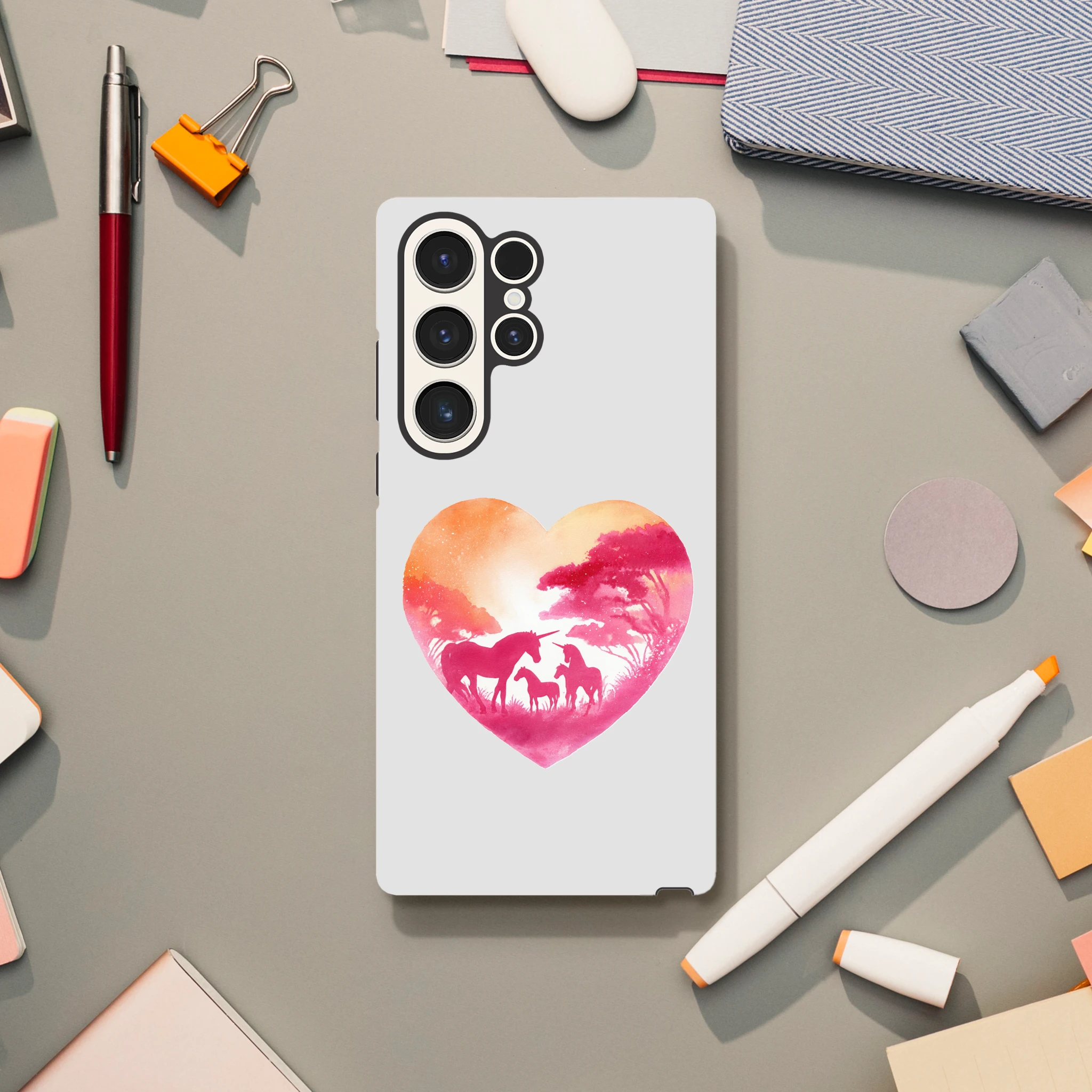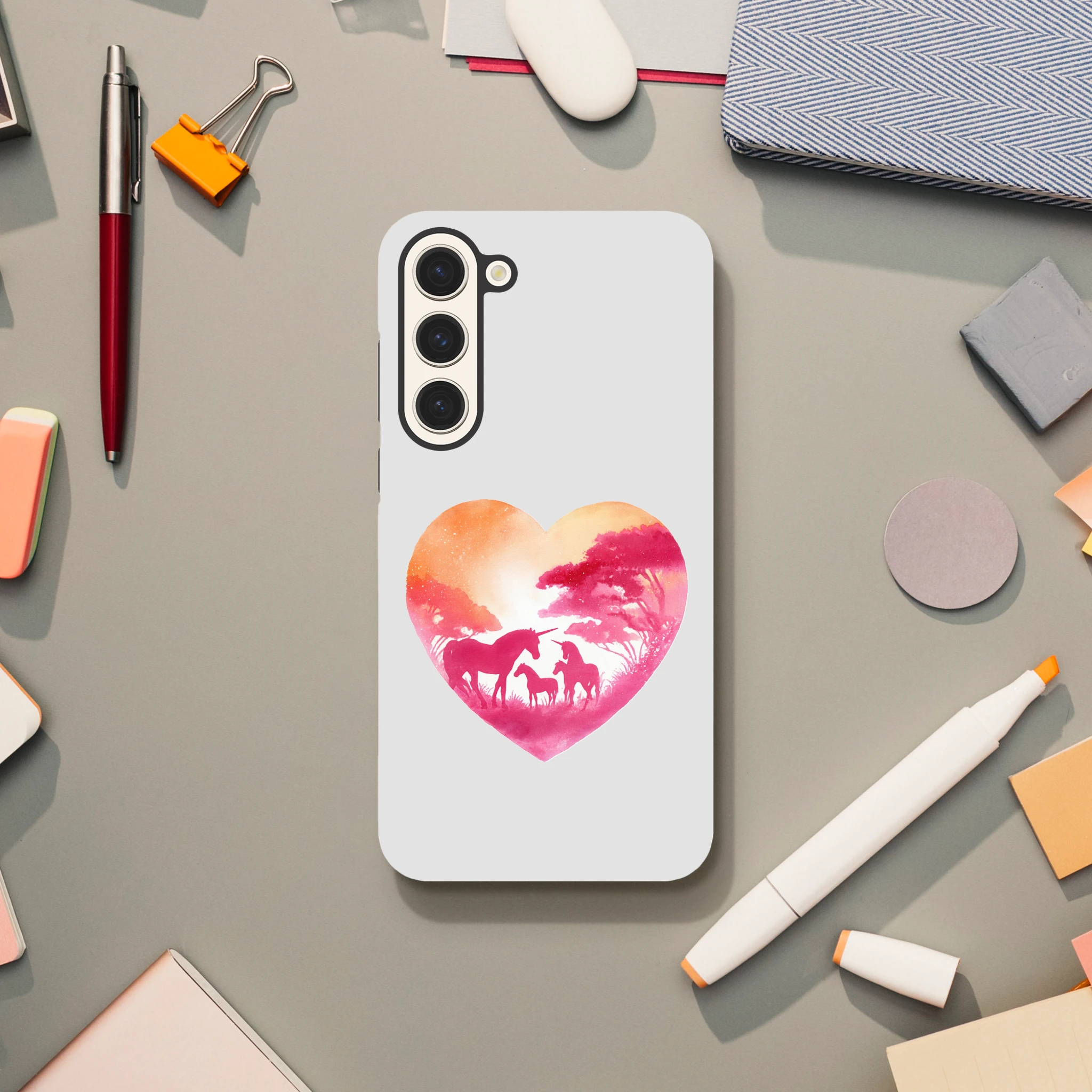 Protégez votre Samsung Galaxy avec une touche de magie grâce à la coque « Famille de licornes » ! Ce chef-d'œuvre en forme de cœur rassemble des licornes majestueuses, prêtes à protéger votre précieux appareil des mésaventures de la vie quotidienne. Optez pour une légende urbaine qui ne manquera pas de susciter des sourires et des « Oh ! » admiratifs. Chez Mimizou, on ne plaisante pas avec la protection... ou les cœurs. Adoptez cette famille légendaire et laissez votre téléphone briller aussi fort que votre style ! Un must pour tout féru de fantaisie et d’amooour !