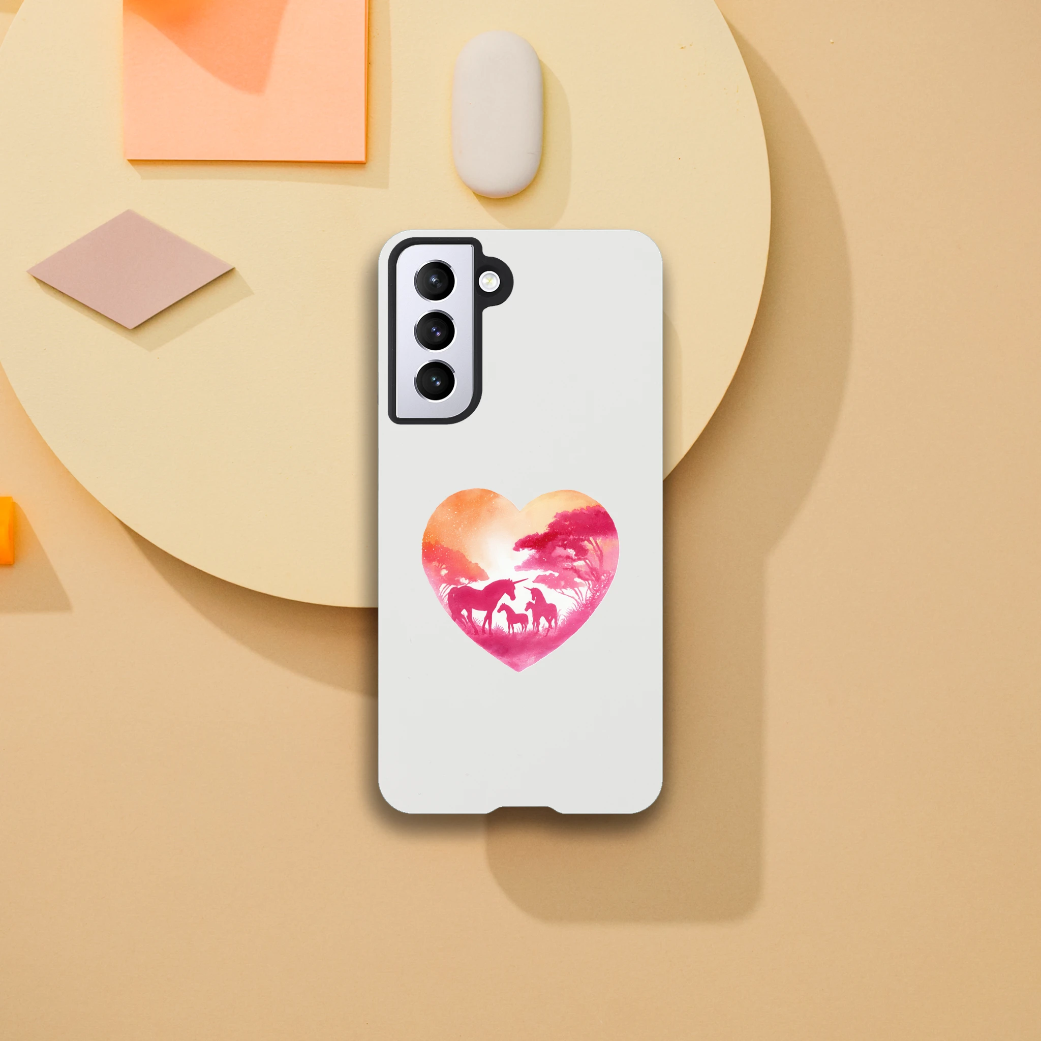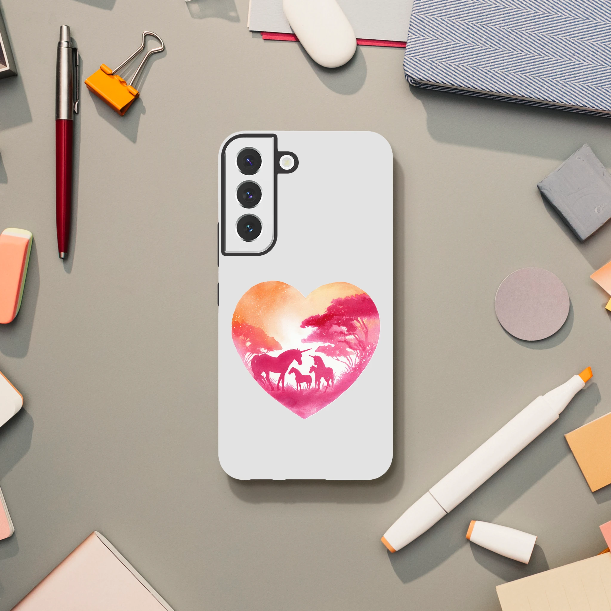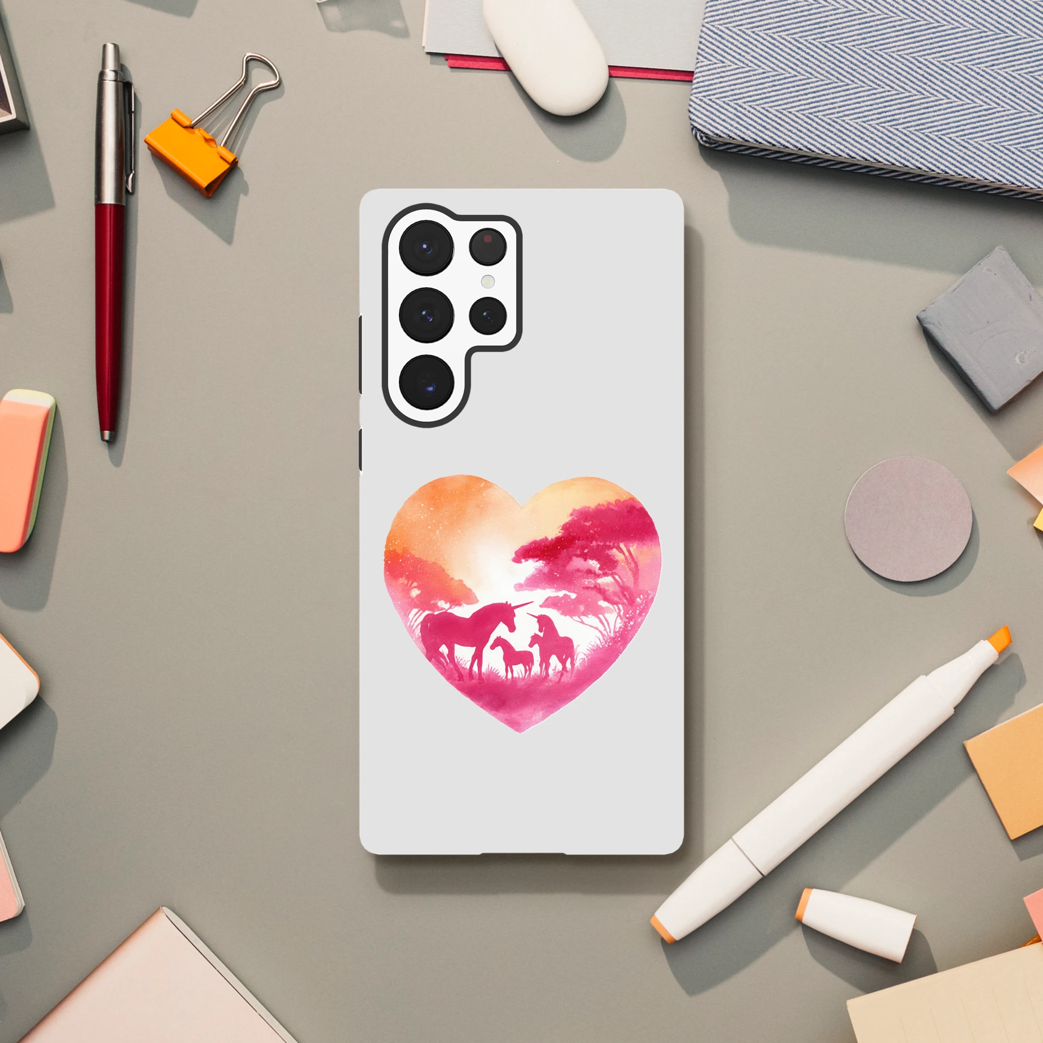 Protégez votre Samsung Galaxy avec une touche de magie grâce à la coque « Famille de licornes » ! Ce chef-d'œuvre en forme de cœur rassemble des licornes majestueuses, prêtes à protéger votre précieux appareil des mésaventures de la vie quotidienne. Optez pour une légende urbaine qui ne manquera pas de susciter des sourires et des « Oh ! » admiratifs. Chez Mimizou, on ne plaisante pas avec la protection... ou les cœurs. Adoptez cette famille légendaire et laissez votre téléphone briller aussi fort que votre style ! Un must pour tout féru de fantaisie et d’amooour !