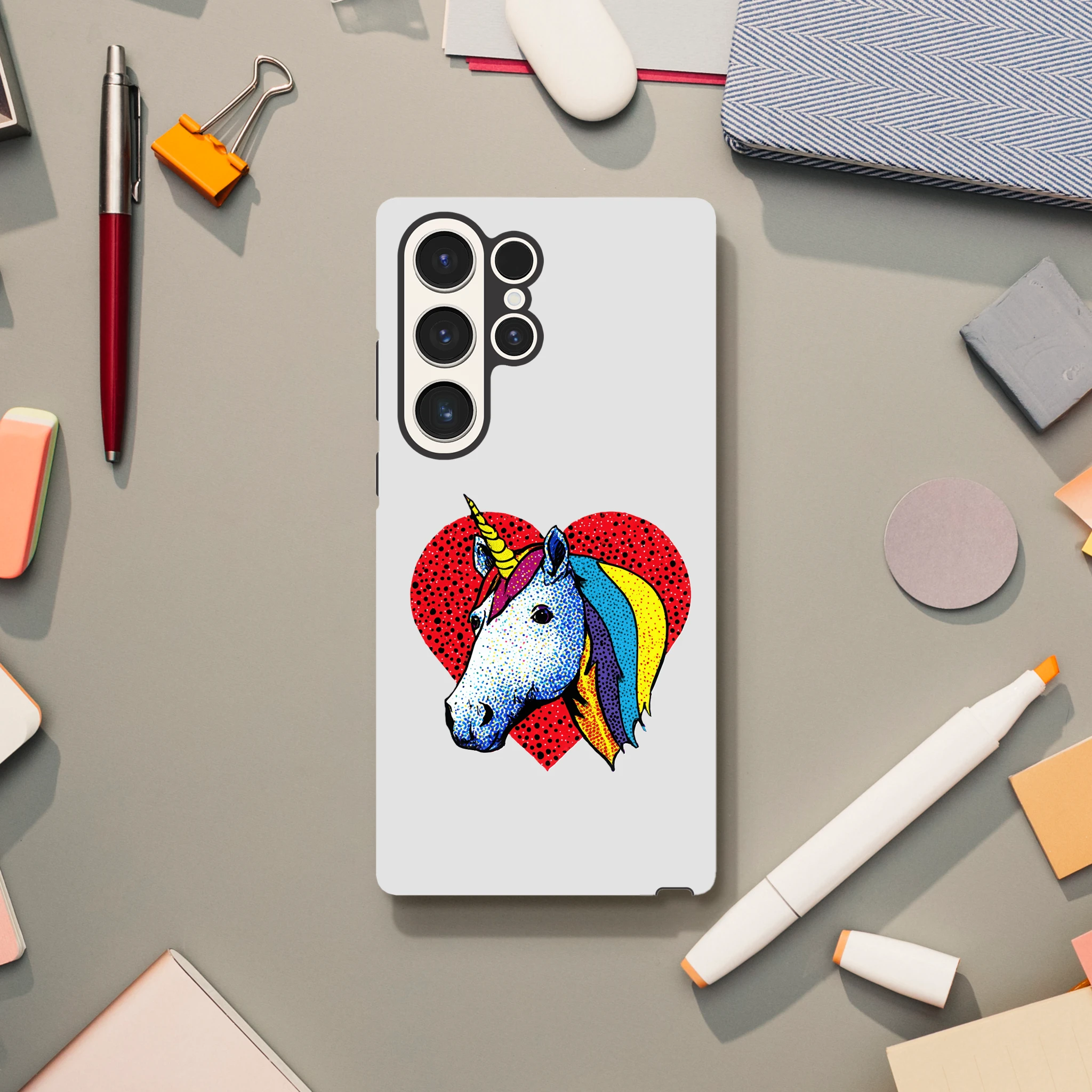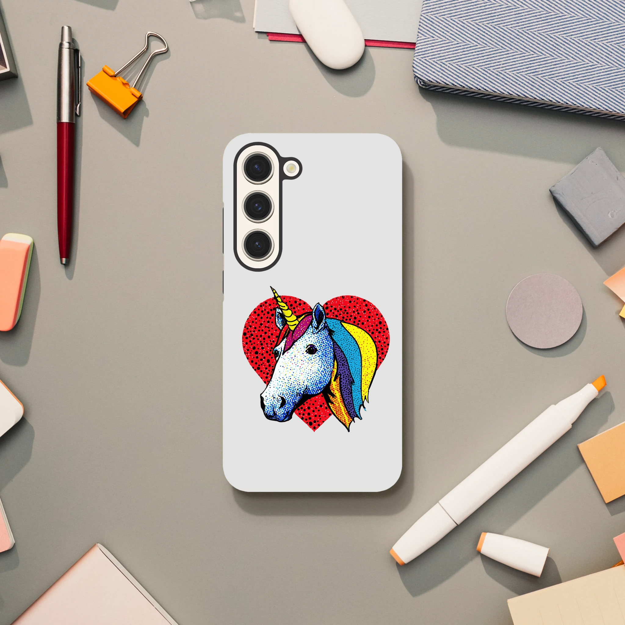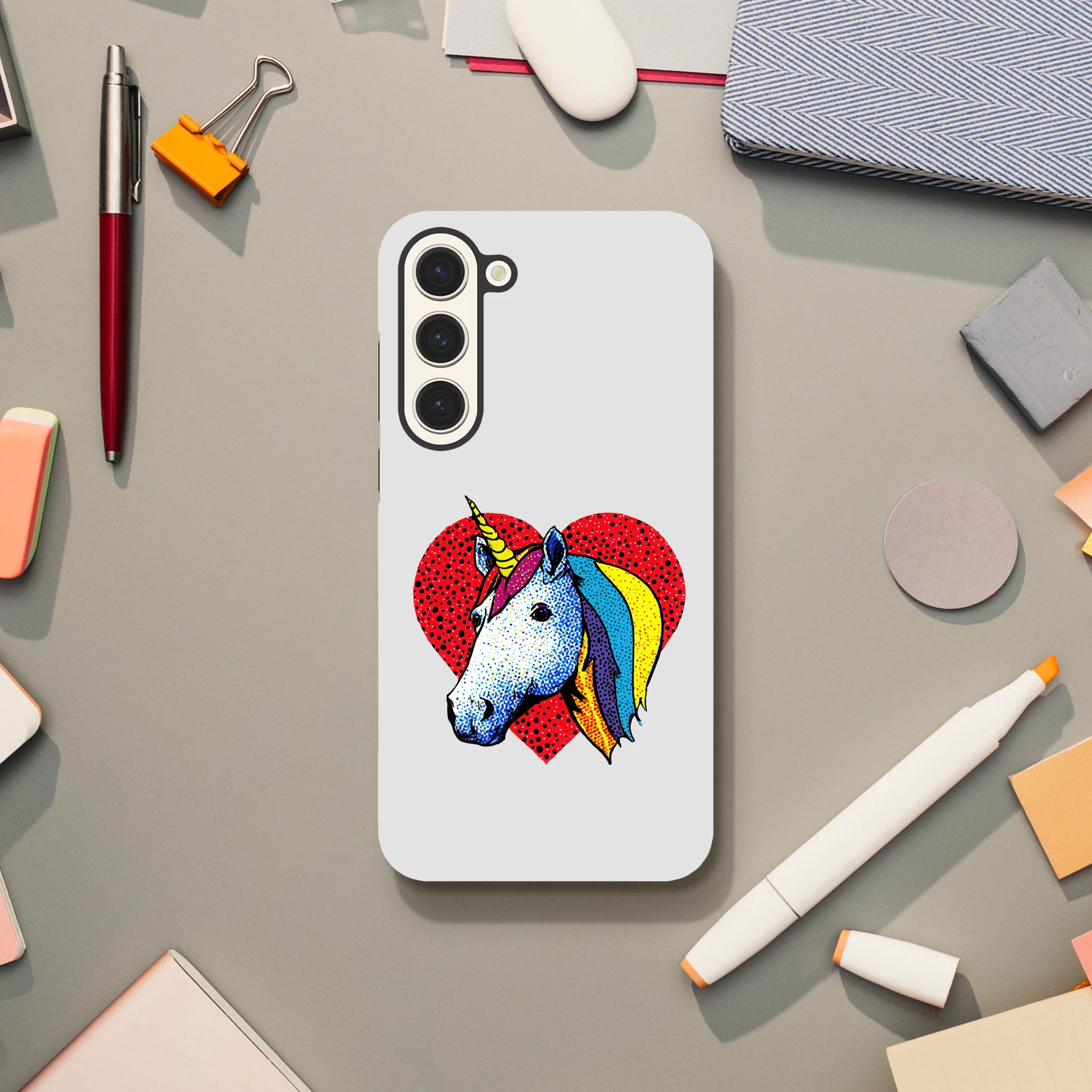 Plongez dans le monde enchanté de la «Licorne pop art» avec cette coque pour Samsung Galaxy ! Non seulement elle protège votre téléphone des chutes indésirables, mais elle le transforme aussi en œuvre d'art magistrale. Avec son motif de licorne vibrant et son fond de cœurs étincelants, chaque appel et texto devient une aventure magique. Parfait pour ceux qui aiment ajouter une touche d'insolite dans leur quotidien, cette coque est un mariage parfait entre protection et style féerique. Faites galoper votre imagination et laissez un peu de magie opérer !