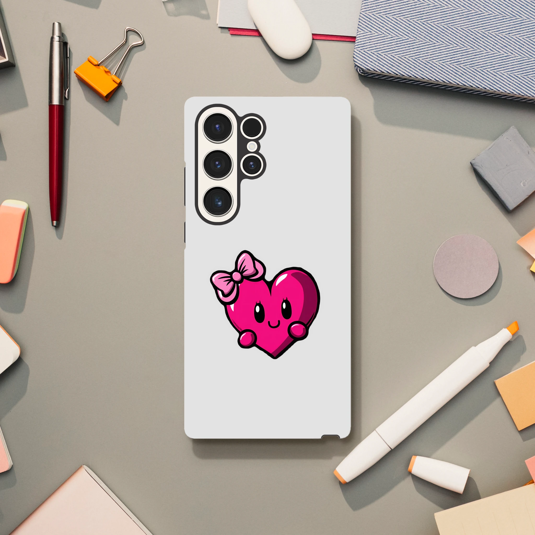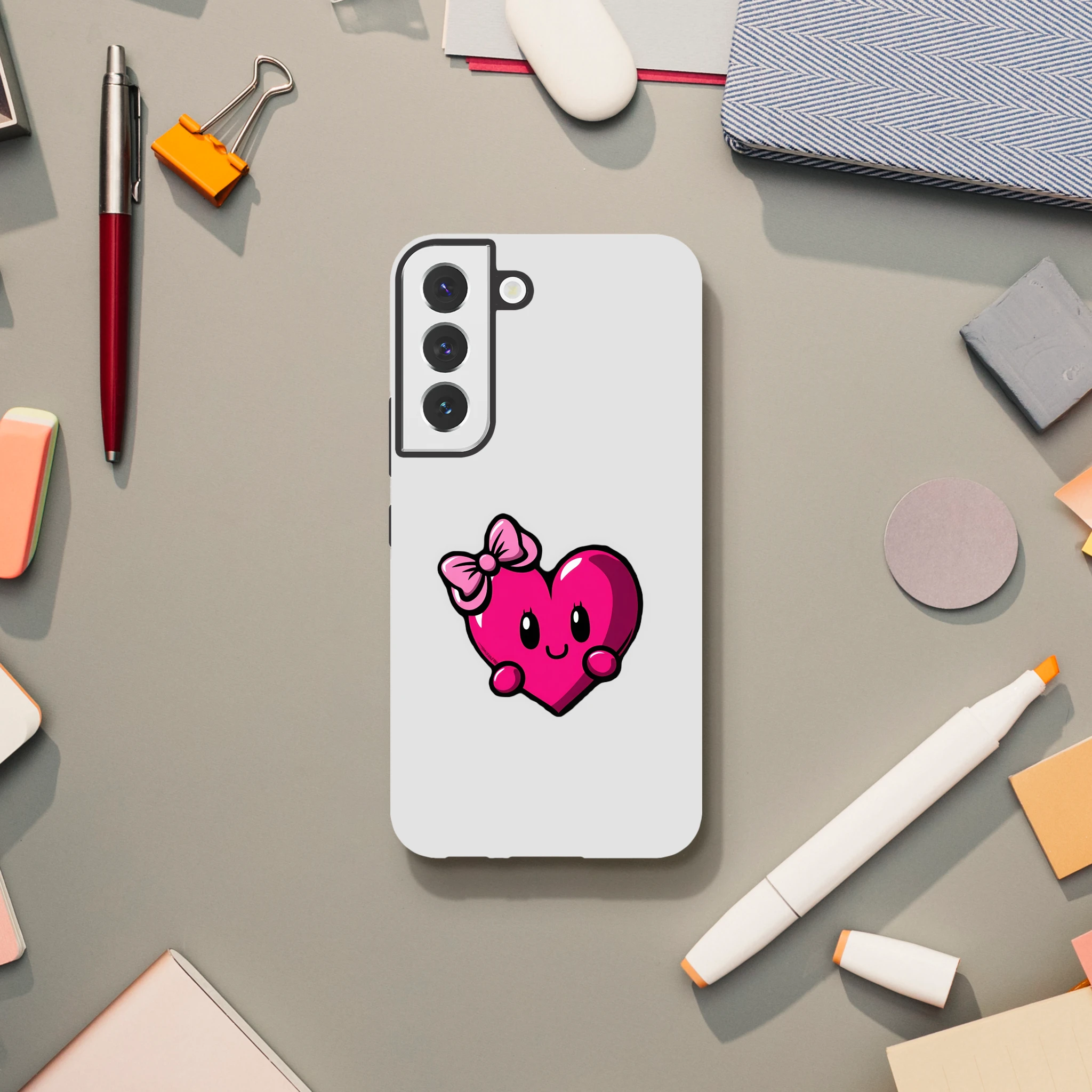 Transformez votre téléphone en objet de charme avec la coque « Mademoiselle Cœur » ! Parce que votre Samsung mérite de l'amour, offrez-lui une protection haute en couleur avec cette adorable demoiselle à nœud rose. Résistante comme votre cœur après un marathon de comédies romantiques, elle saura barrière contre les chocs inopinés. Alors, qu’attendez-vous pour faire battre votre Galaxy au rythme de Mimizou ? À vos amours et smartphones, prêt, partez !