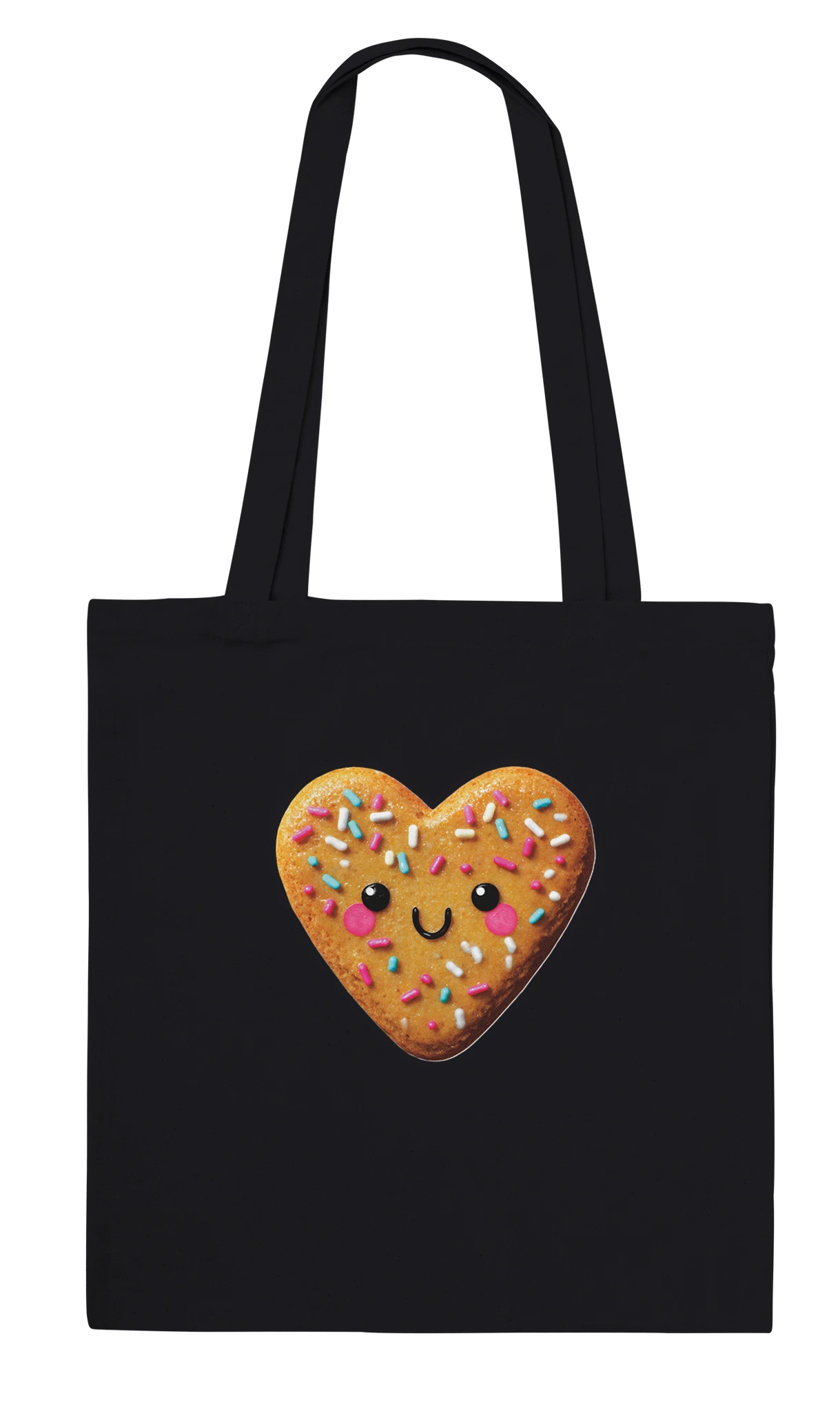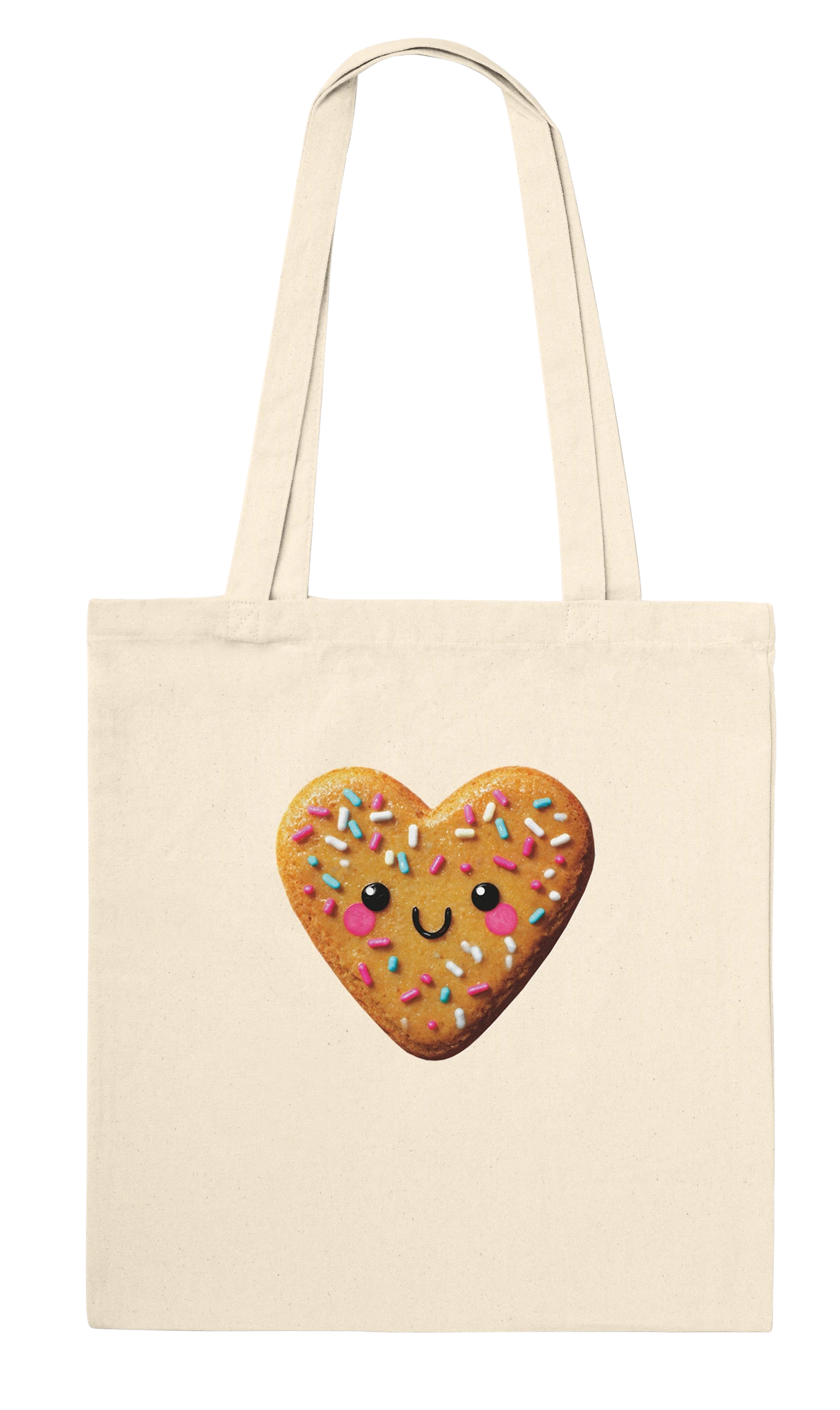 Voici notre Sac fourre-tout «Biscuit en forme de cœur avec un visage kawaii» : l’accessoire indispensable pour ceux qui osent afficher leur amour pour les biscuits mignons et les sprinkles colorés ! Fabriqué en coton, ce sac est parfait pour transporter vos essentiels… ou pour cacher vos vrais biscuits (on ne dira rien, promis). Avec ses longues poignées, portez-le à l’épaule ou d’une main courageuse, et préparez-vous à récolter des sourires ! Adoptez ce sac et transformez chaque sortie en une parade de kawaii et de câlin sucré. Ne soyez pas un biscuit ennuyeux, soyez un cœur adorable !