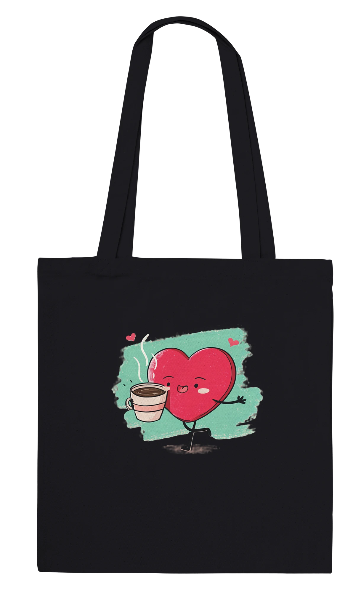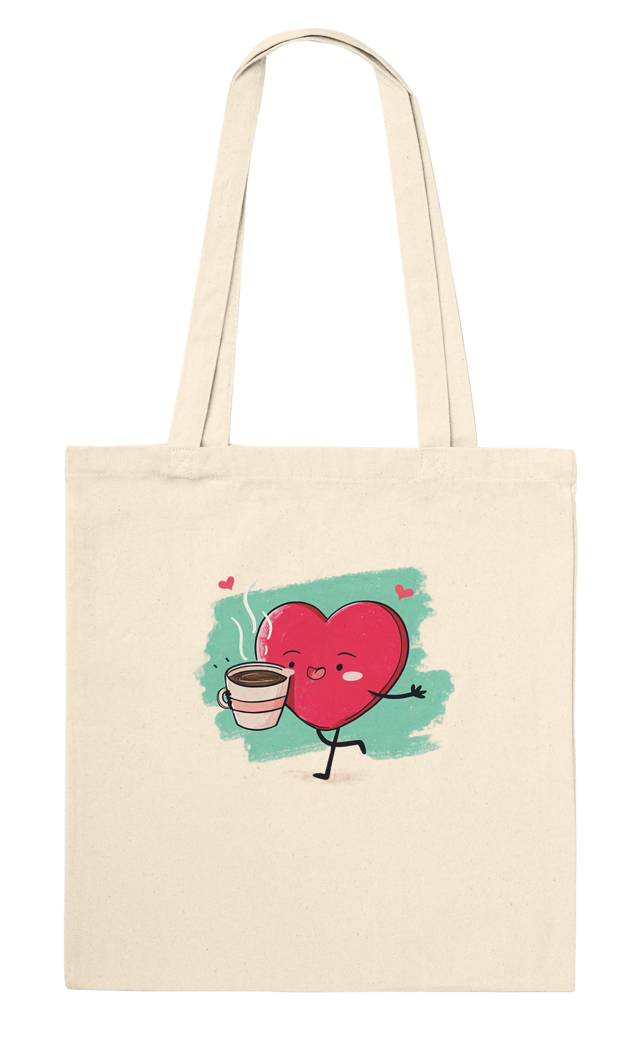 Transformez votre quotidien avec le sac fourre-tout « Cœur buvant une tasse de café » ! Un cœur joyeux, une tasse de café fumant… le combo idéal pour les amateurs de tendresse et de caféine. Ce sac en coton va devenir votre allié pour transporter vos secrets (et peut-être quelques muffins) tout en affichant votre amour du café. Longues poignées pour plus de confort, il a tout pour plaire ! Au bureau ou à la plage, votre cœur ne manquera pas d'attirer tous les regards. Alors, prêt à avoir le cœur léger et l’esprit joyeux ? Ne résistez pas à cette dose de mignonnerie quotidienne !