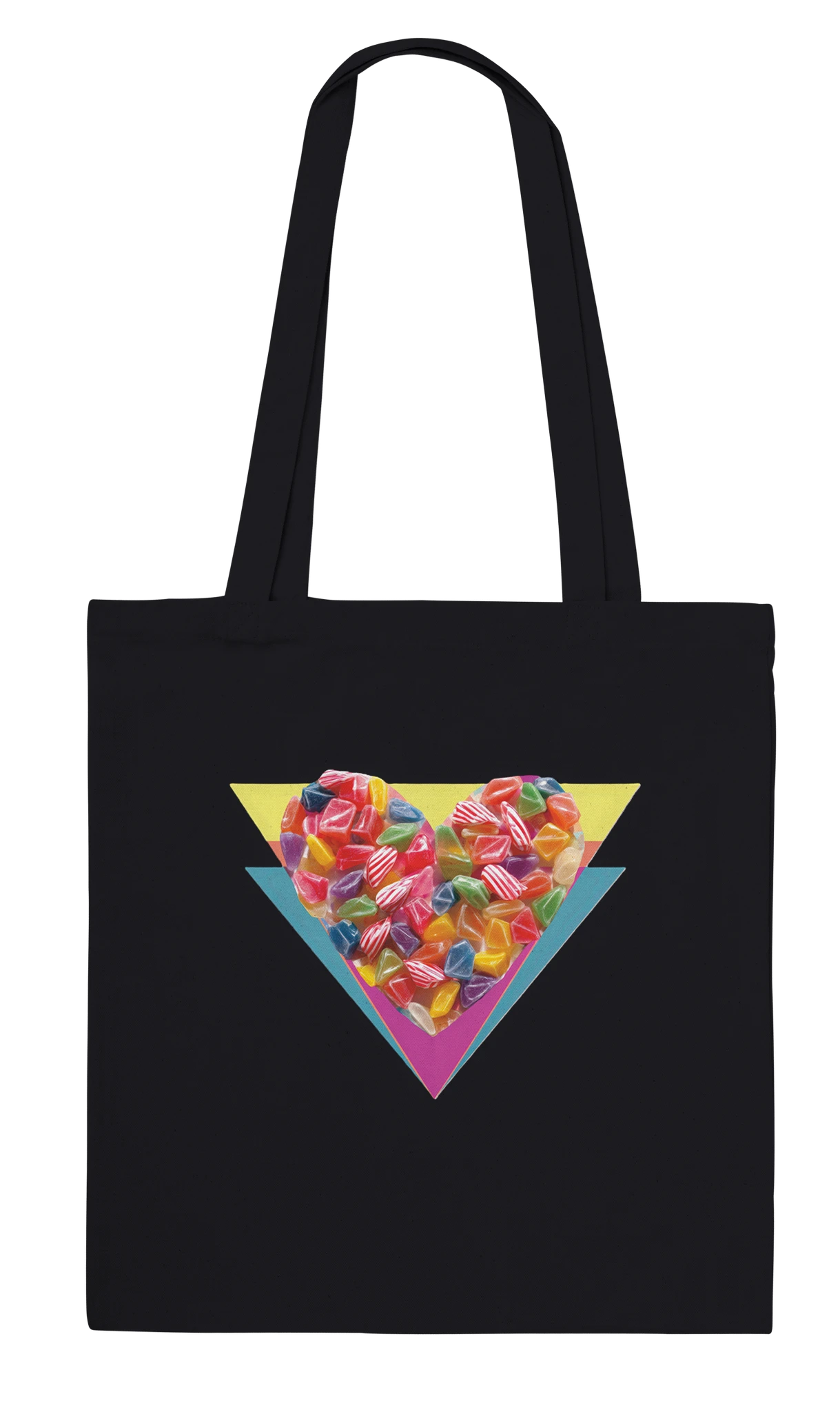 Transformez votre quotidien avec le sac fourre-tout «Cœur en bonbons délicieusement acidulés» ! Imaginez transporter votre monde avec un cœur de bonbons qui ne colle pas. Parfait pour y glisser vos rêves, des snacks, ou peut-être un vrai bonbon pour agrémenter votre journée ! Ses longues poignées en coton sont aussi douces que votre amour pour le sucre. Un sac qui dit : « Je suis sucré, mais piquant quand il le faut. » Craquez pour ce tourbillon de couleurs et devenez la star de votre épicerie locale. Adoptez-le, vous allez fondre... de plaisir !