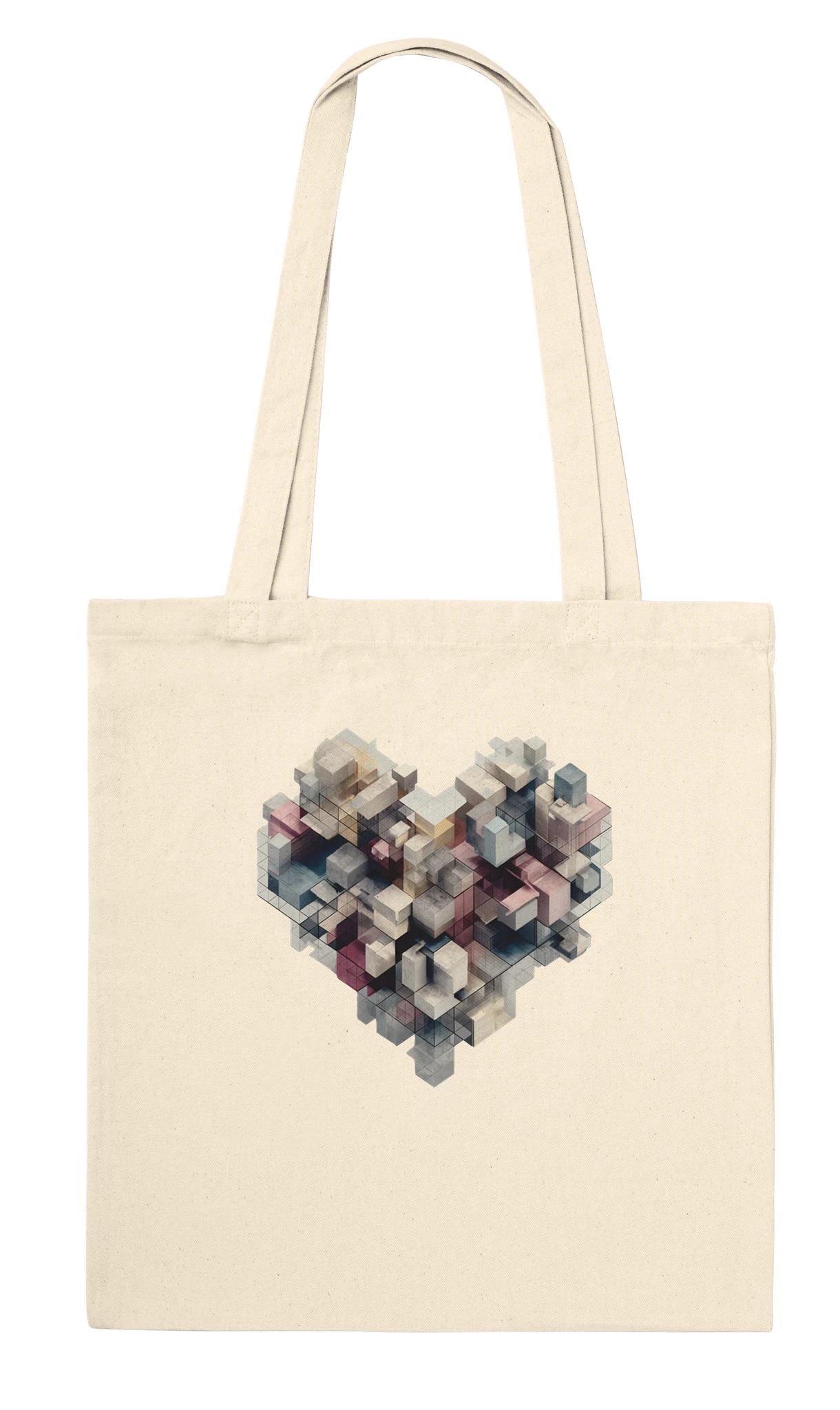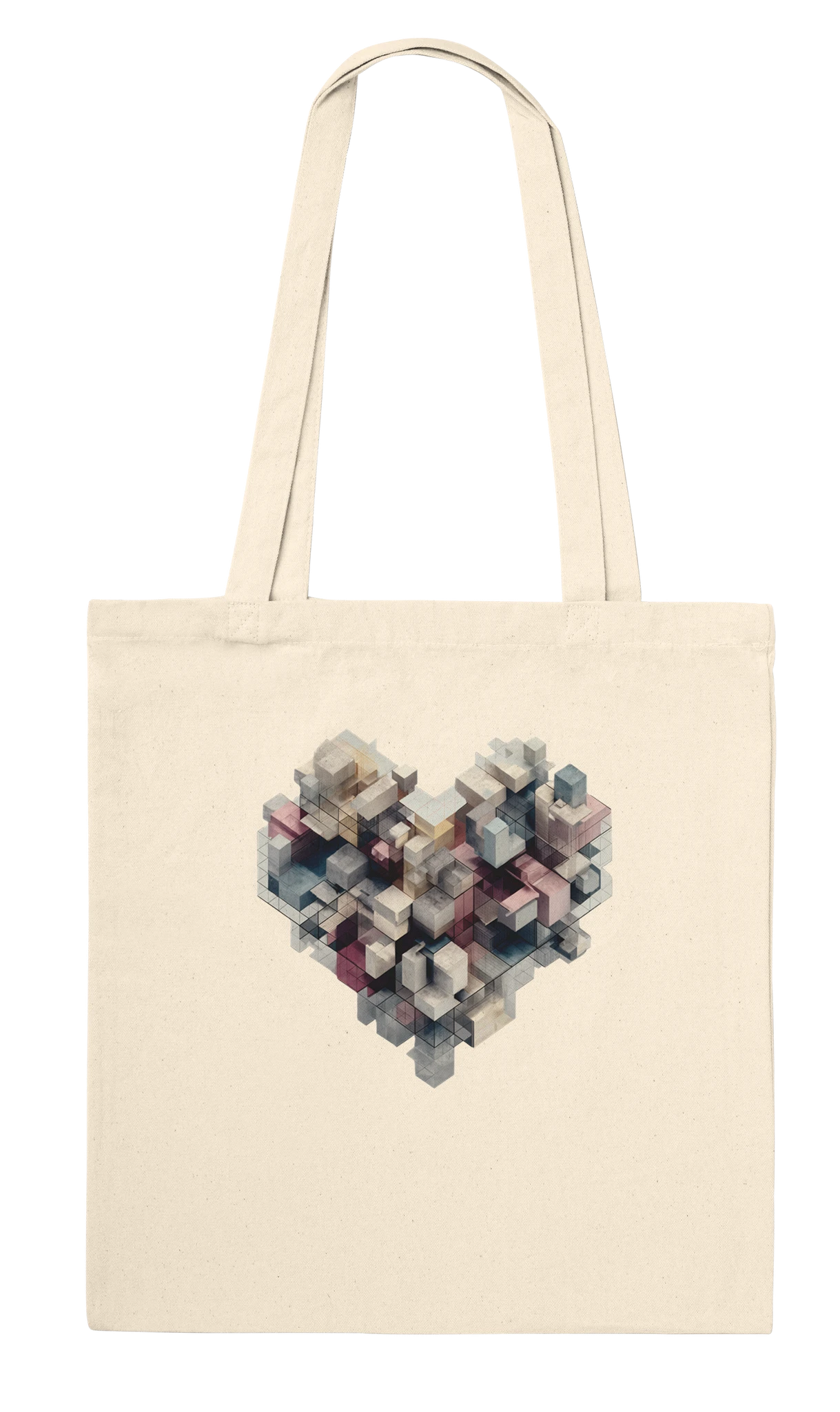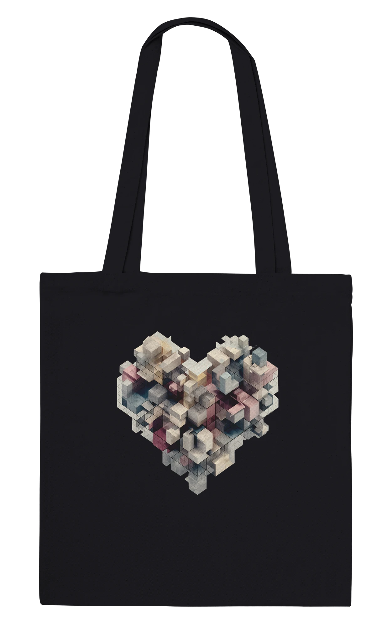Plongez dans la géométrie de l'amour avec notre sac fourre-tout « Cœur isométrique » ! Parfait pour ceux qui aiment leurs affaires au carré et leur cœur bien rangé. Ce sac transforme l’art de l’organisation en une véritable déclaration d’amour multidimensionnel. Fabriqué en coton doux, il est aussi éthique que poétique ! Emportez-le partout, et laissez les cœurs en 3D flotter autour de vous. Préparez-vous à recevoir des compliments à la pelle et peut-être même quelques questions existentielles sur la nature de l’amour et des cubes… Qui savait que la géométrie pouvait être si romantique ?