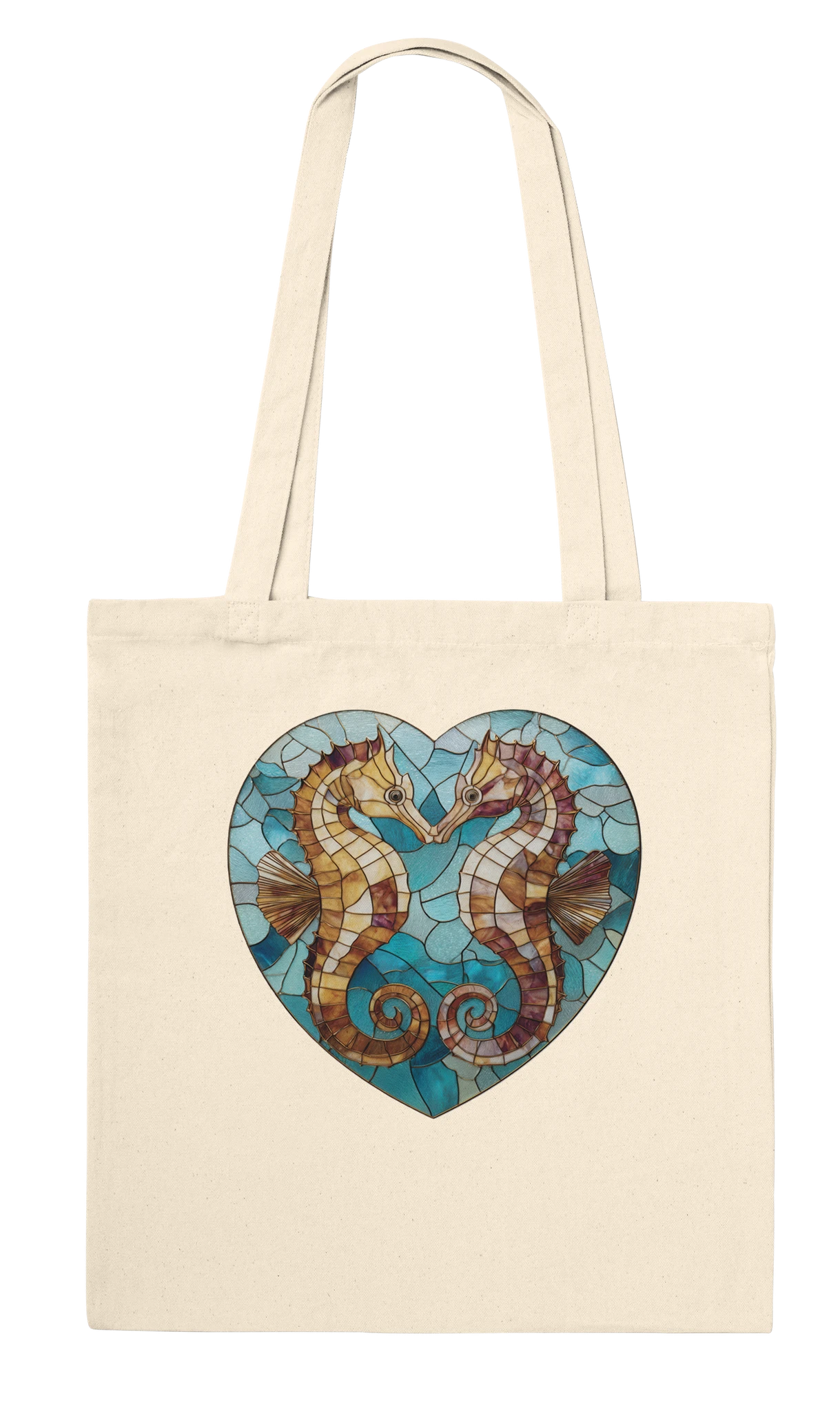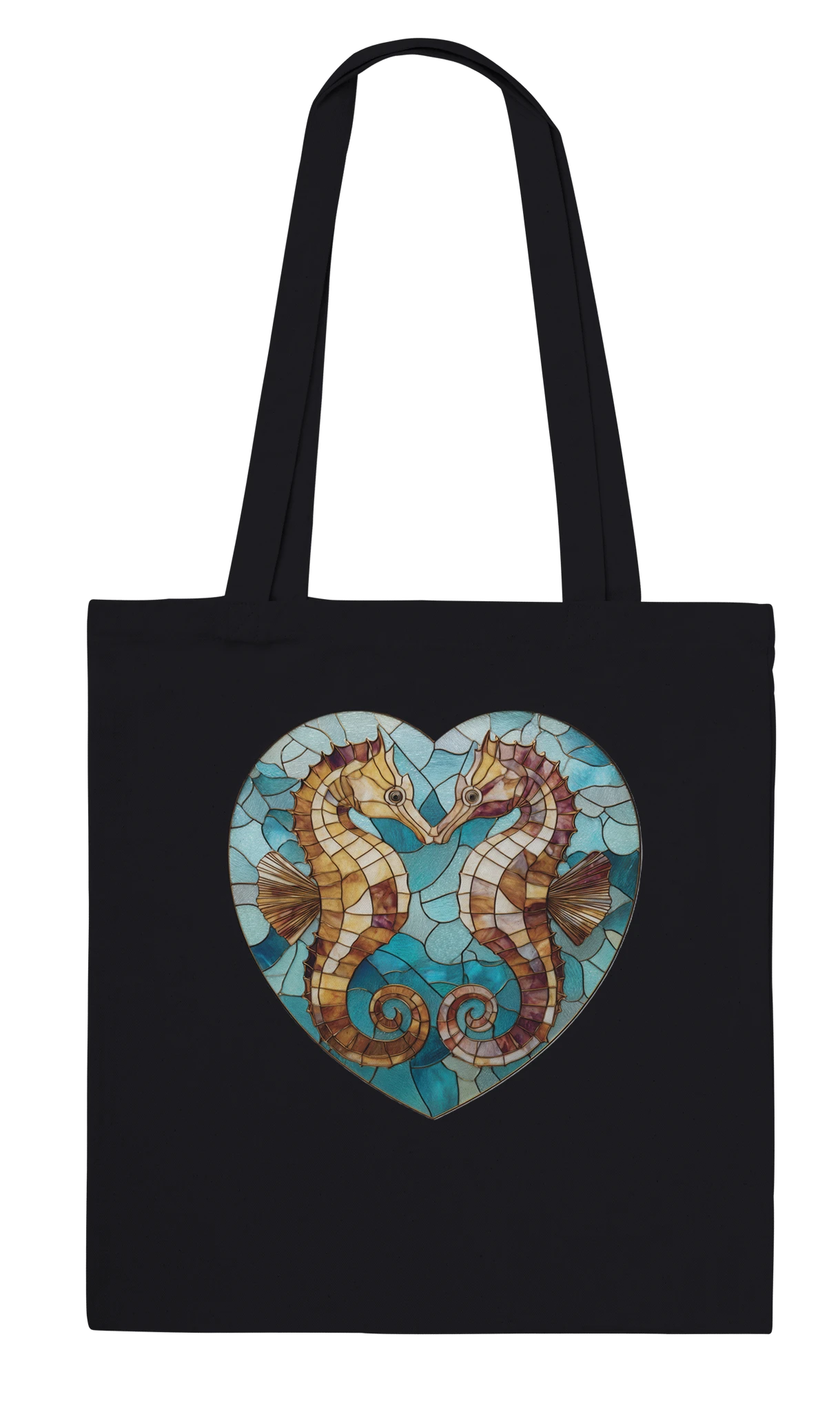 Plongez dans l’amour aquatique avec notre sac fourre-tout «Deux hippocampes» ! Conçu en coton douillet, il est parfait pour transporter vos trésors terrestres… ou marins. Chaque cœur est un symbole d’amour et d’élégance maritime, avec deux hippocampes prêts à danser toute la journée ! Avec ses longues poignées, ce sac est aussi pratique qu’un hippocampe est charmant. Ne laissez pas passer ce compagnon idéal pour vos aventures à la mer… ou au marché ! Faites des vagues où que vous alliez !