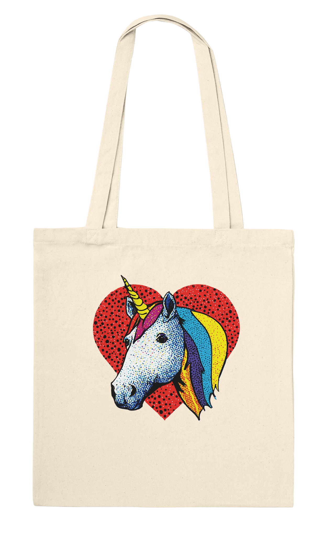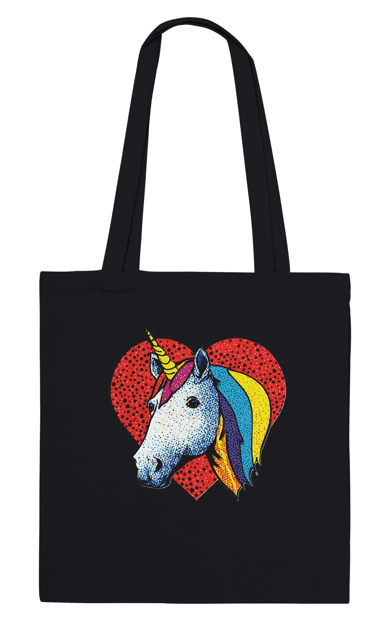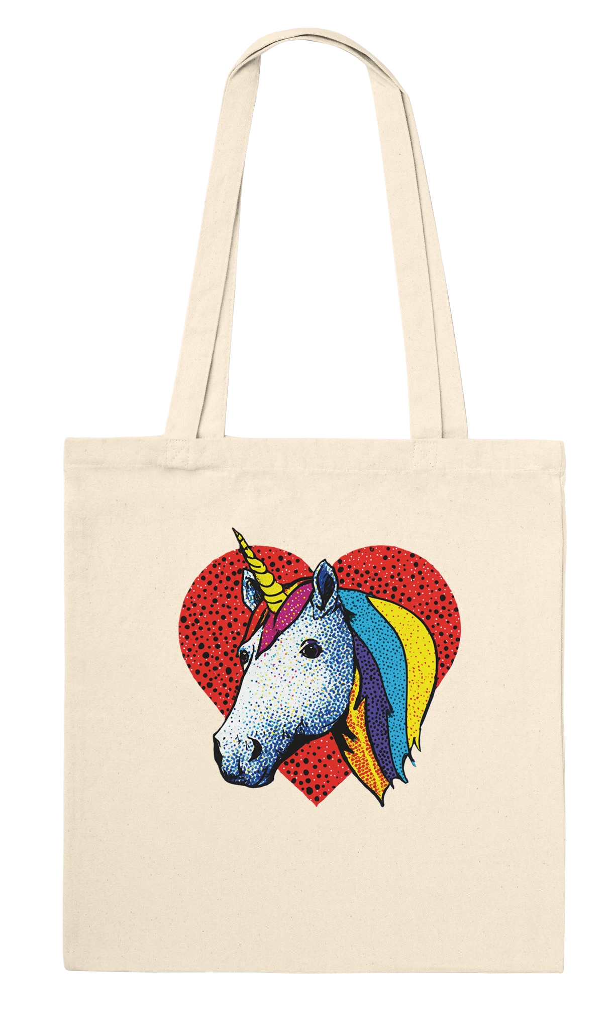 Voici le sac fourre-tout «Licorne pop art», où la magie rencontre la fonctionnalité avec une pointe de dérision ! Imaginez : un cœur débordant d'amour et une licorne portant un arc-en-ciel comme si c'était la nouvelle tendance. Dans ce sac en coton, vos affaires seront aussi bien gardées qu'un secret de licorne. Prenez-le pour égayer vos journées, et qui sait, peut-être trouverez-vous un peu d’arc-en-ciel au bout du chemin ! N'oubliez pas, chaque détail compte, surtout les cœurs !