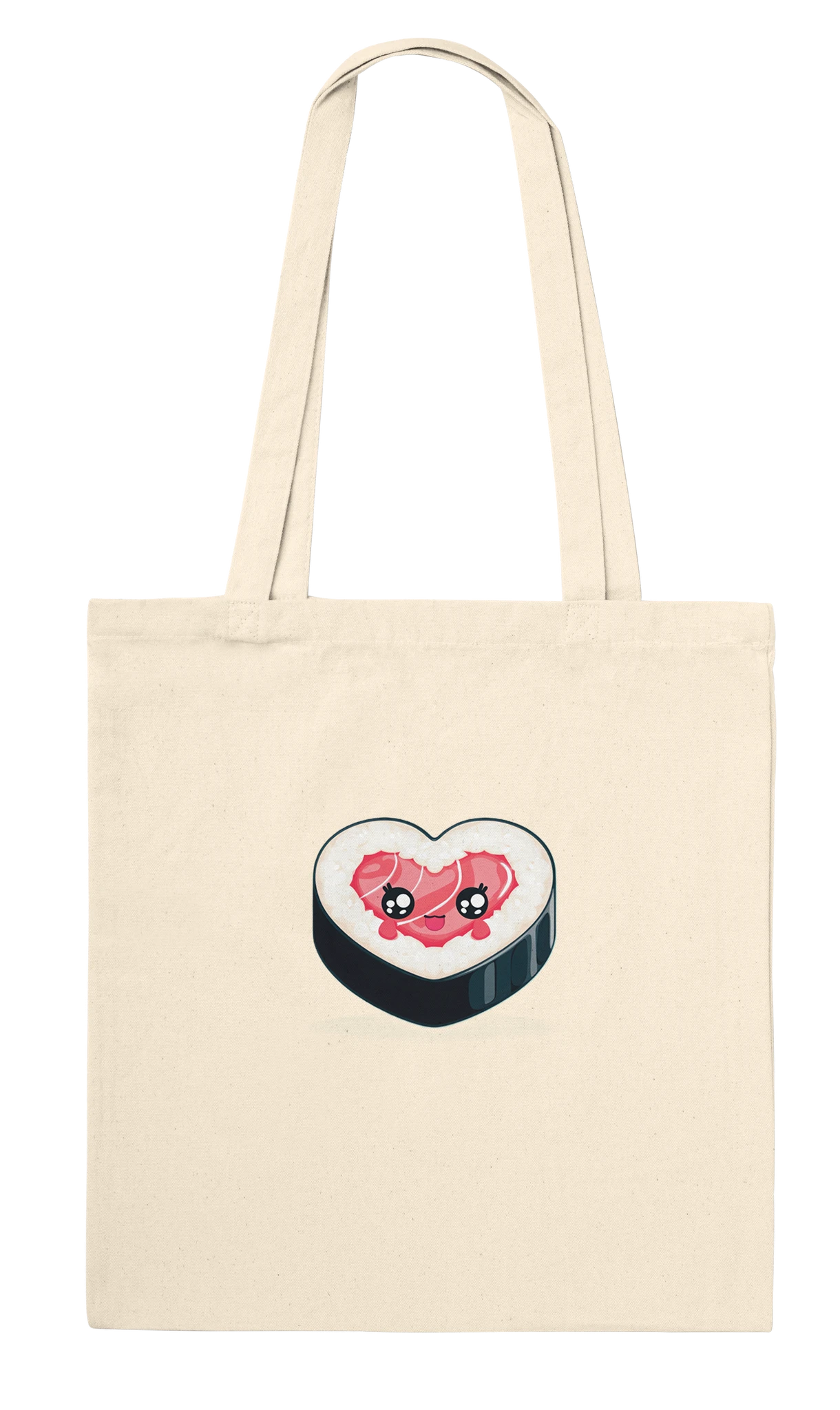Transformez votre quotidien en festin de style avec le sac fourre-tout «Rouleau de sushi» ! Ce compagnon en coton vous promet une avalanche de câlins... en format maki ! Transportez vos trésors avec amour, grâce à ses longues poignées pratiques. Que vous alliez faire les courses ou piquer une tête à la plage, ce sac est votre ticket pour un voyage culinaire et amoureux. Un cœur de riz, une touche de saumon et beaucoup de charme... On parie que vous allez craquer ? Faites une déclaration d'affection aussi mignonne que votre plat préféré !