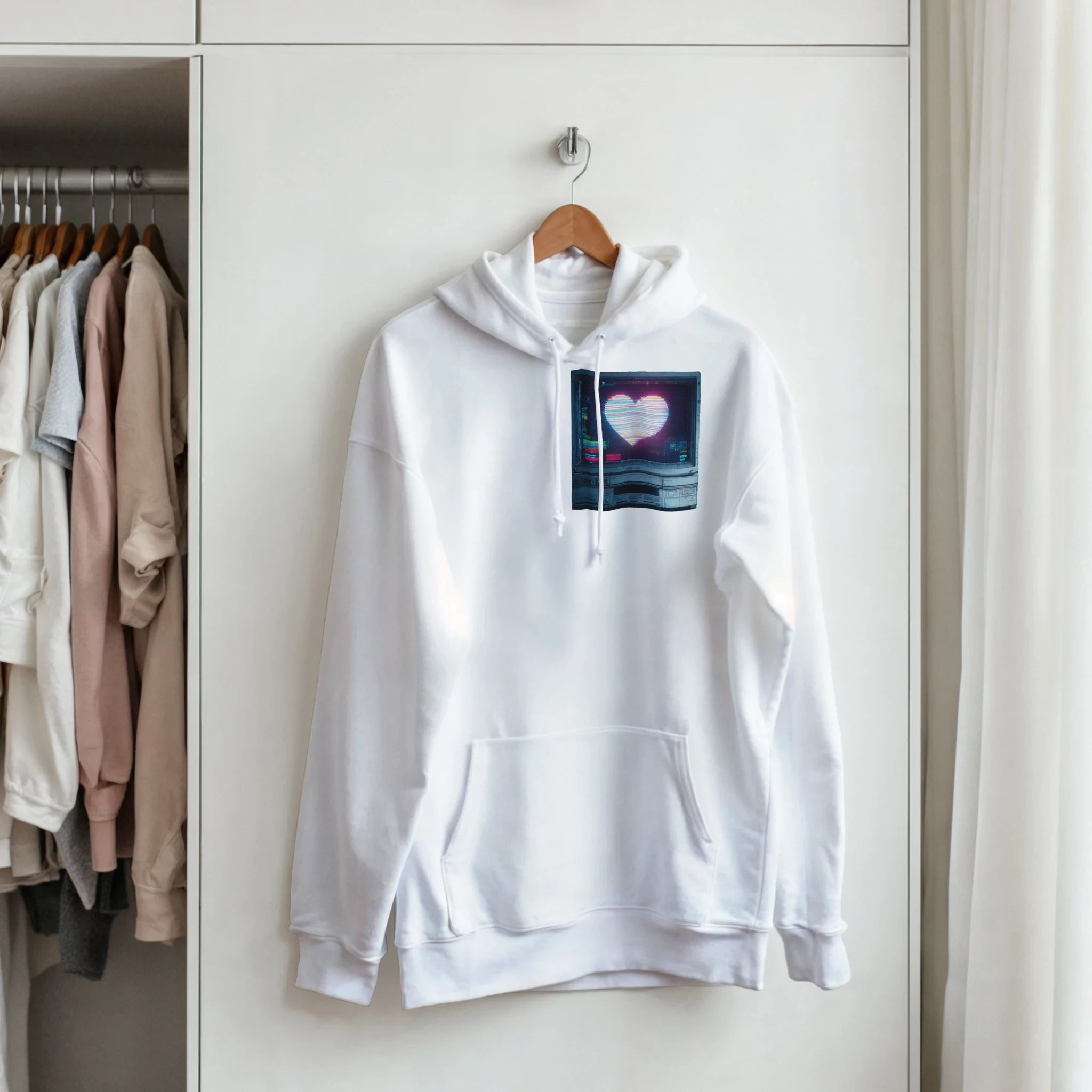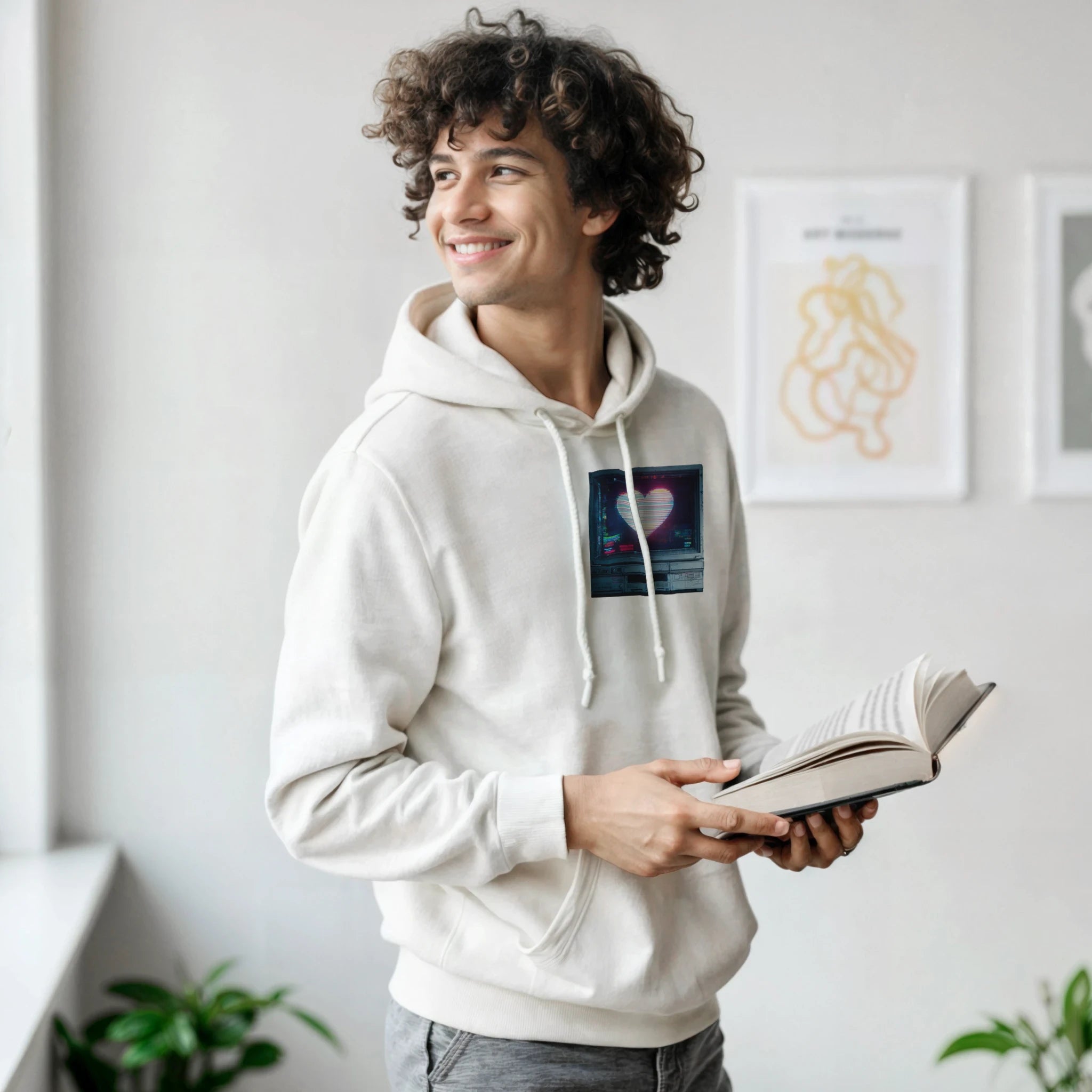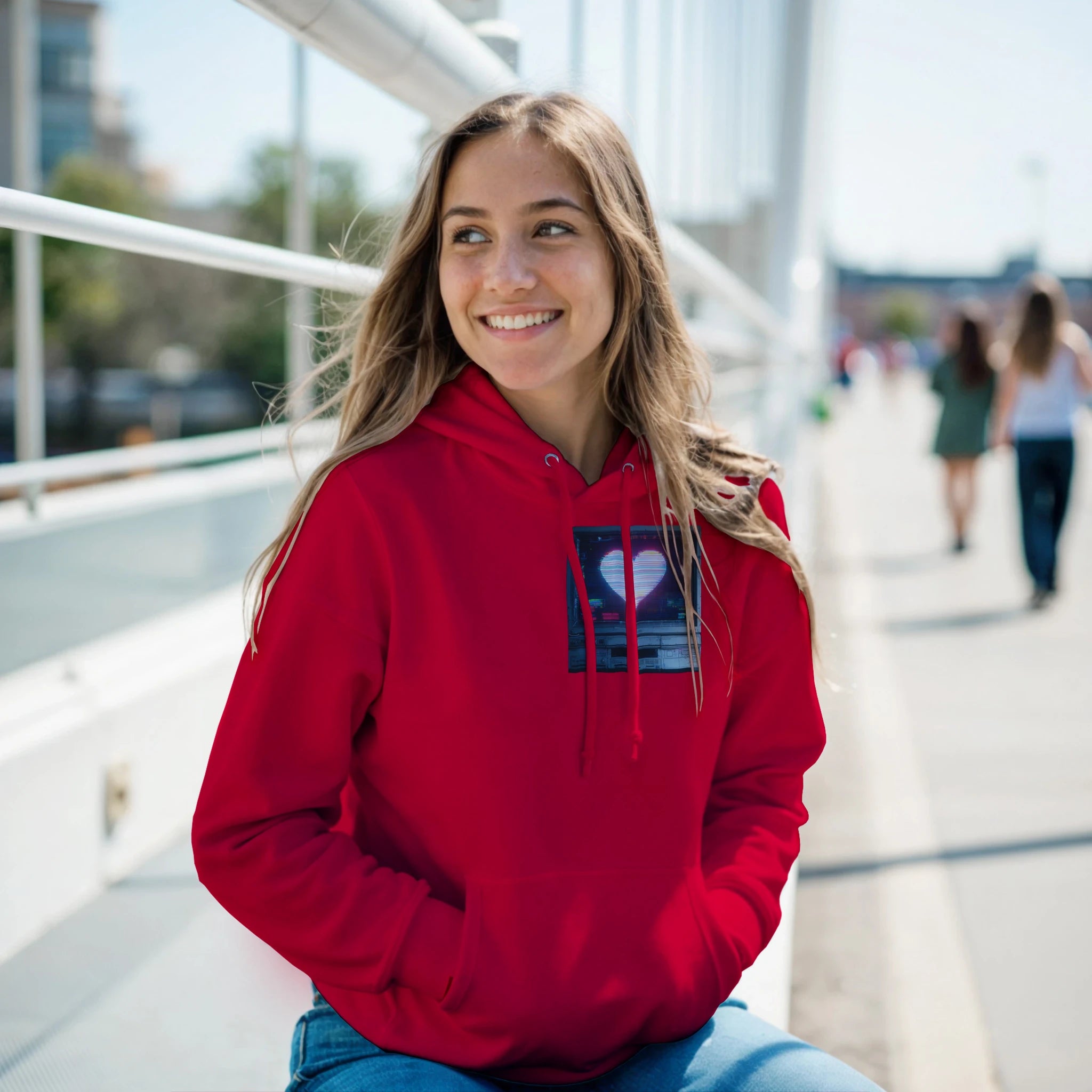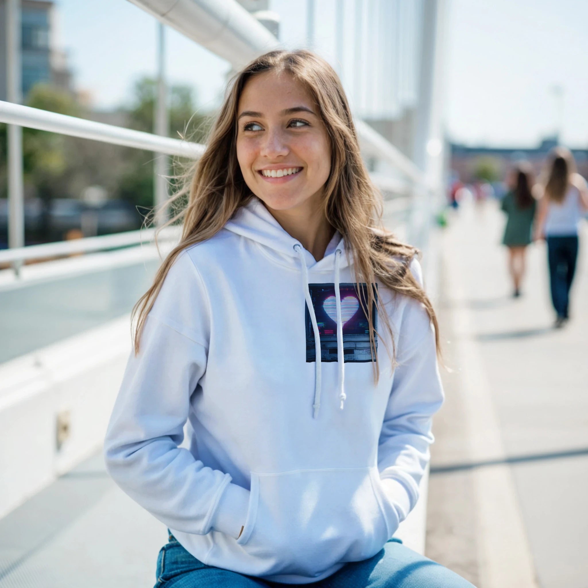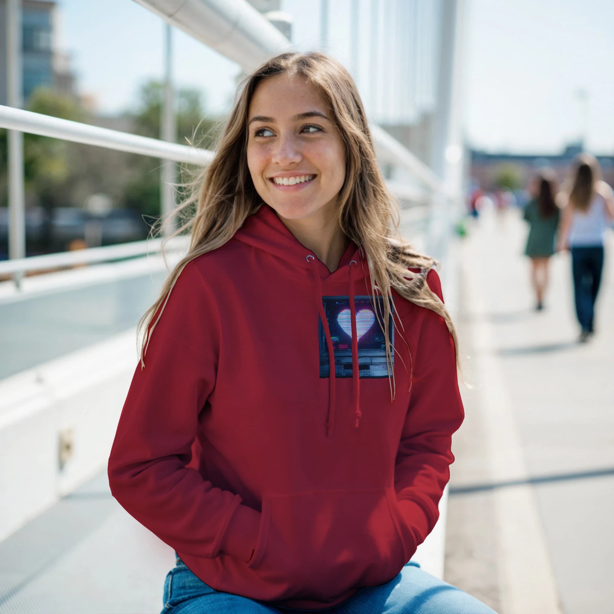 Plongez dans la nostalgie numérique avec notre Sweat à capuche «Cœur dans un écran CRT» ! Faites battre votre cœur à la fréquence des bonnes vieilles annales des années 80. Ce sweat est parfait pour ceux qui ont la fibre, mais pas la fibre optique. Avec son motif pixelisé, il vous assure un amour rétro unique, garanti sans bugs ! Enfilez-le et rayonnez comme un écran cathodique, tout en vous sentant câliné par une laine aussi douce que vos souvenirs d'enfance. Soyez avant-gardiste tout en affichant votre cœur à l'ancienne… on vous captivera à 60 Hz !