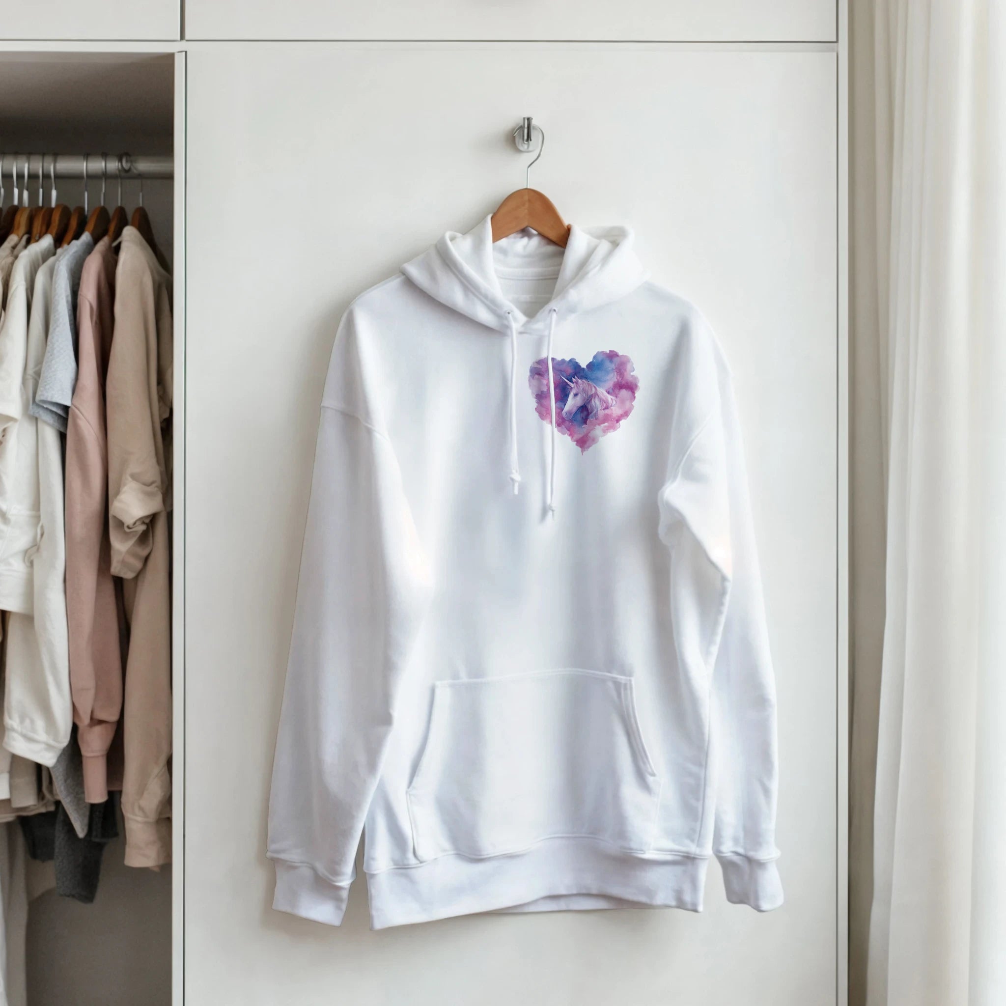 Préparez-vous à plonger dans un univers féerique avec notre sweat à capuche «Licorne de la galaxie» ! 🌌 Imaginez-vous en train de chevaucher une licorne majestueuse à travers les cœurs étoilés d'une galaxie pastel… tout en faisant vos courses ou en buvant un café ! Avec ses nuances roses et violettes, ce sweat est une ode au rêve et à l'infiniment stylé. Parfait pour ceux qui souhaitent allier magie et confort, cet habit est votre ticket vers un monde où licornes et élégance ne font qu'un. Enfilez-le et laissez la magie opérer !