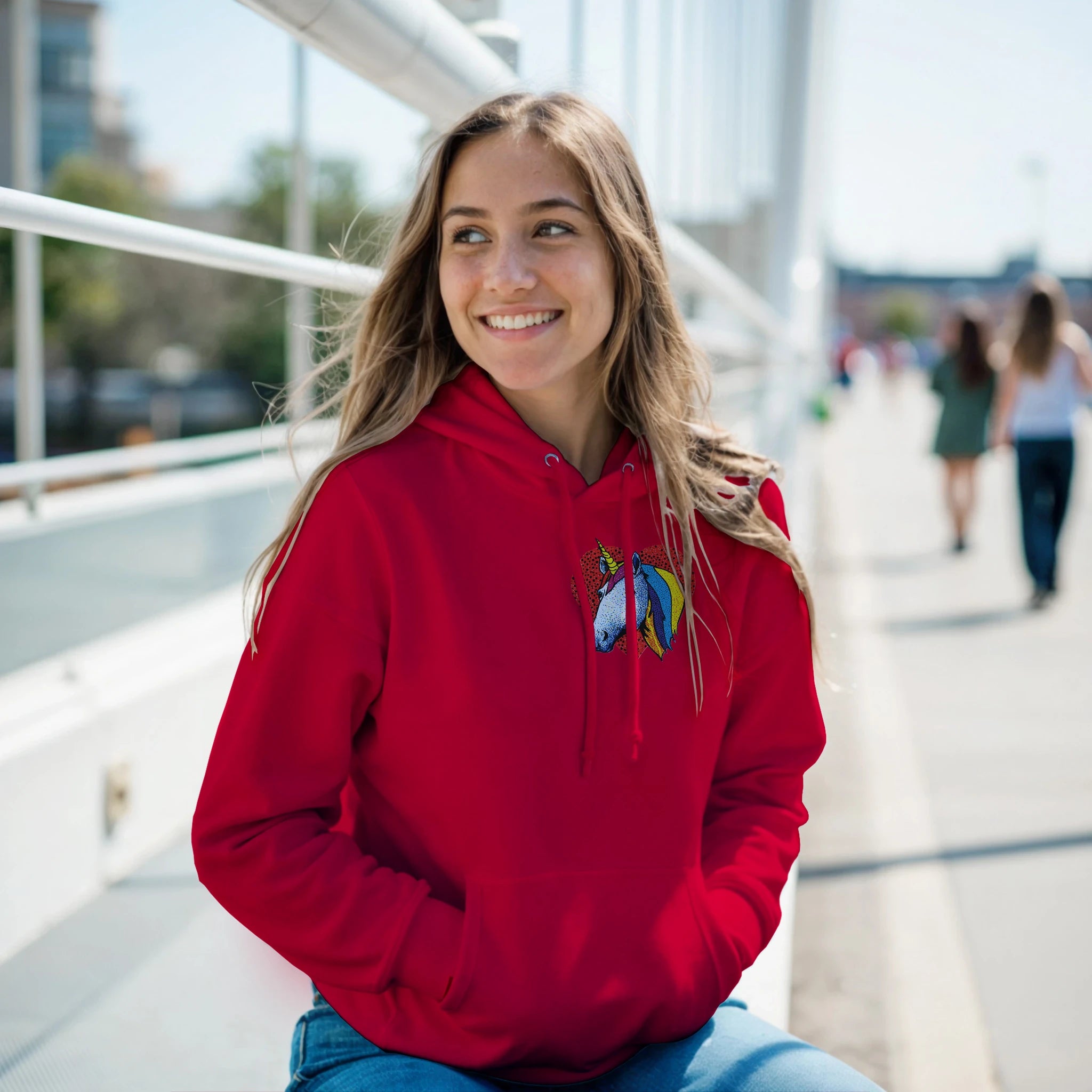 Plongez dans un tourbillon de magie avec notre sweat à capuche «Licorne pop art» ! Parfait pour ceux qui veulent ajouter une dose de merveille à leur quotidien, ce vêtement est l’œuvre parfaite pour ceux qui croient en la magie... et en un style impeccable. Chaque licorne se bat pour ses droits à être fabuleuse, alors pourquoi ne pas le faire aussi ? Qu’il pleuve, qu’il neige ou qu’il y ait un arc-en-ciel, soyez sûr que ce sweat saura réchauffer votre cœur. Enfilez-le et laissez la magie opérer ! ✨