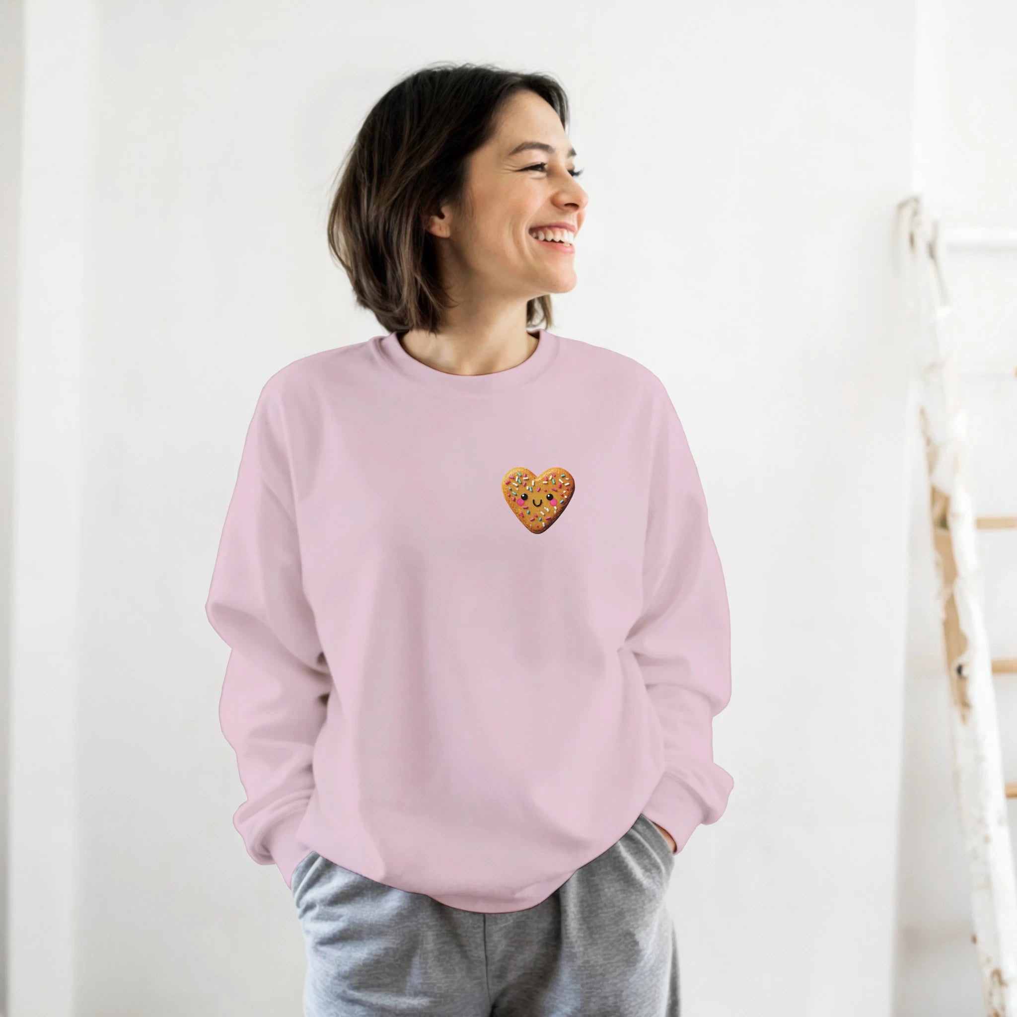 Sweat sans capuche «Biscuit en forme de cœur avec un visage kawaii»