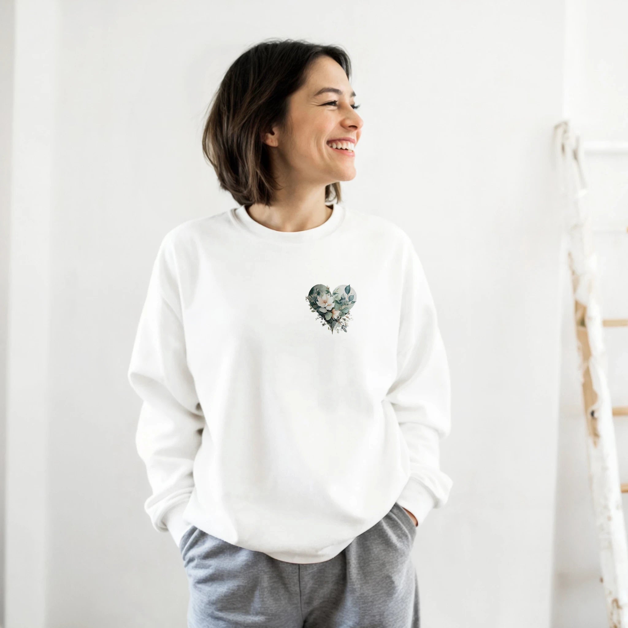Sweat sans capuche «Cœur aquarelle avec eucalyptus et pivoines»