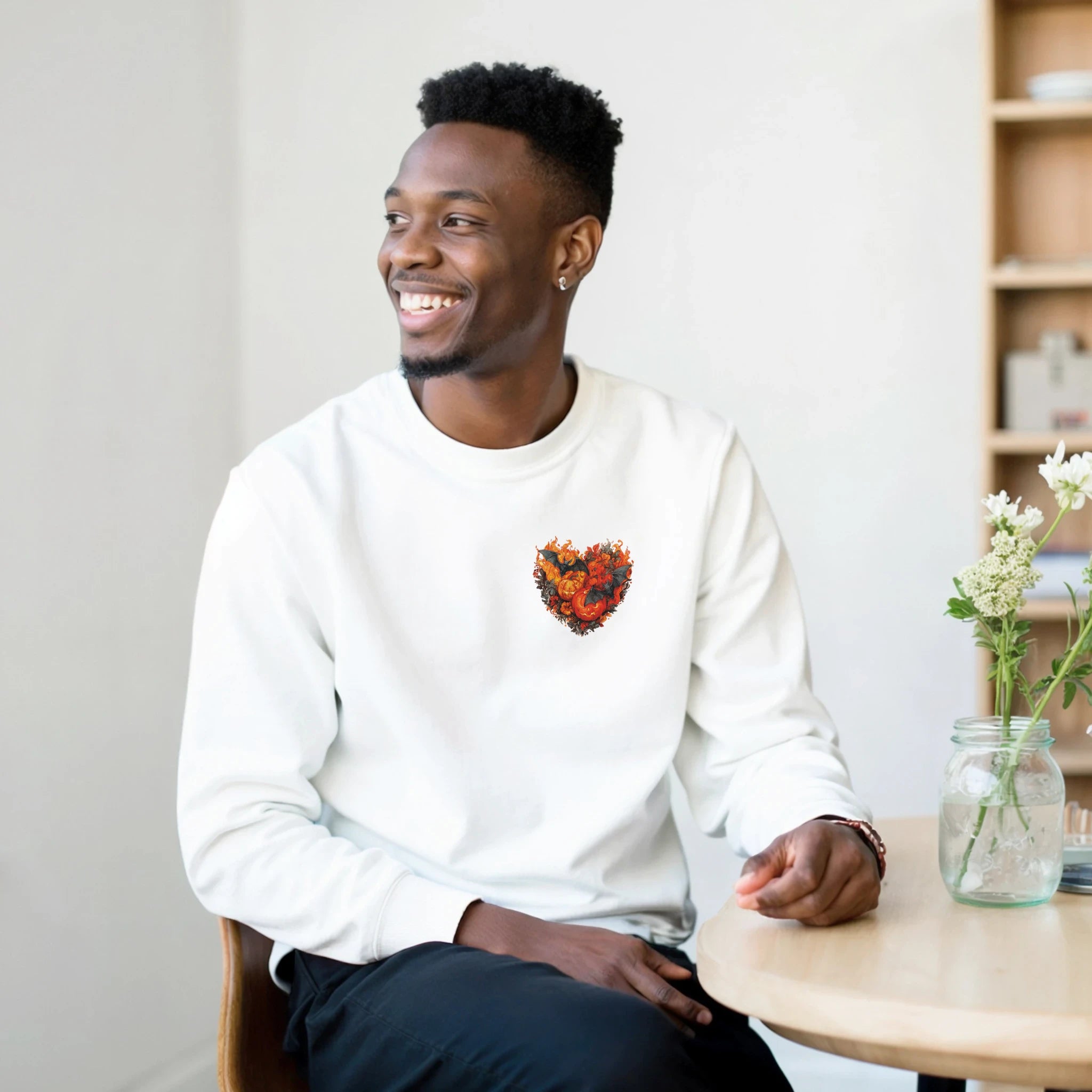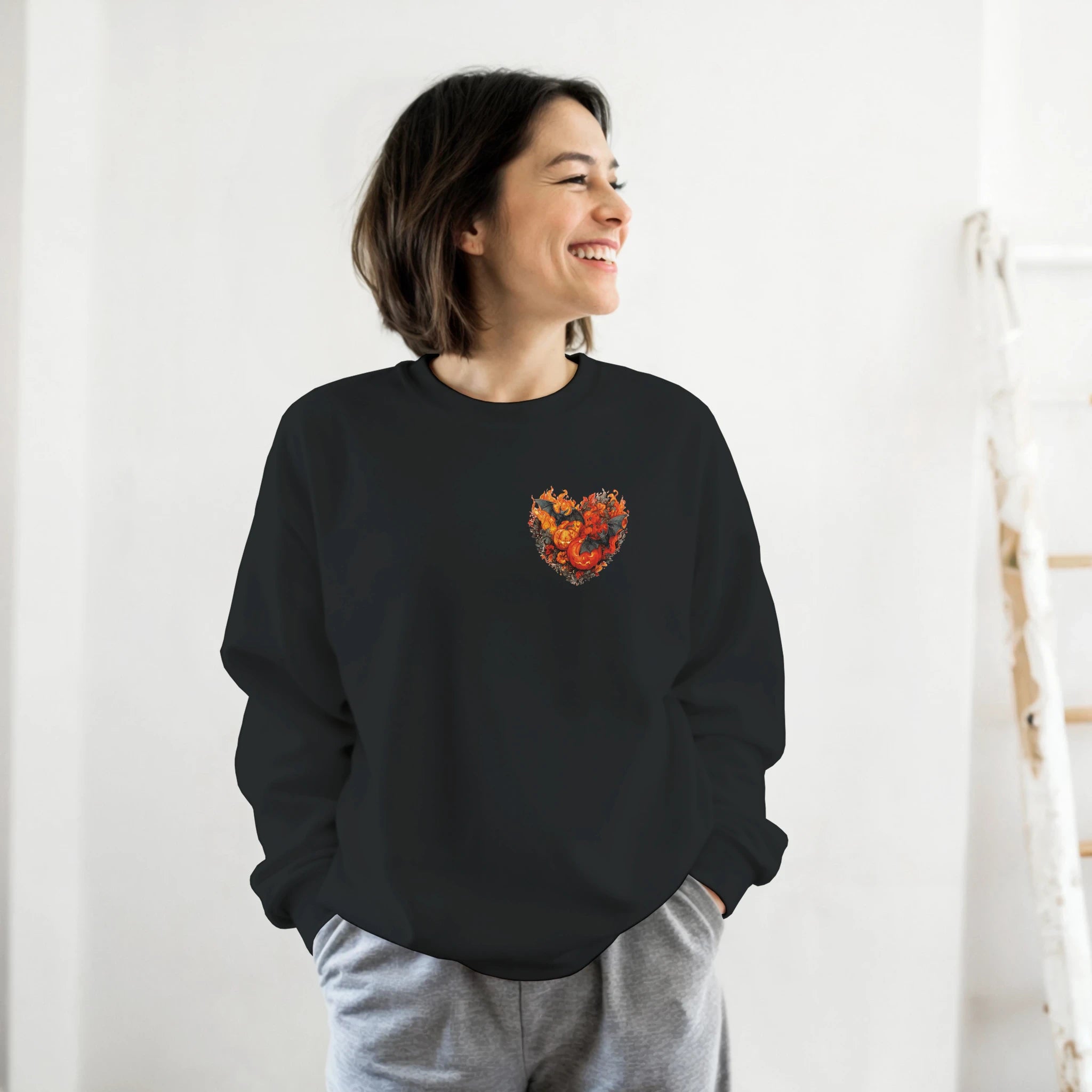 Faites flamber votre style avec le sweat sans capuche «Cœur de flammes Halloween» de Mimizou ! Envolez-vous vers l’aventure avec des chauves-souris intrépides, des citrouilles ricanantes et des flammes dansantes, le tout en forme de cœur enflammé. Idéal pour ceux qui veulent chauffer l'ambiance sans perdre la tête (de citrouille) ! Ce sweat est aussi doux qu’effrayant et promet de faire battre le cœur des citrouilles carveuses et autres monstres des champs. À porter sans modération pour un Halloween flamboyant et romanesque. N'attendez pas, car ce modèle est plus rare qu'une chauve-souris en plein jour !