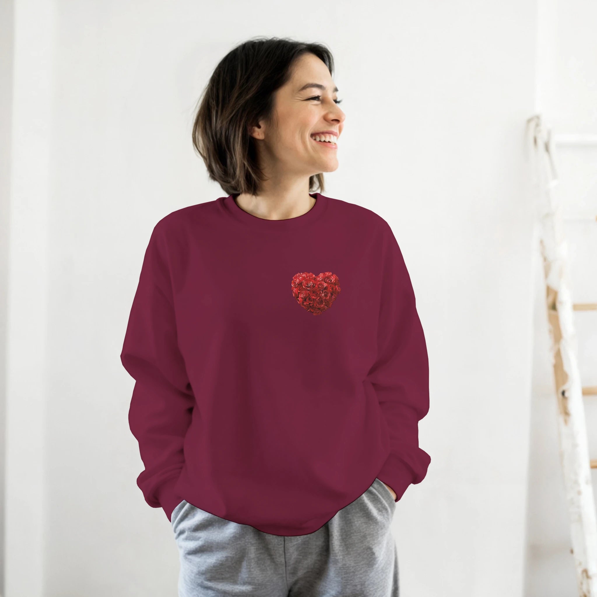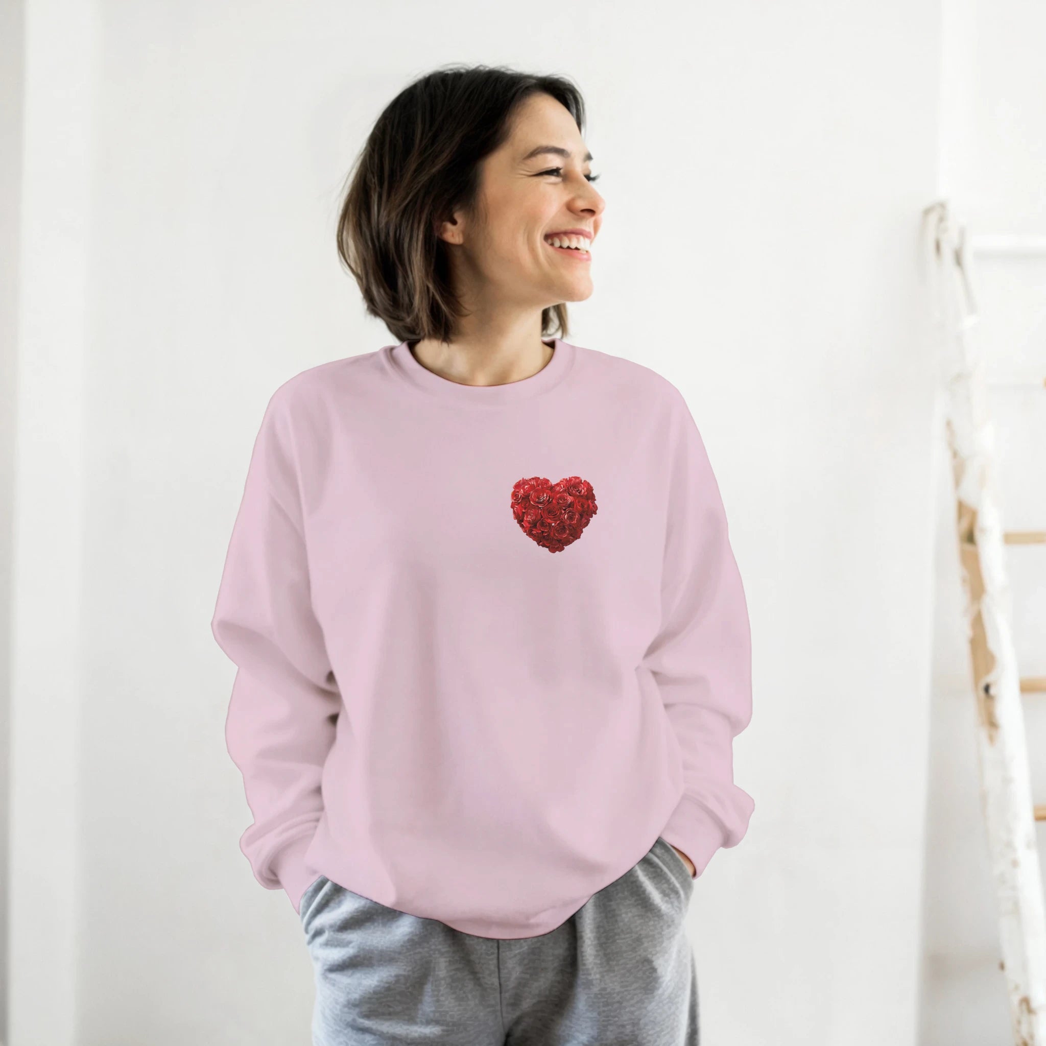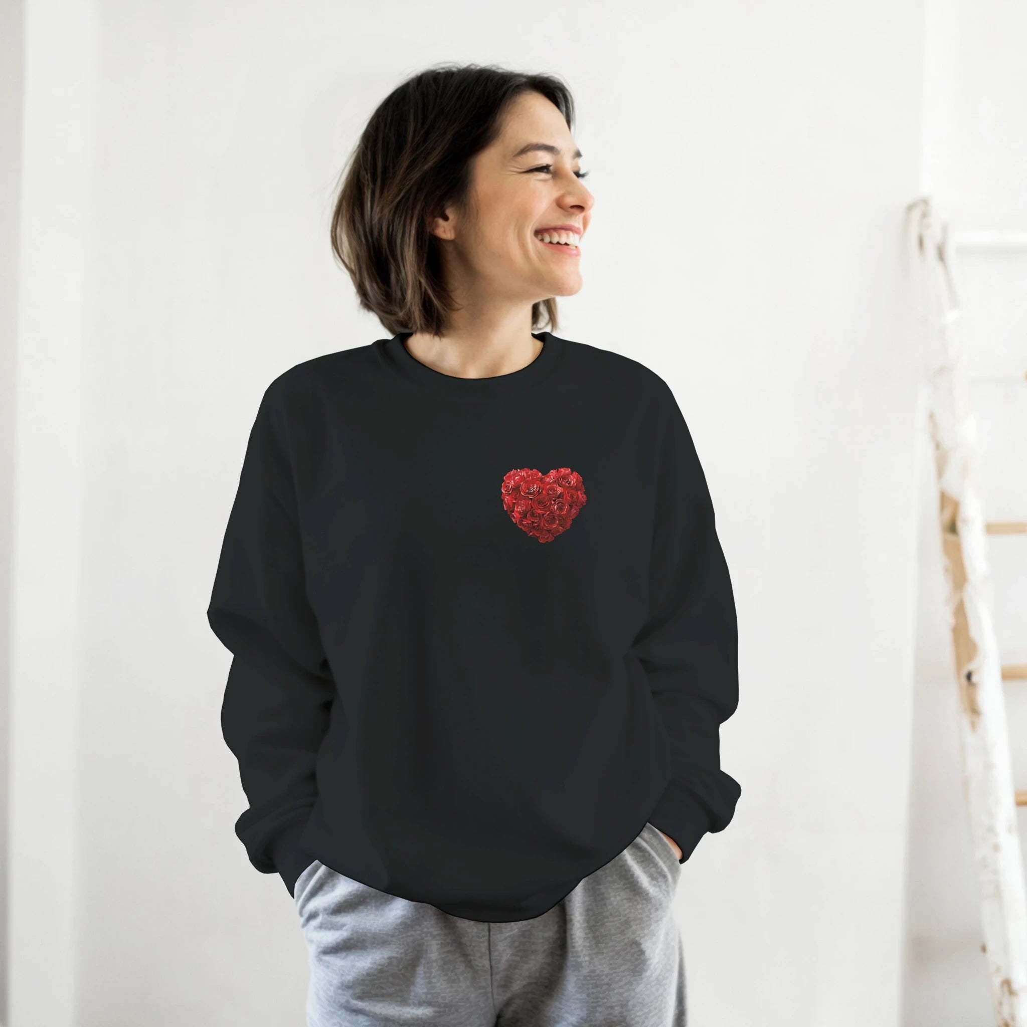 Découvrez notre « Sweat sans capuche Cœur filé de roses rouges », un véritable bouquet permanent qui ne flétrira jamais ! Pourquoi offrir un bouquet alors que vous pouvez le porter ? Ce sweat est l'allié parfait pour les rendez-vous romantiques ou pour impressionner votre miroir. Chaque rose raconte une histoire d'amour, même celle avec votre canapé ! À porter sans modération, sauf bien sûr si vous préférez les chardons. Mettez des pétales dans votre vie et laissez votre cœur s'épanouir. Attention : peut provoquer des élans d'amour incontrôlables et des compliments en cascade. Vive l'amour et les roses !