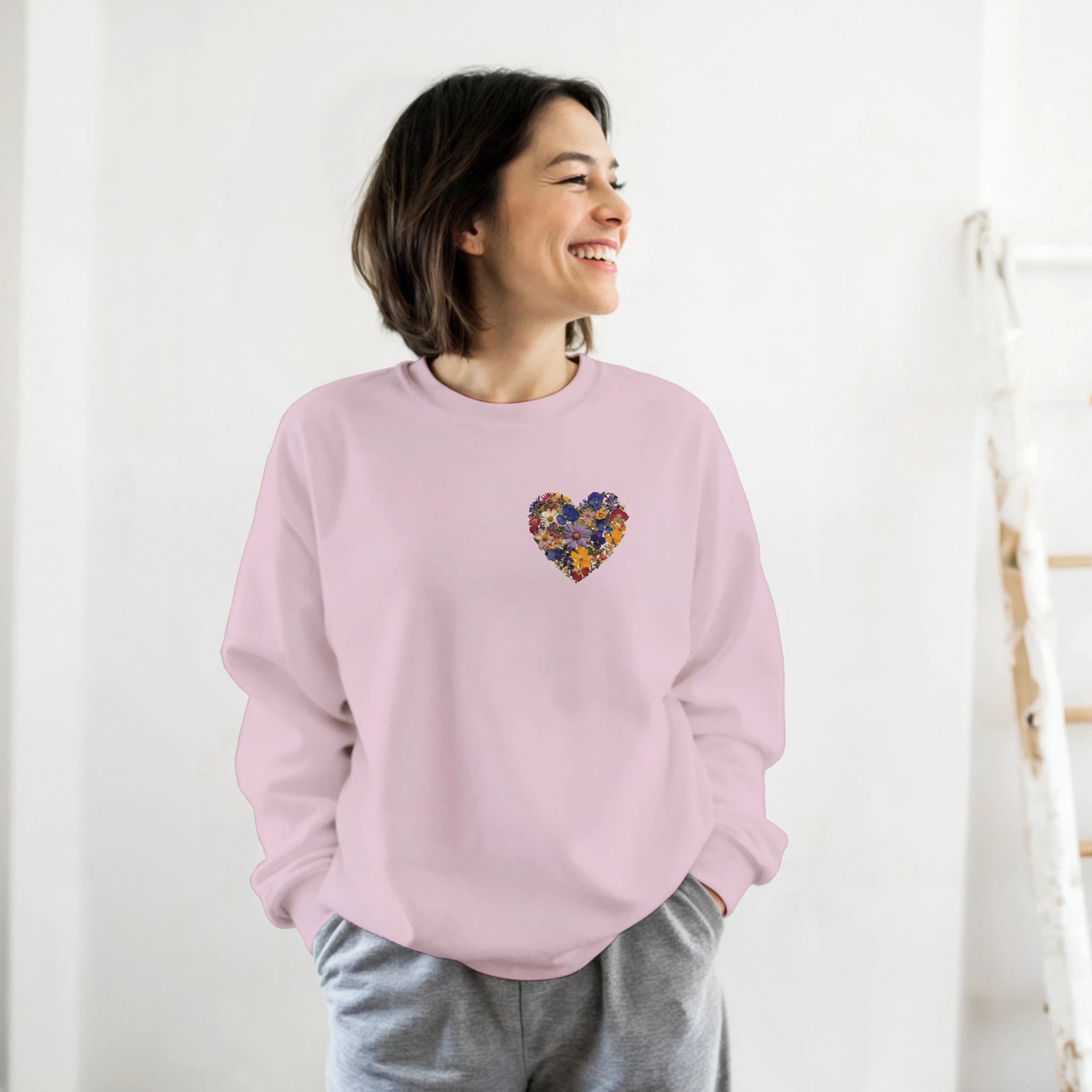Sweat sans capuche «Collage de fleurs en forme de cœur»