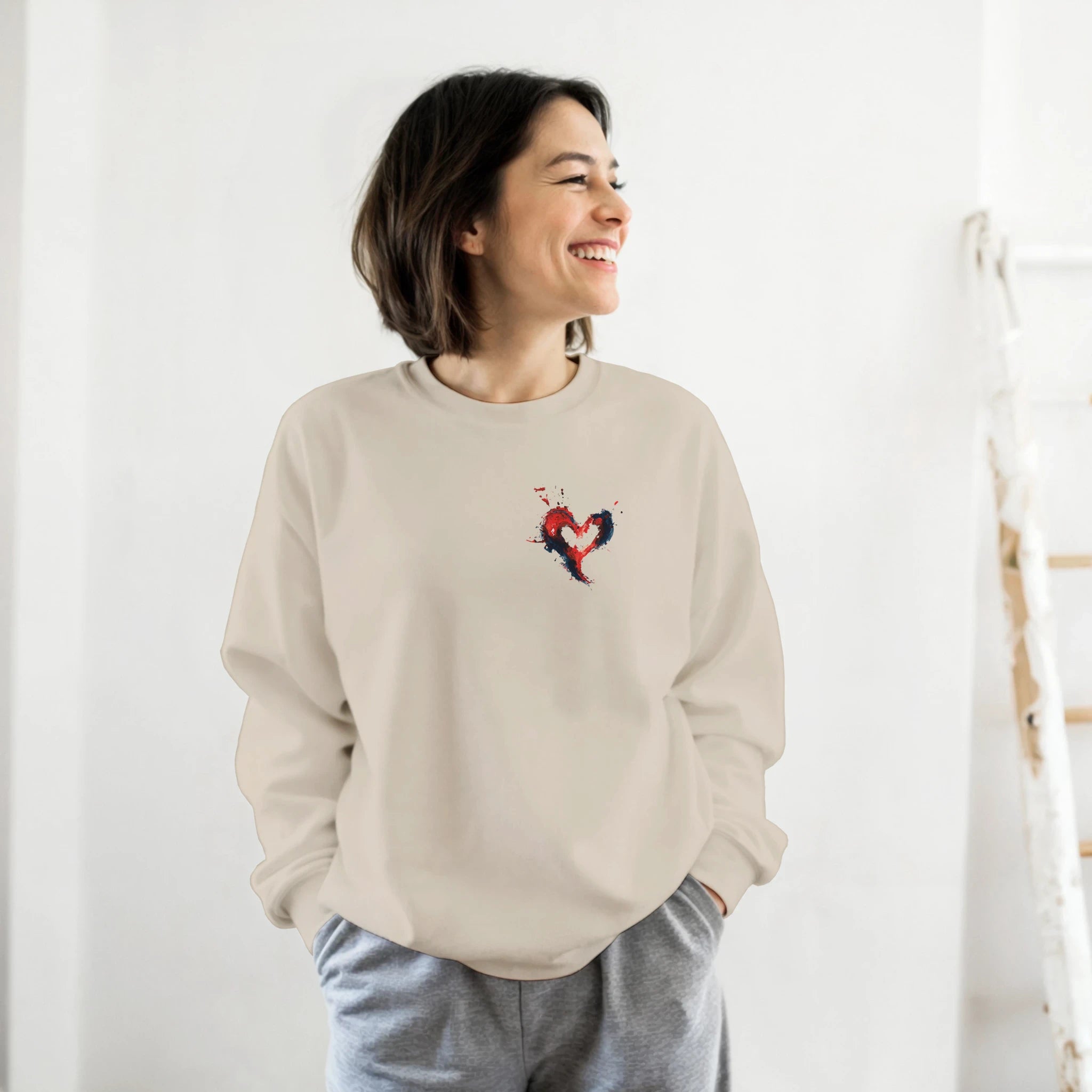 Découvrez notre « Sweat sans capuche Éclaboussures de peinture », où l'art et l'amour s'affrontent dans un duel d'éclaboussures ! Ce design audacieux est pour ceux qui aiment vivre intensément... et qui ne craignent pas de tacher des cœurs. C'est le choix parfait pour déclarer : « Oui, mon cœur part dans tous les sens, mais regardez comme c’est stylé ! » Portez-le pour dire « je t’aime » avec une touche d’originalité, et attention, le coup de foudre n'est pas inclus. Attrapez-le avant qu'il ne fuie… comme votre liste de rendez-vous !